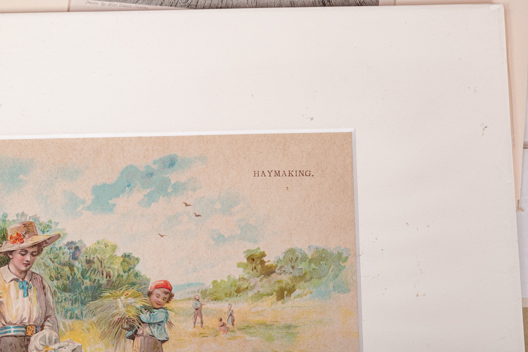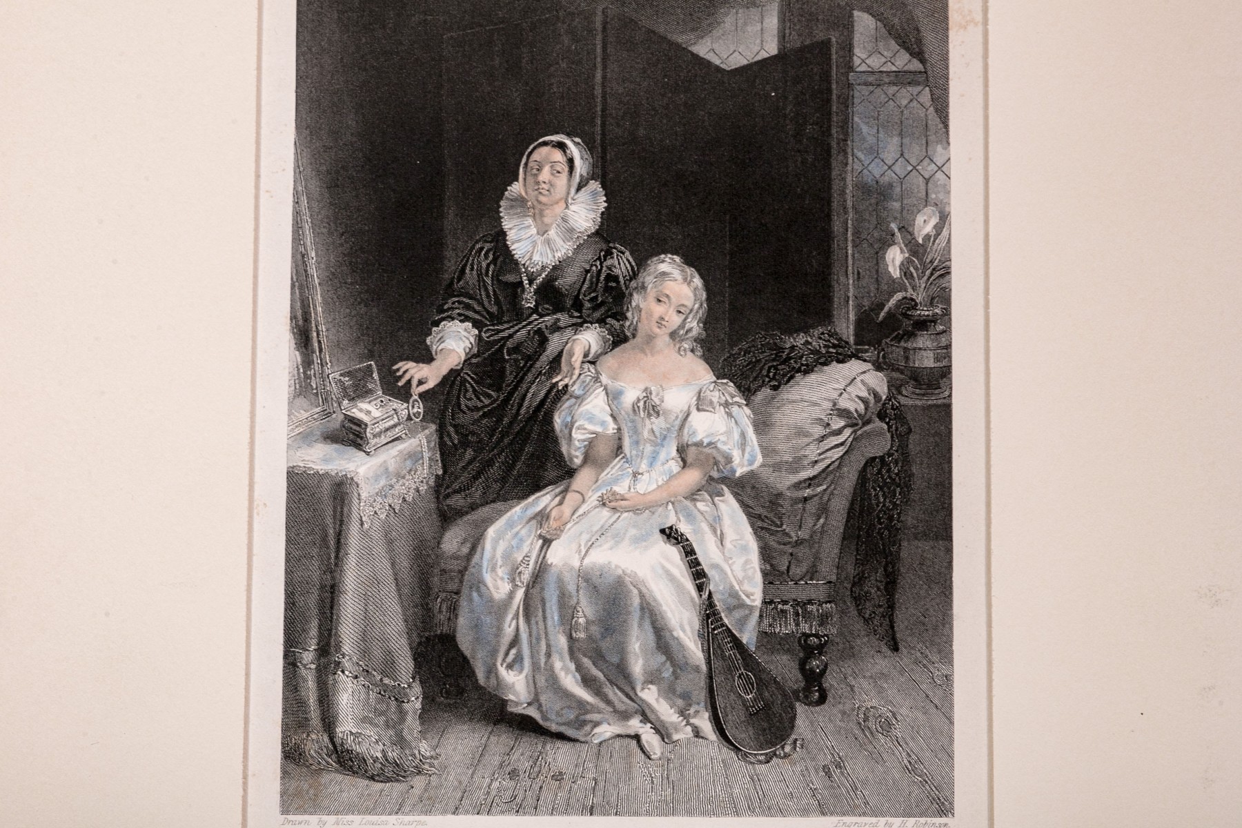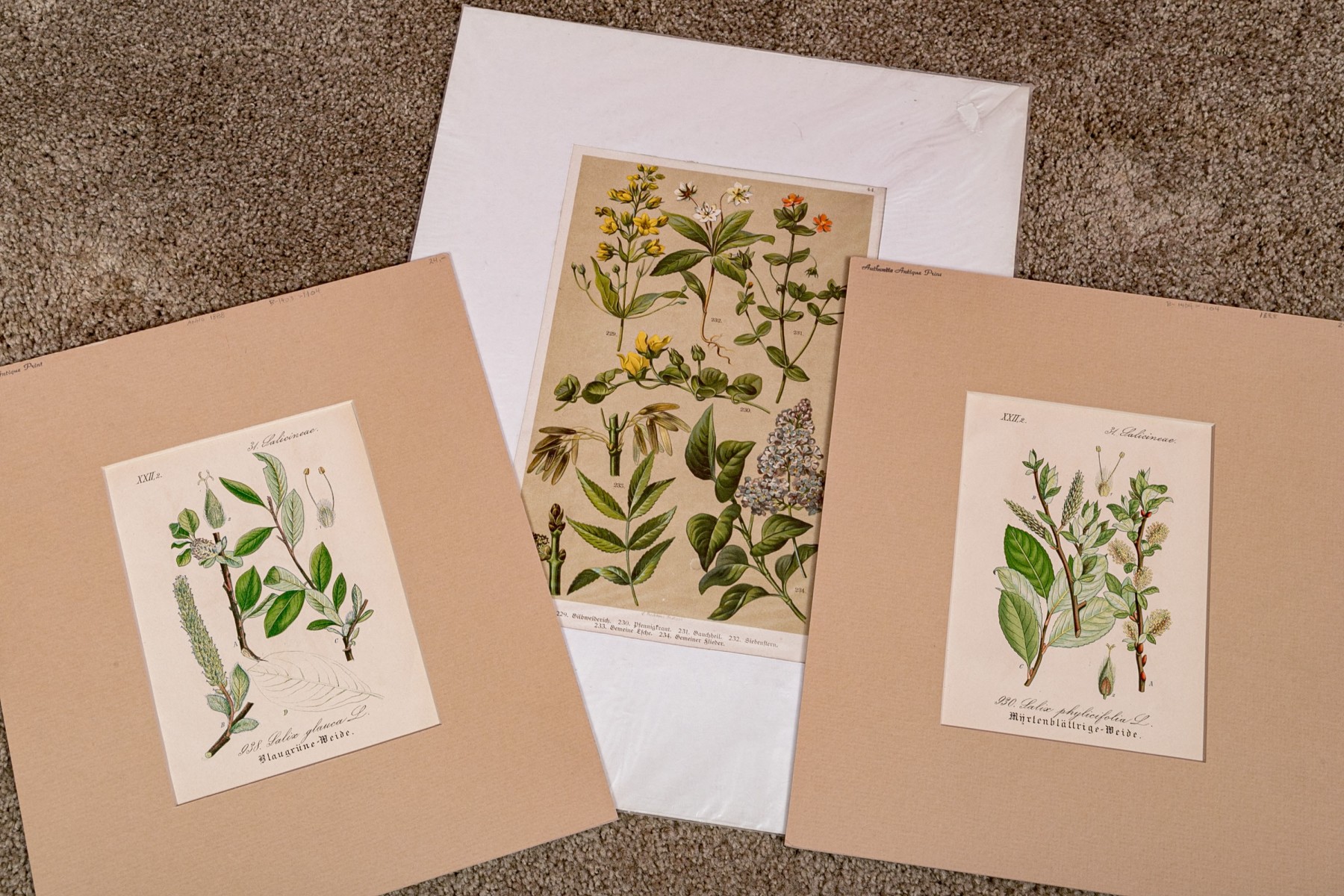 Comprised of classic and vibrant botanicals, Victorian style figural interior scenes.