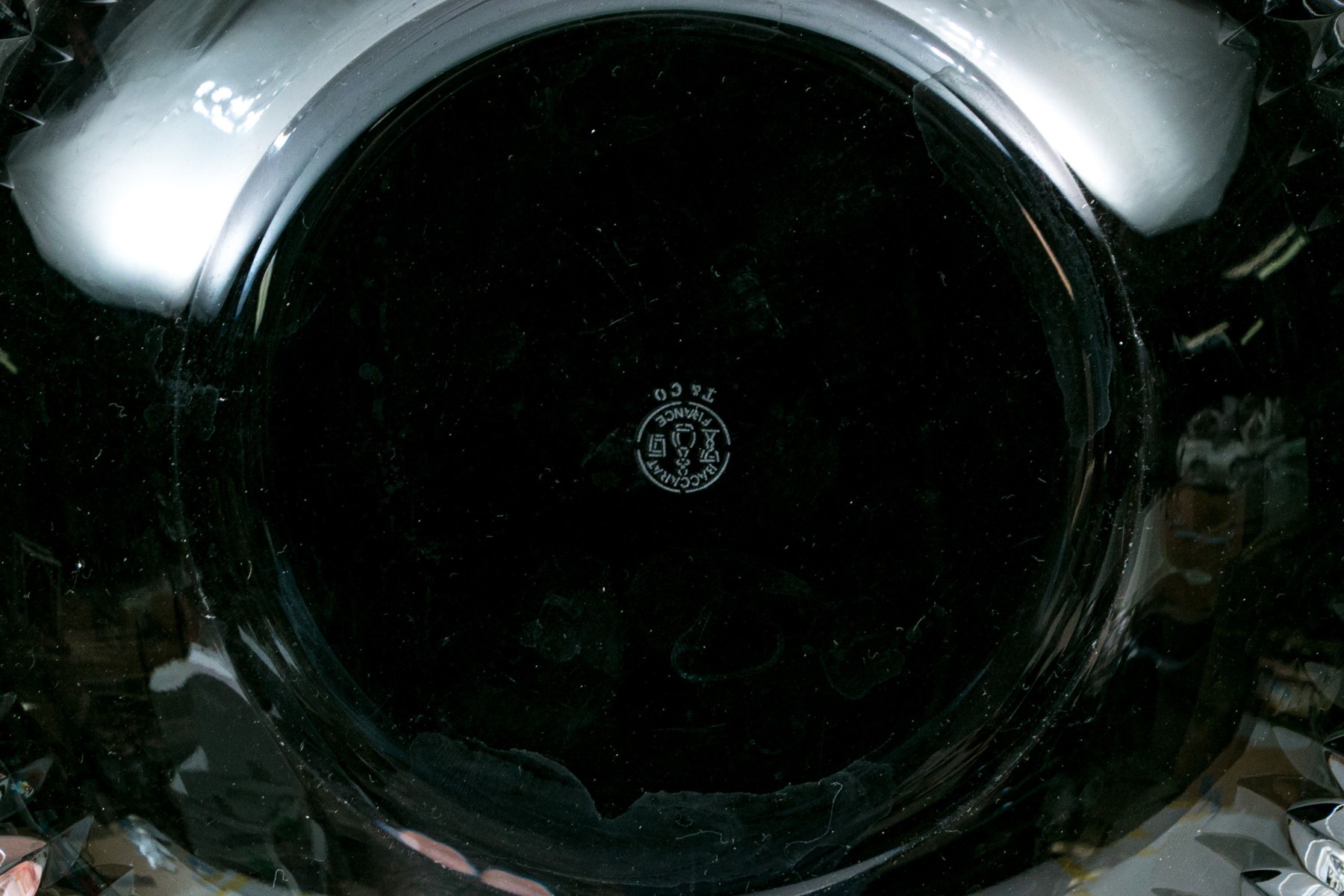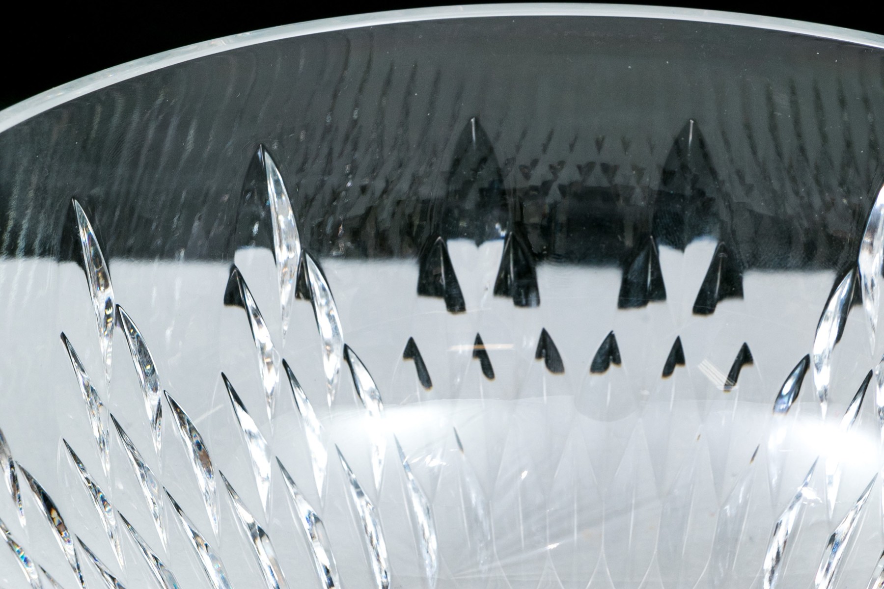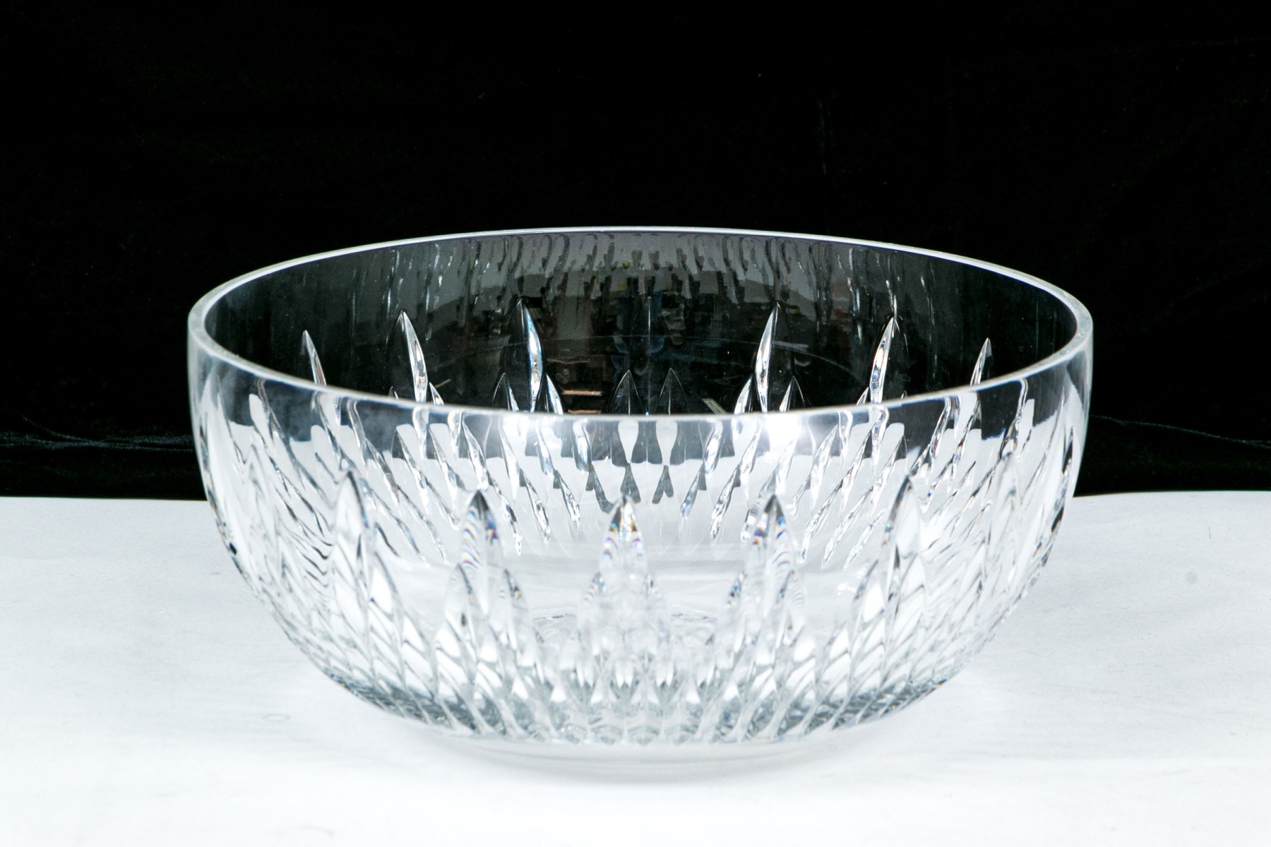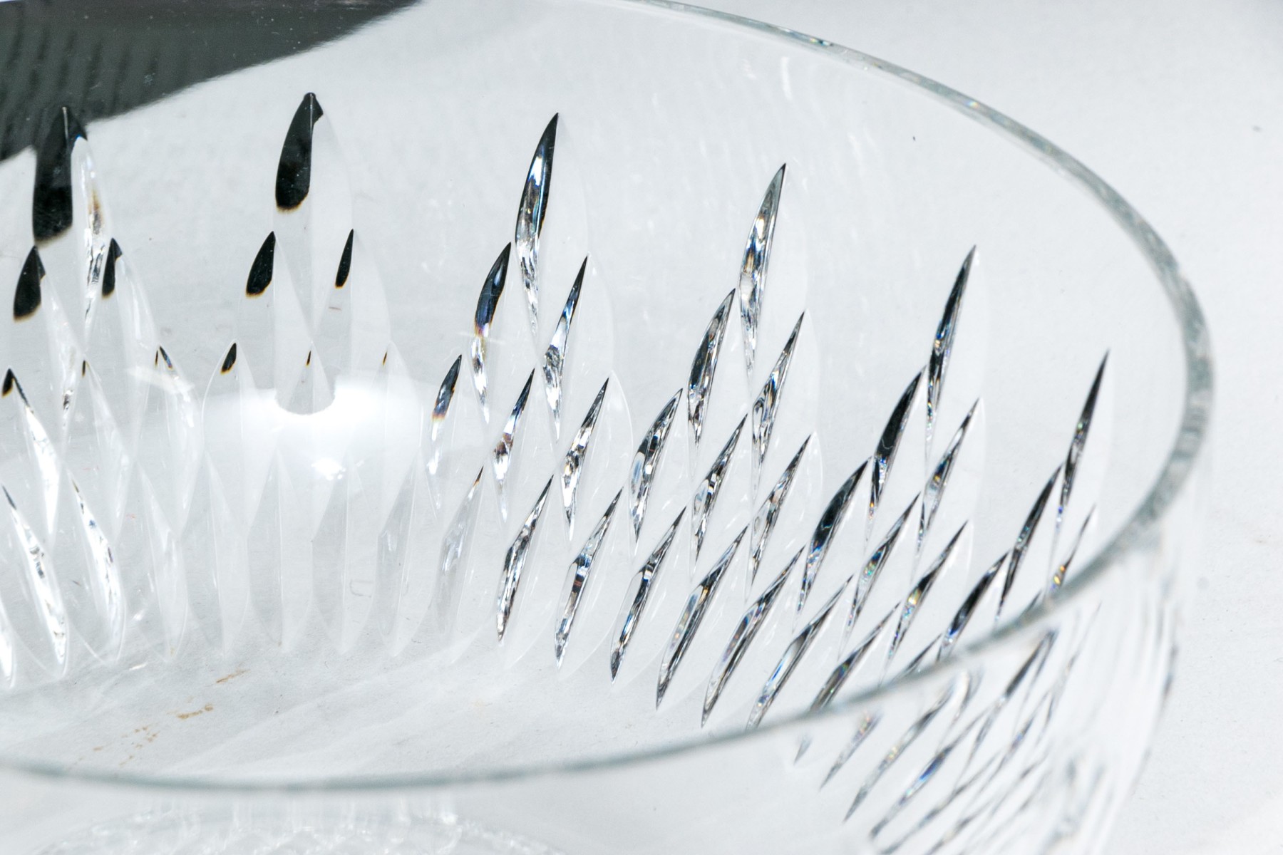 A large elegant circular bowl with diamond cut pointed motifs overall.
