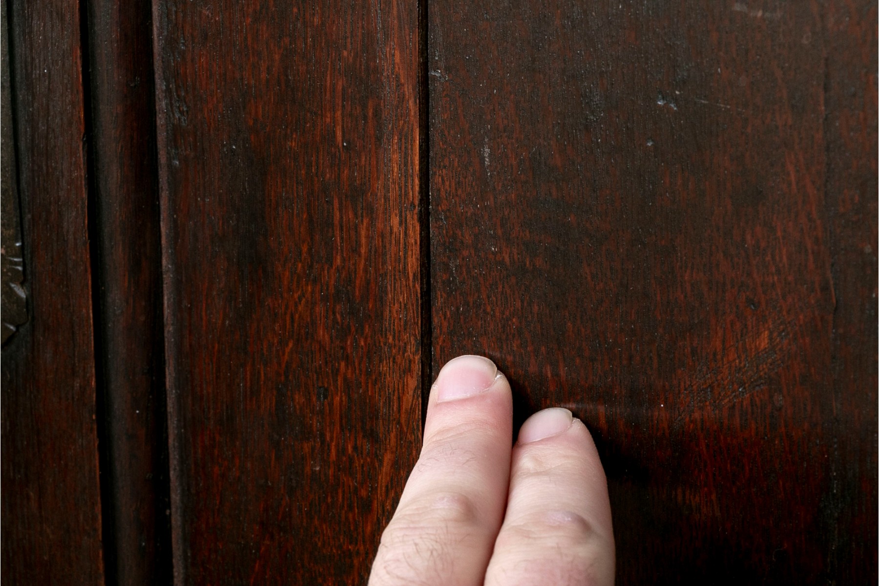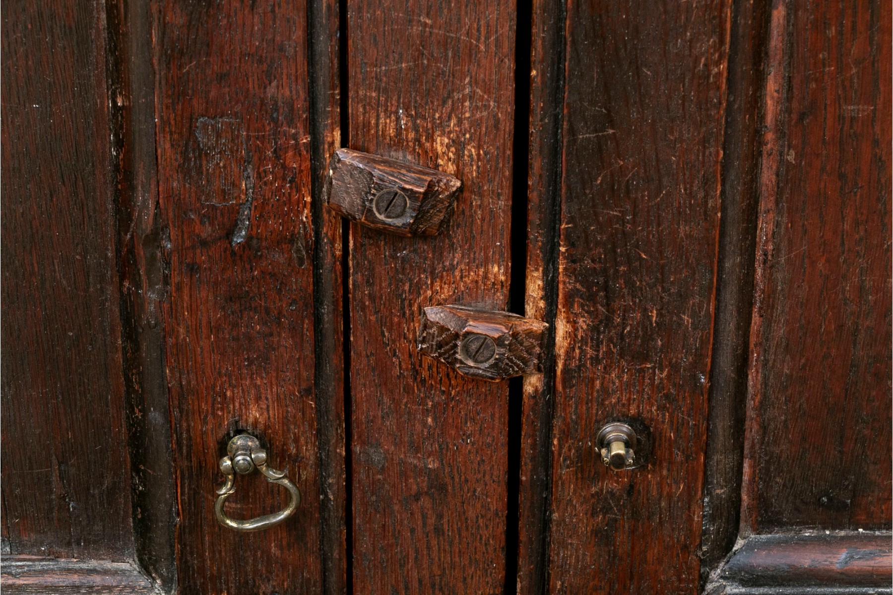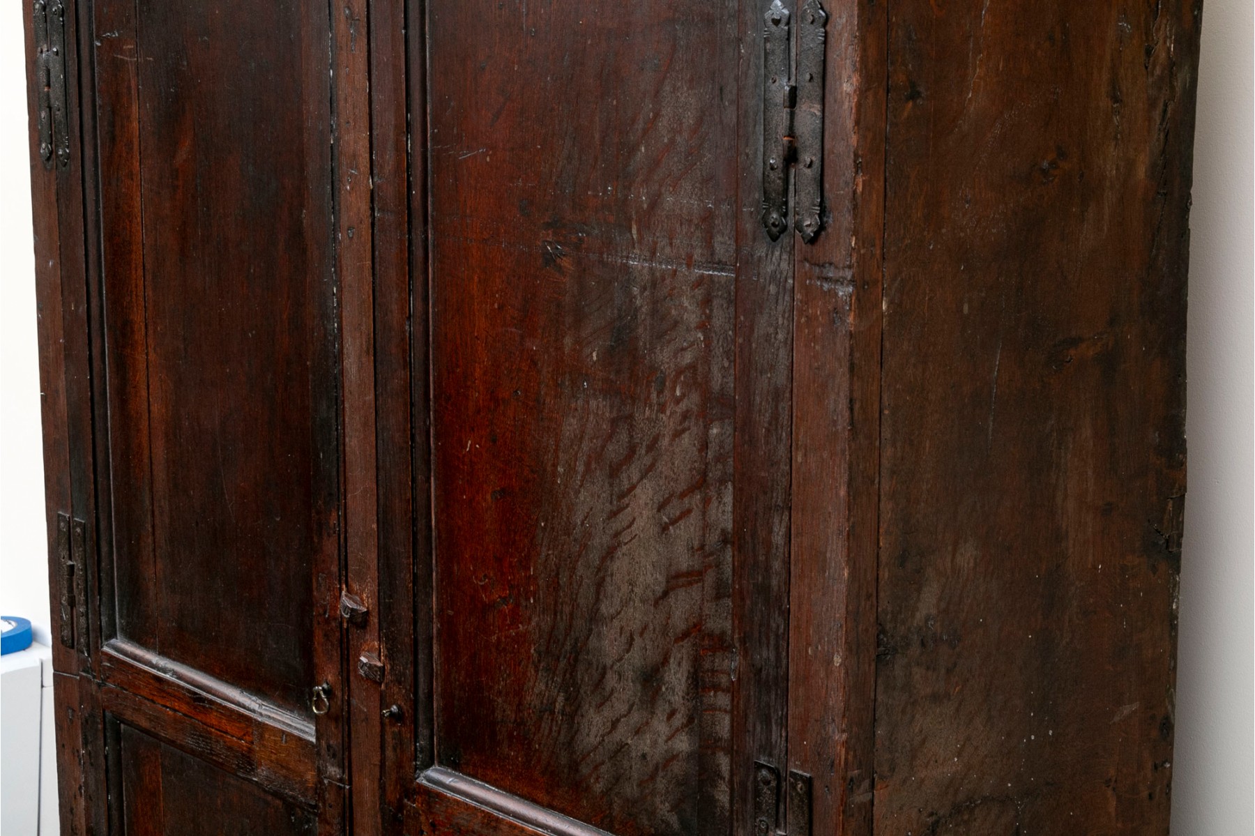 Condition: Wear with age minor losses throughout cabinet, previous repairs to back.