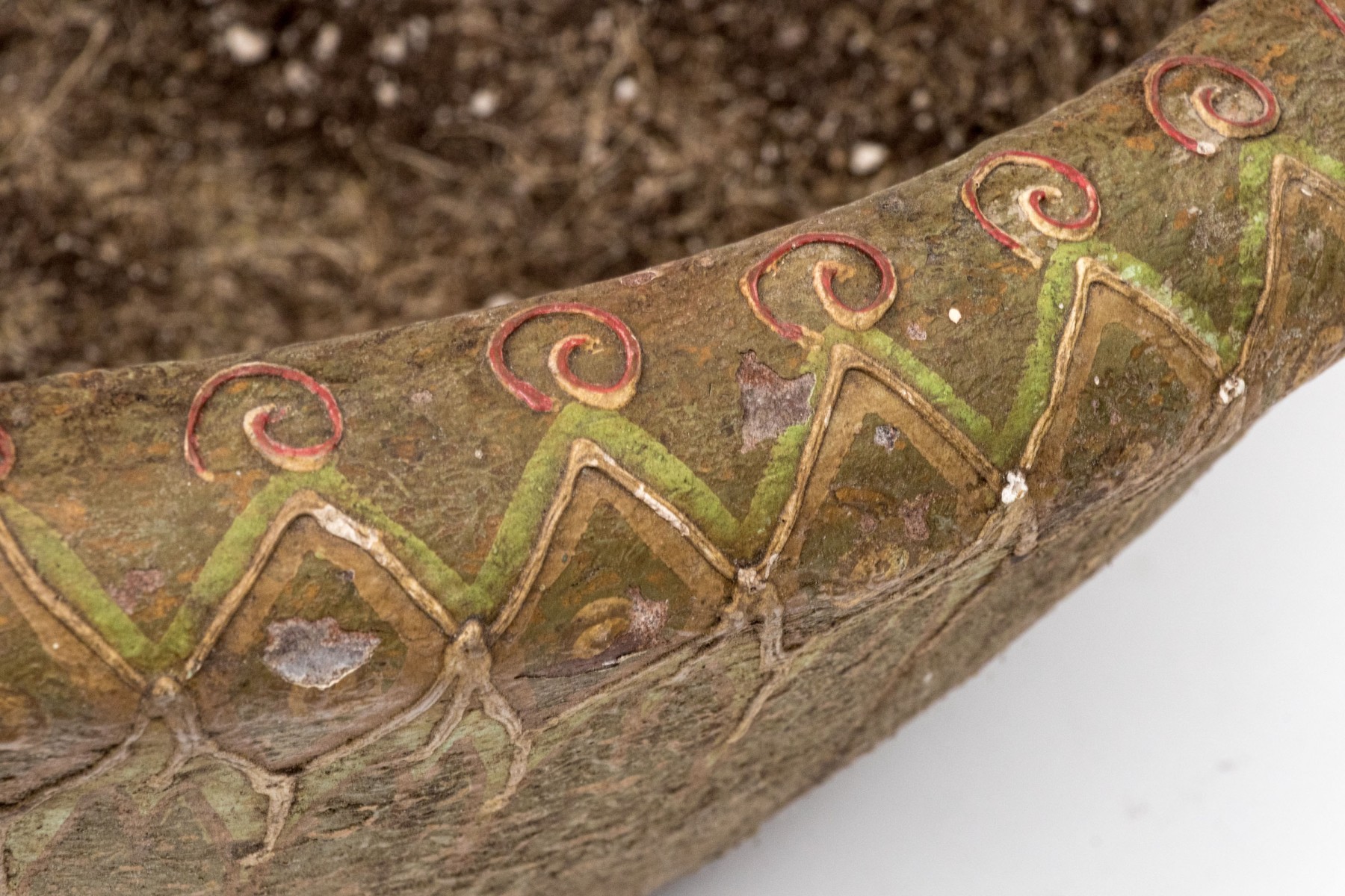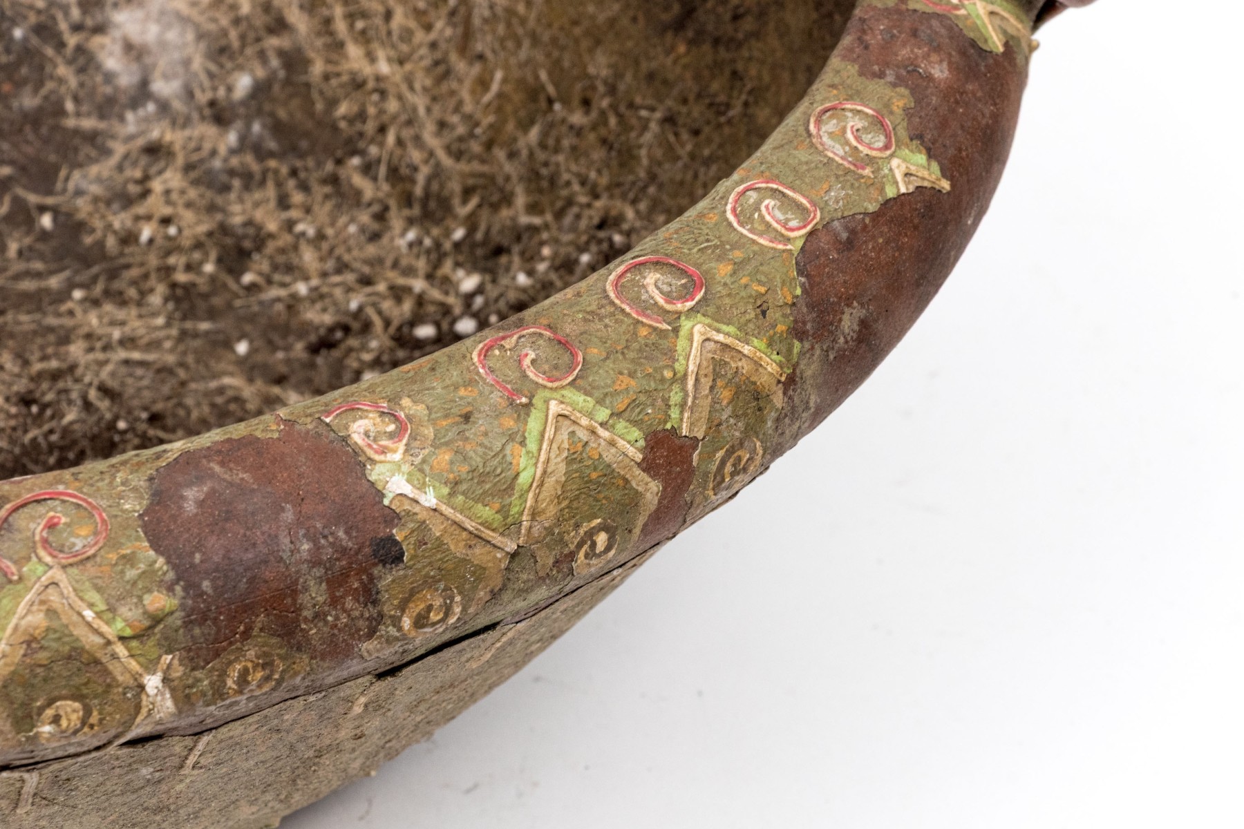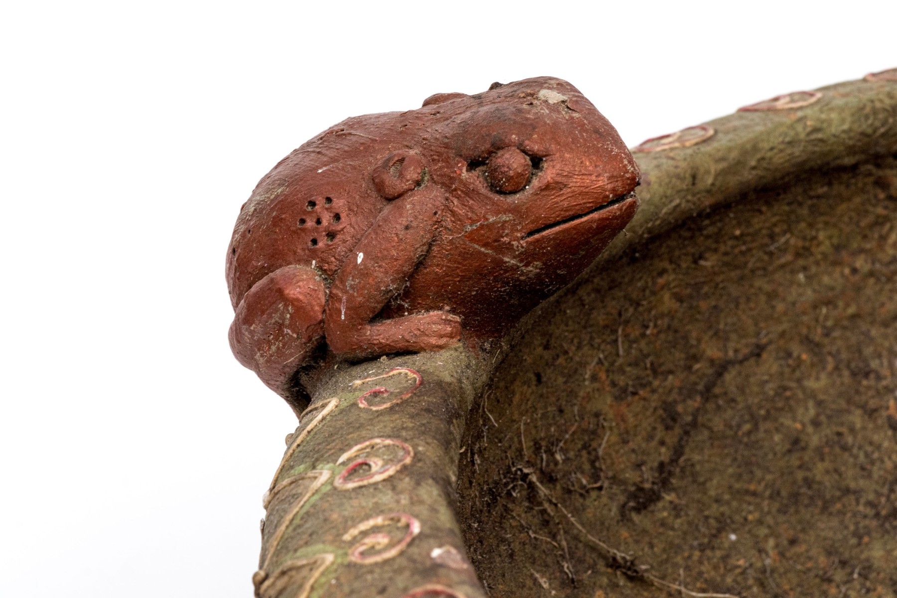 One frog has broken off but is with the bowl. Losses to the finish and decoration commensurate with age and use.