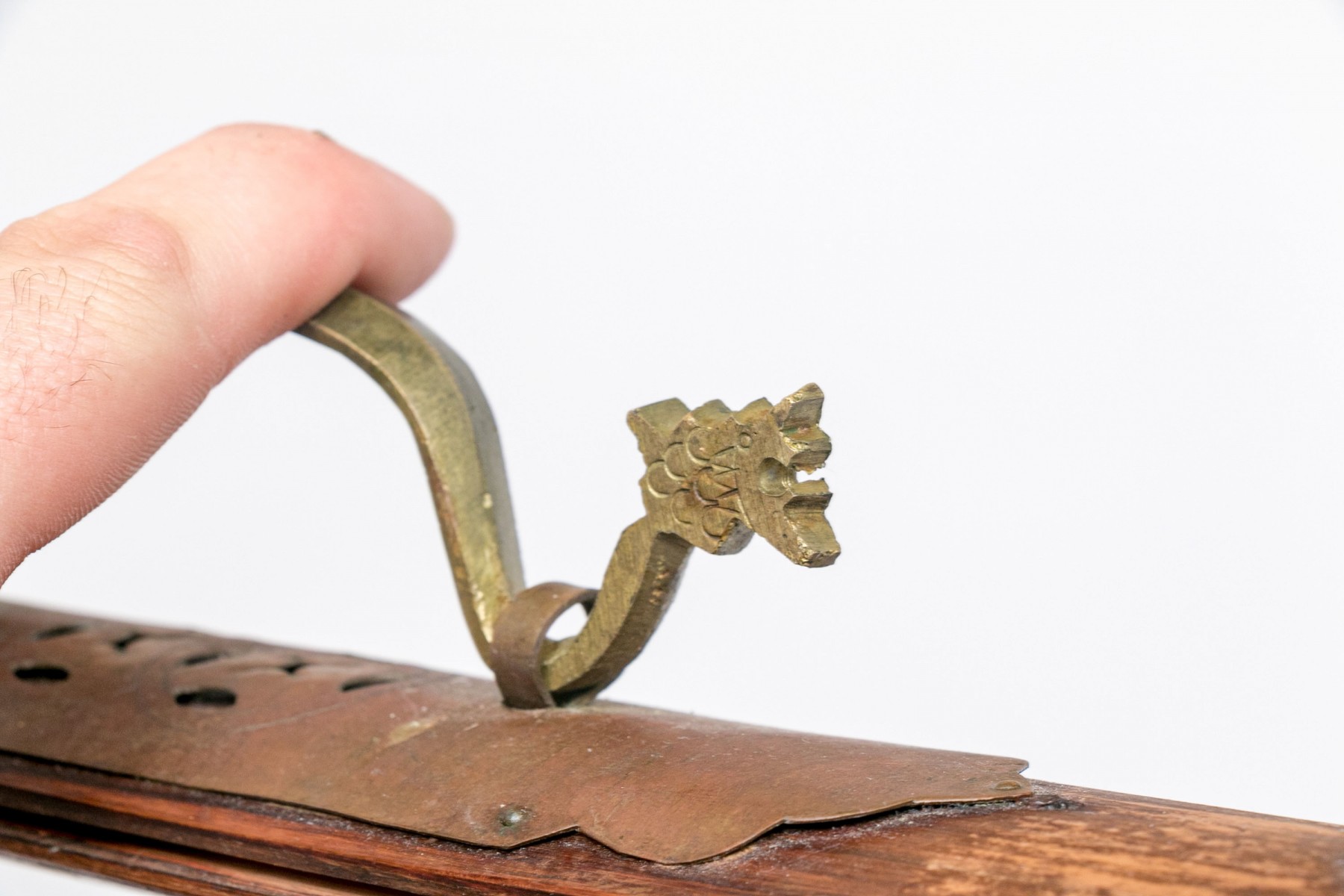 Condition: minor losses to edges of woven split wicker, nail needs to be fastened on side (see photo), minor flaking.