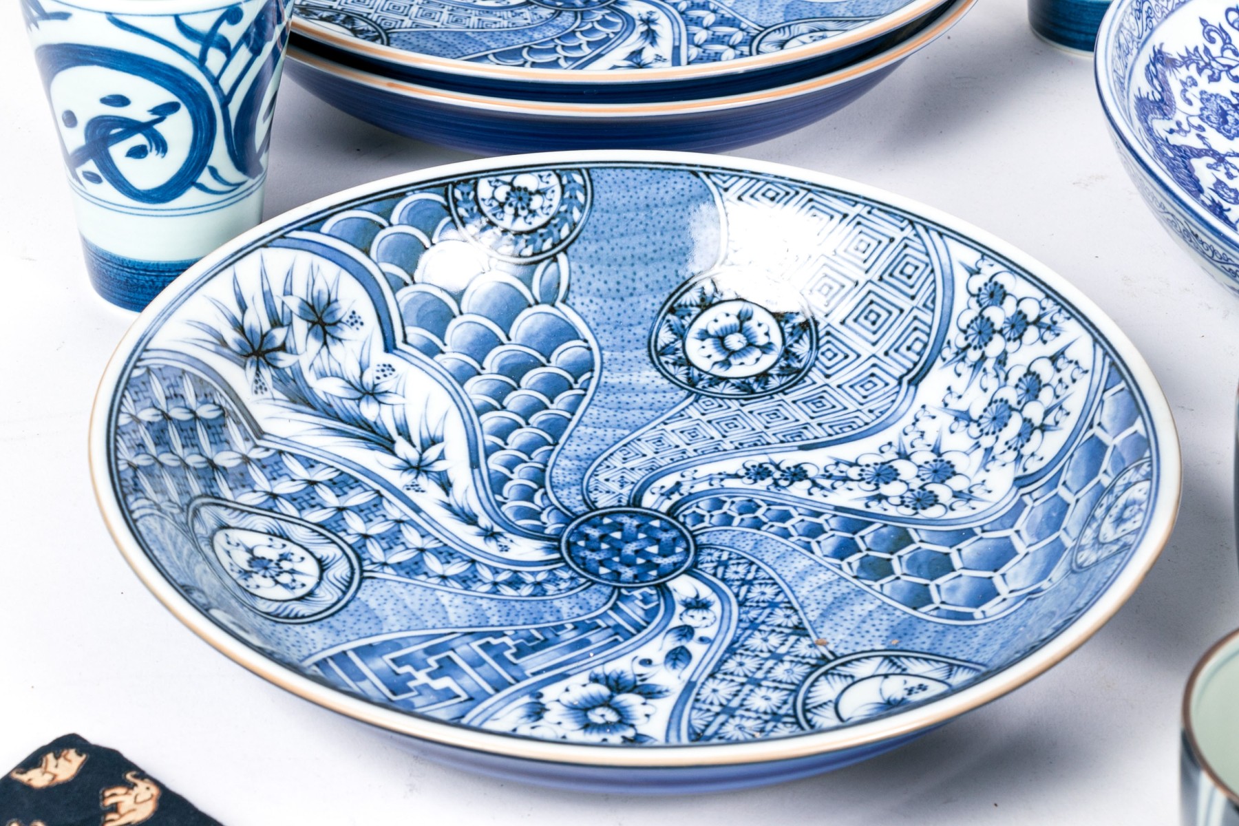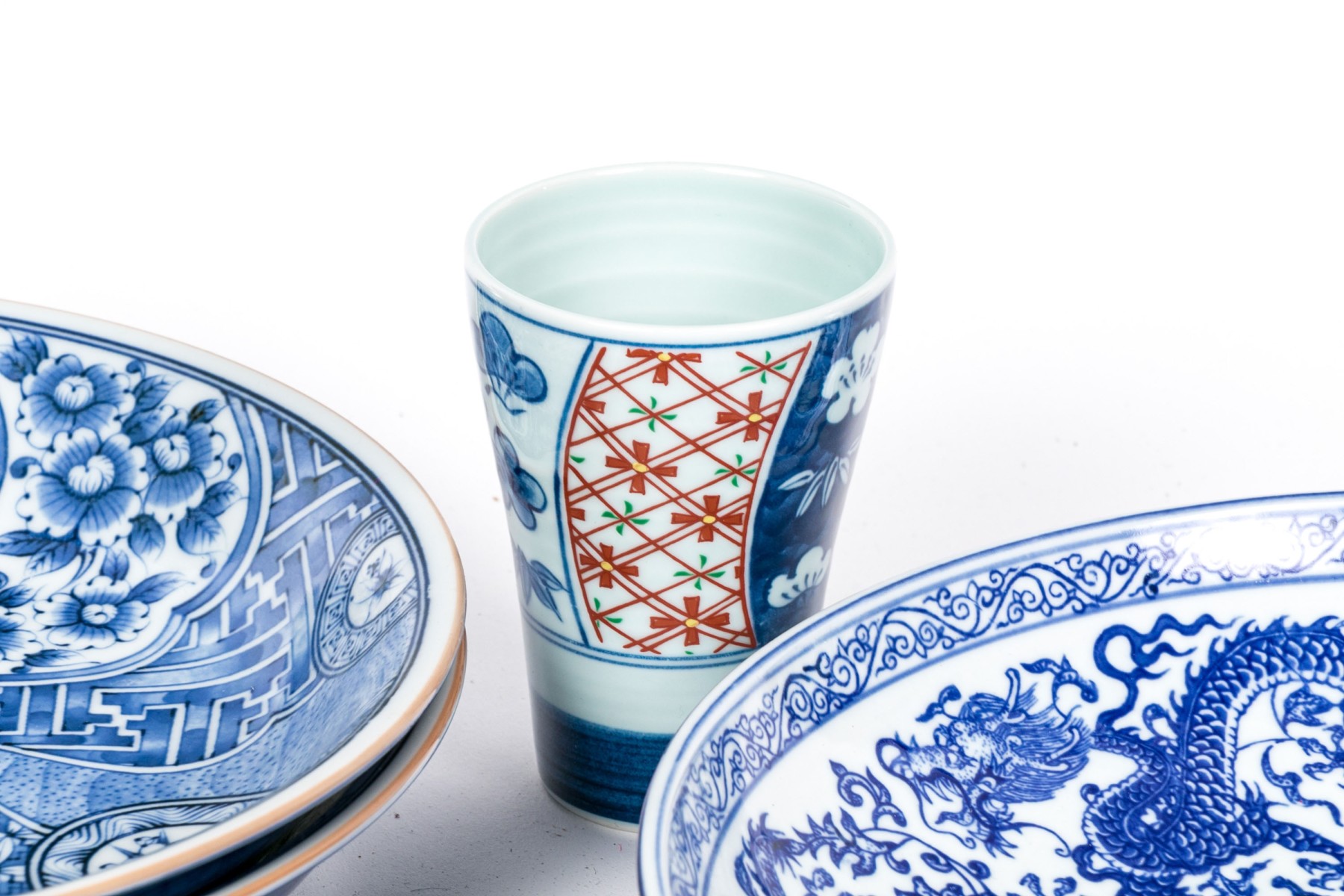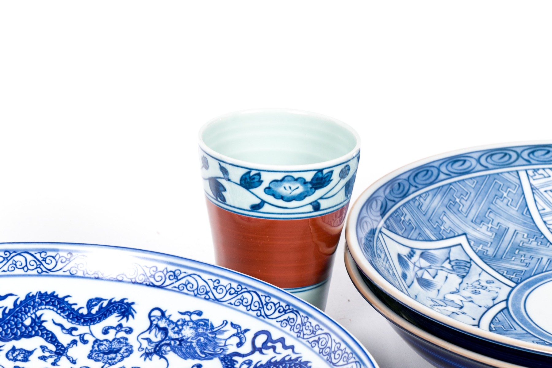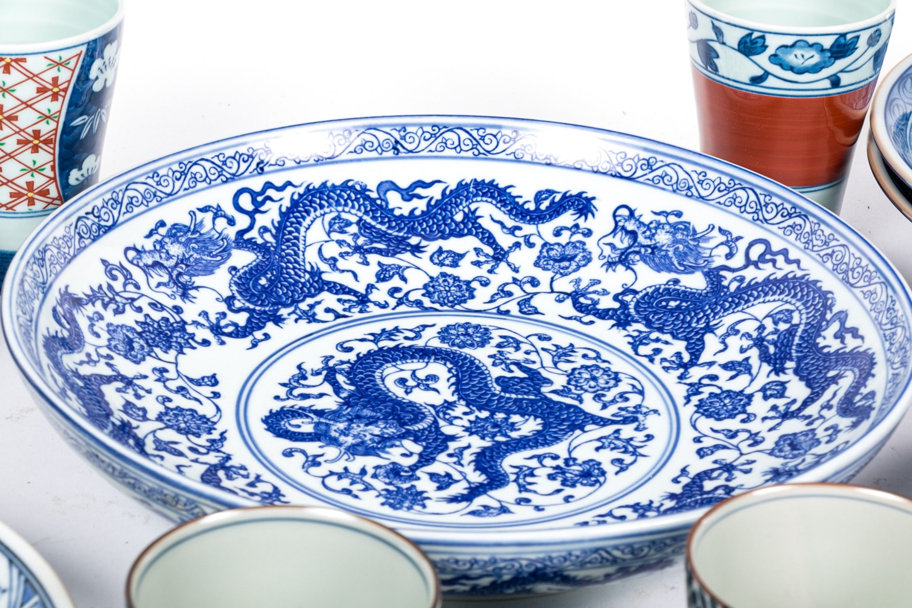 a single larger bowl with dragon motifs