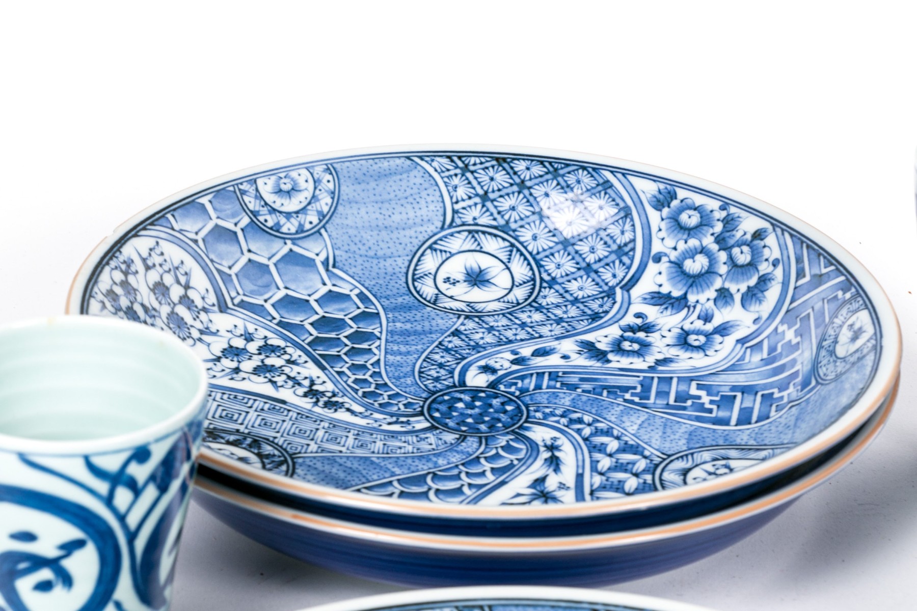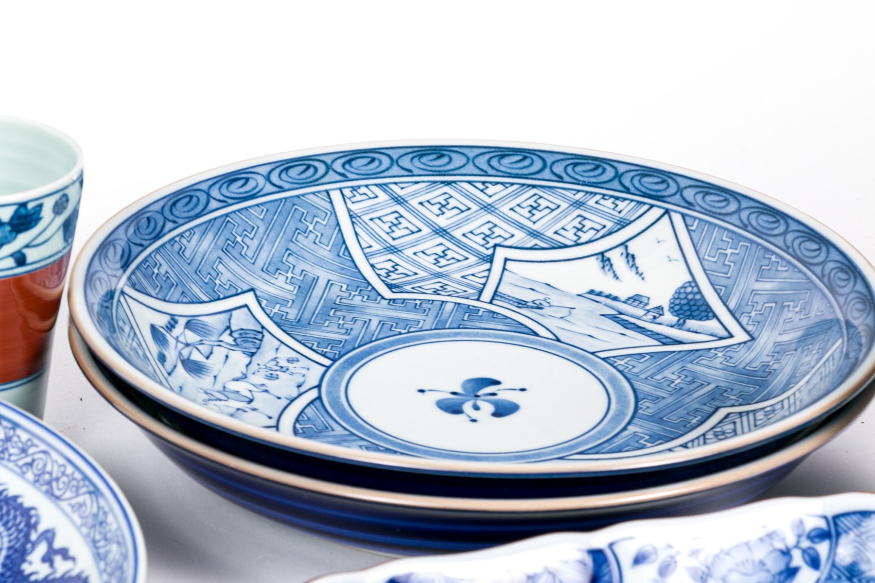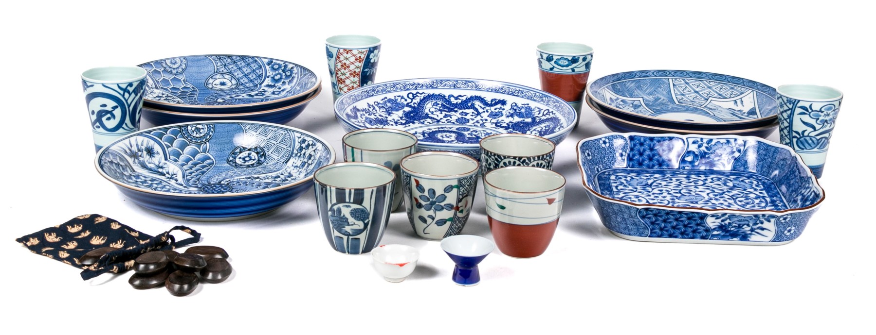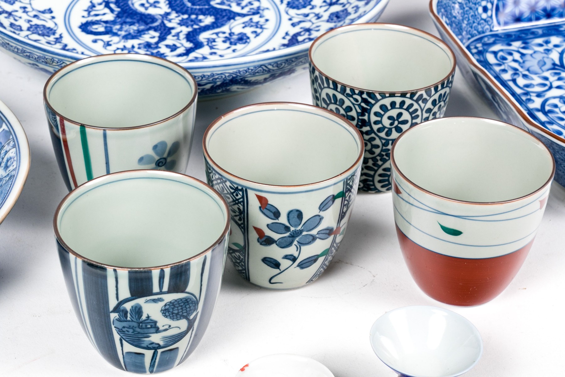 a single larger bowl with dragon motifs