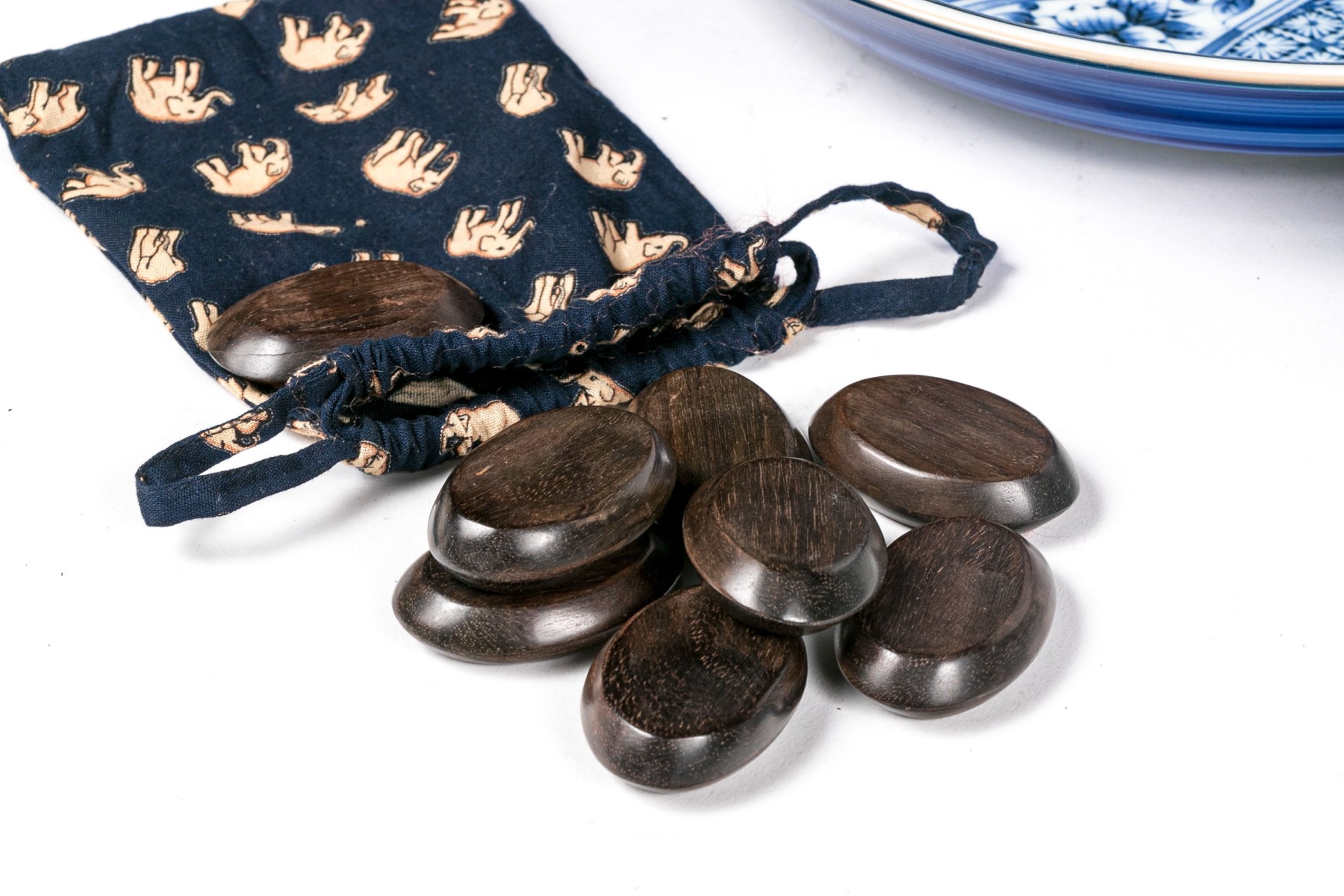 And a bag of eight oval wooden playing pieces