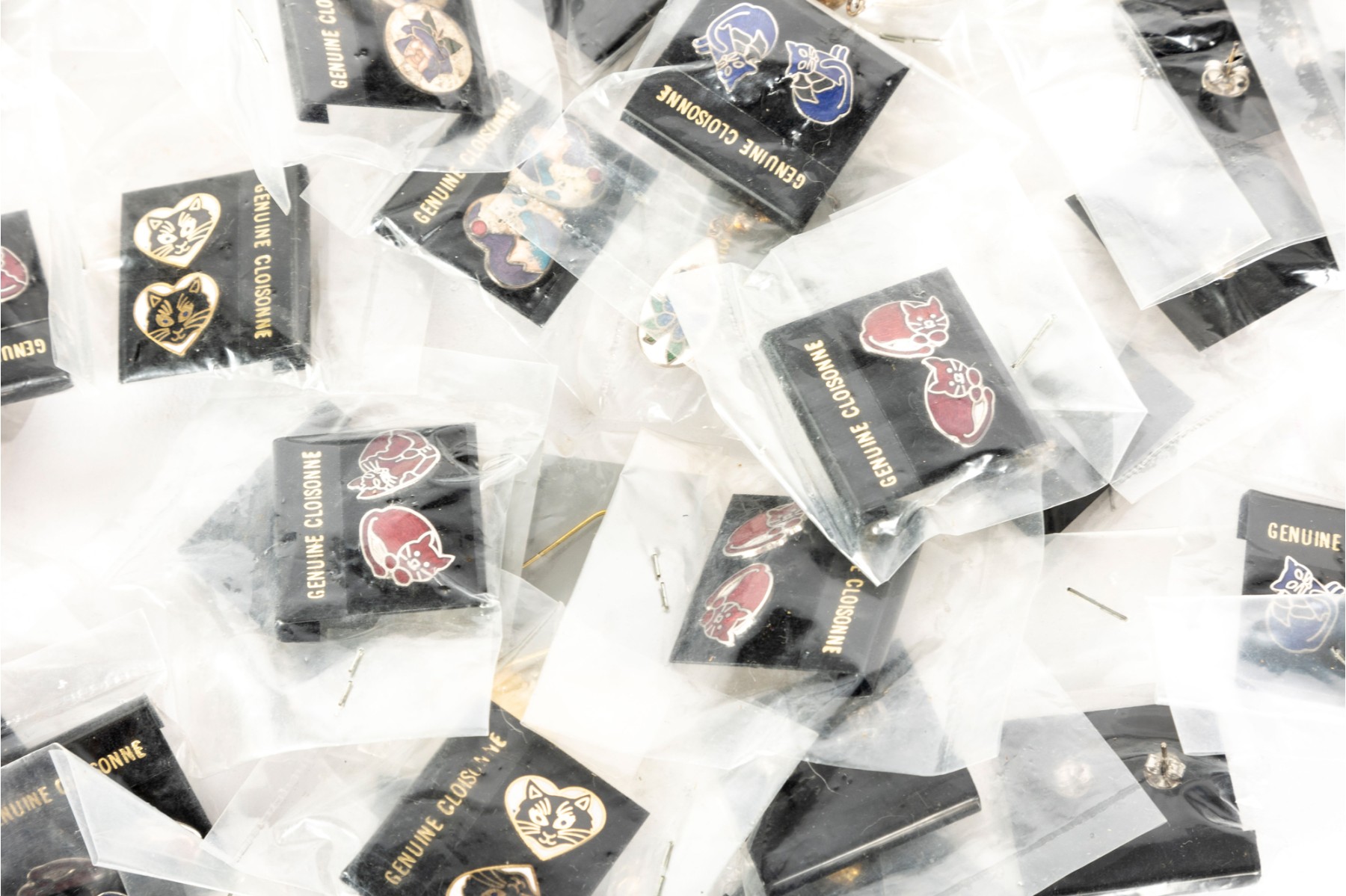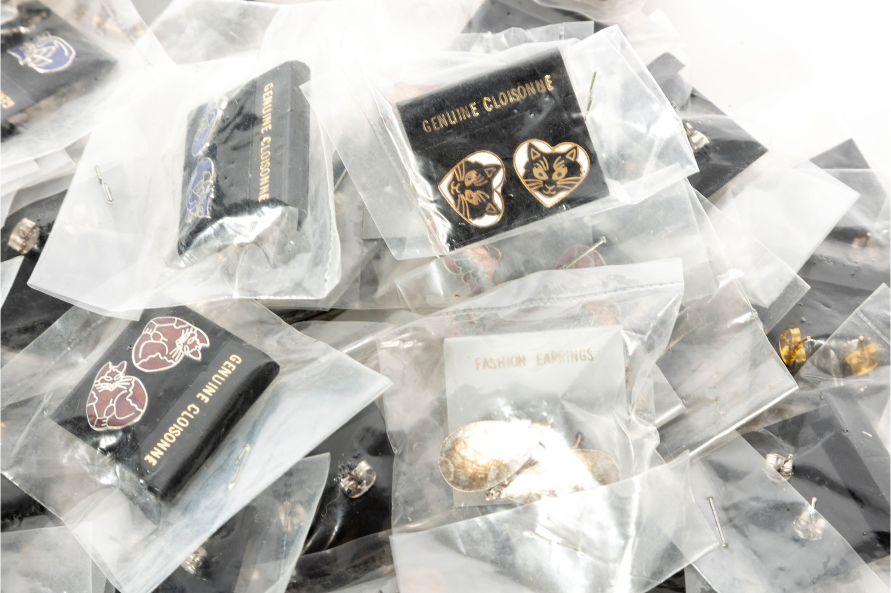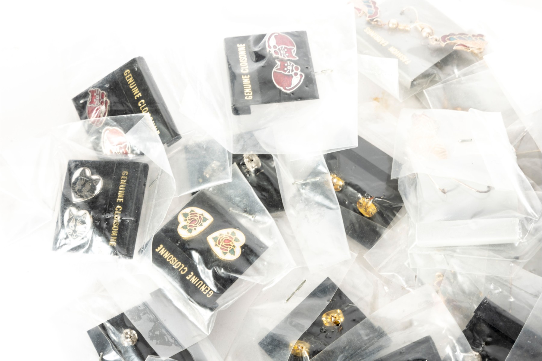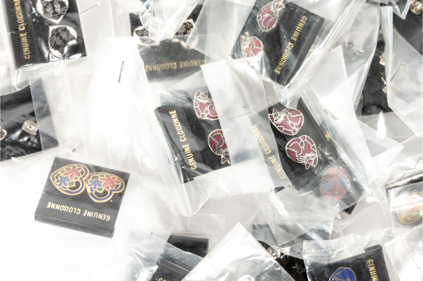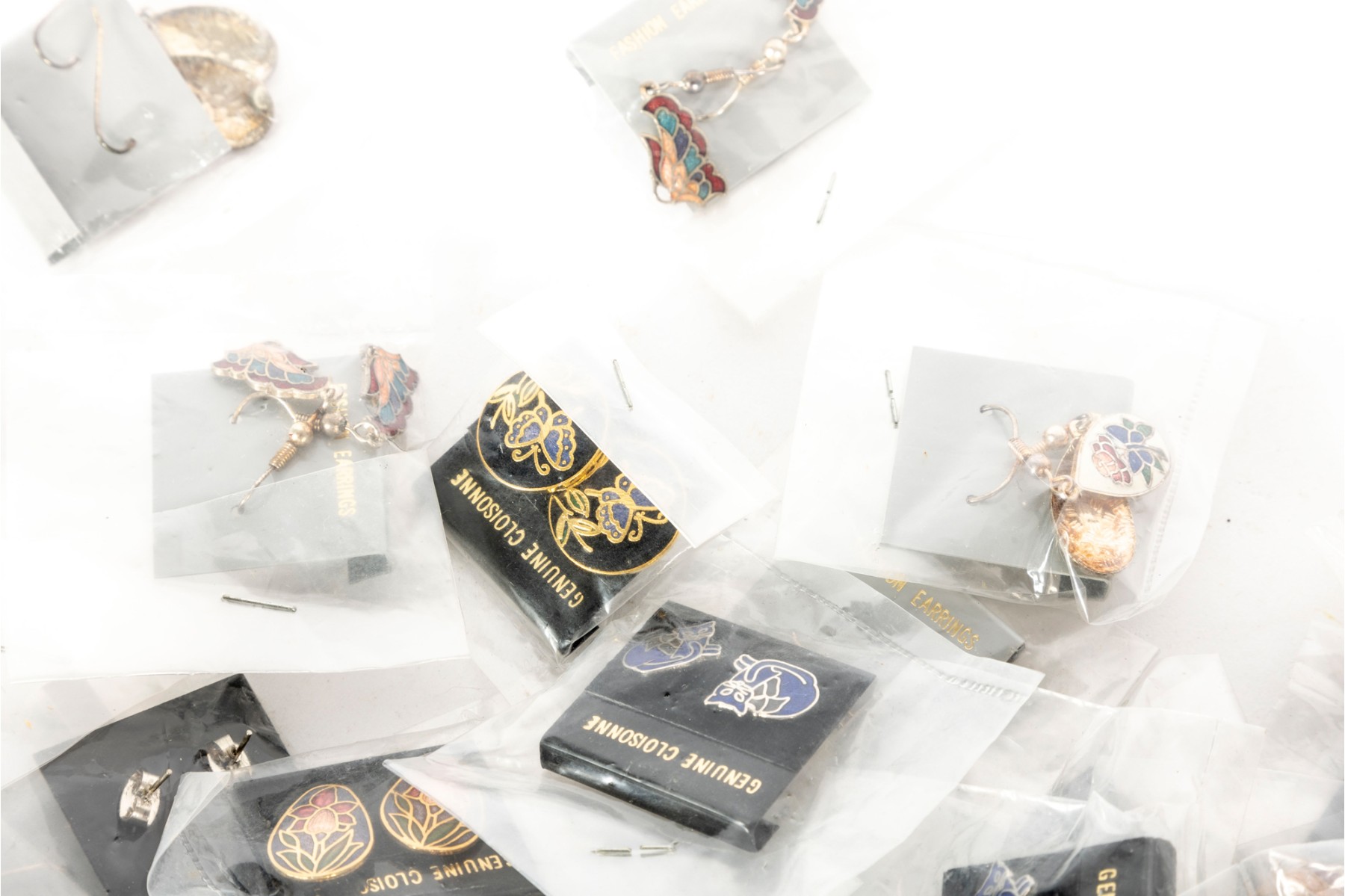 A vast collection of Cloisonne earrings, each set unique -- varying in shape, size and design. See photos for details.
