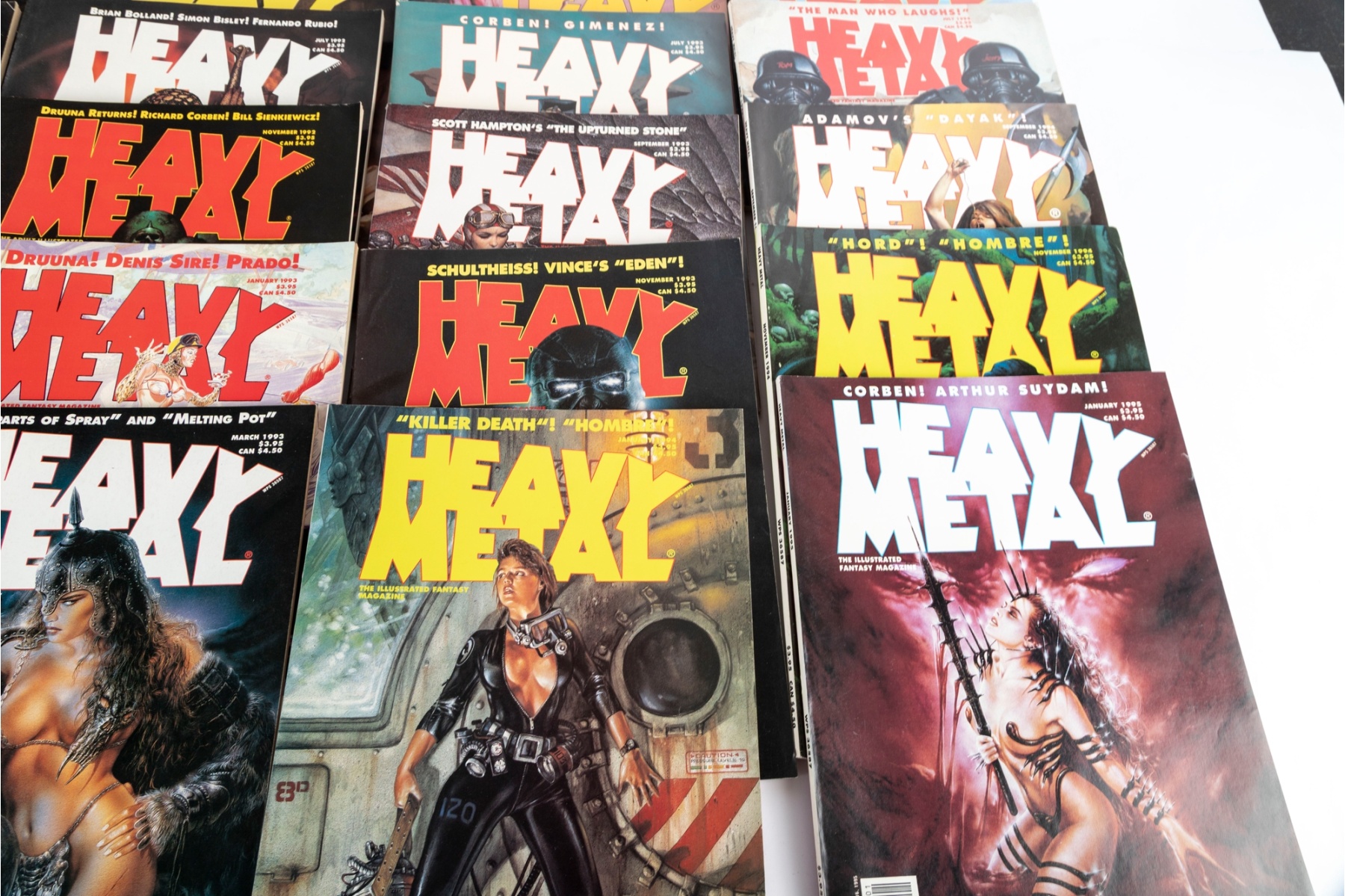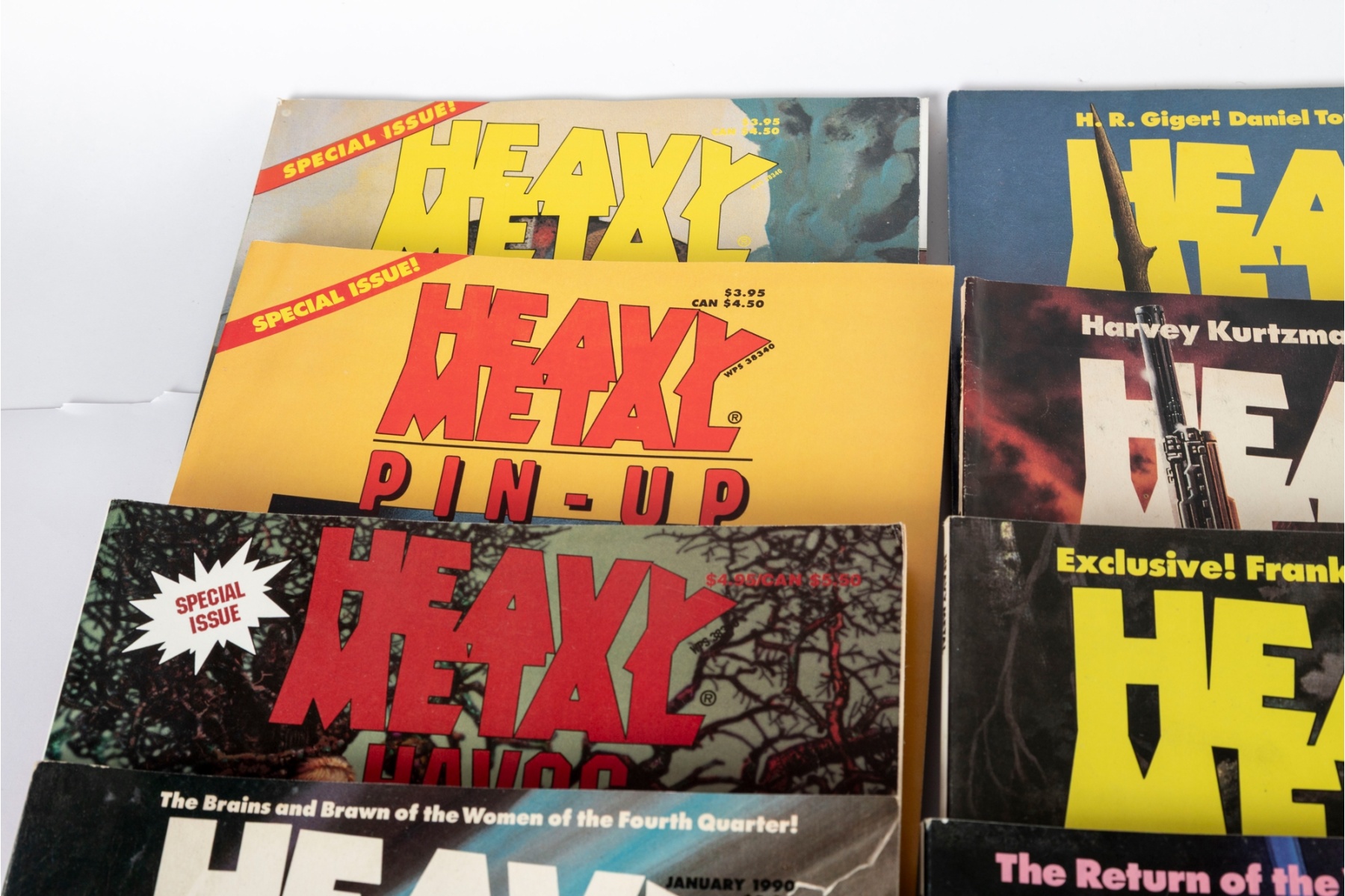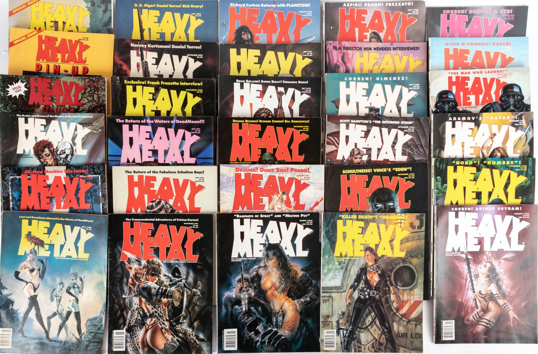 Fantastic vintage collection of Heavy Metal magazines spanning the early–mid 1990s, including issues dated from 1990 through 1995. Titles include regular monthly issues along with special editions such as Heavy Metal Havoc and Pin-Up.