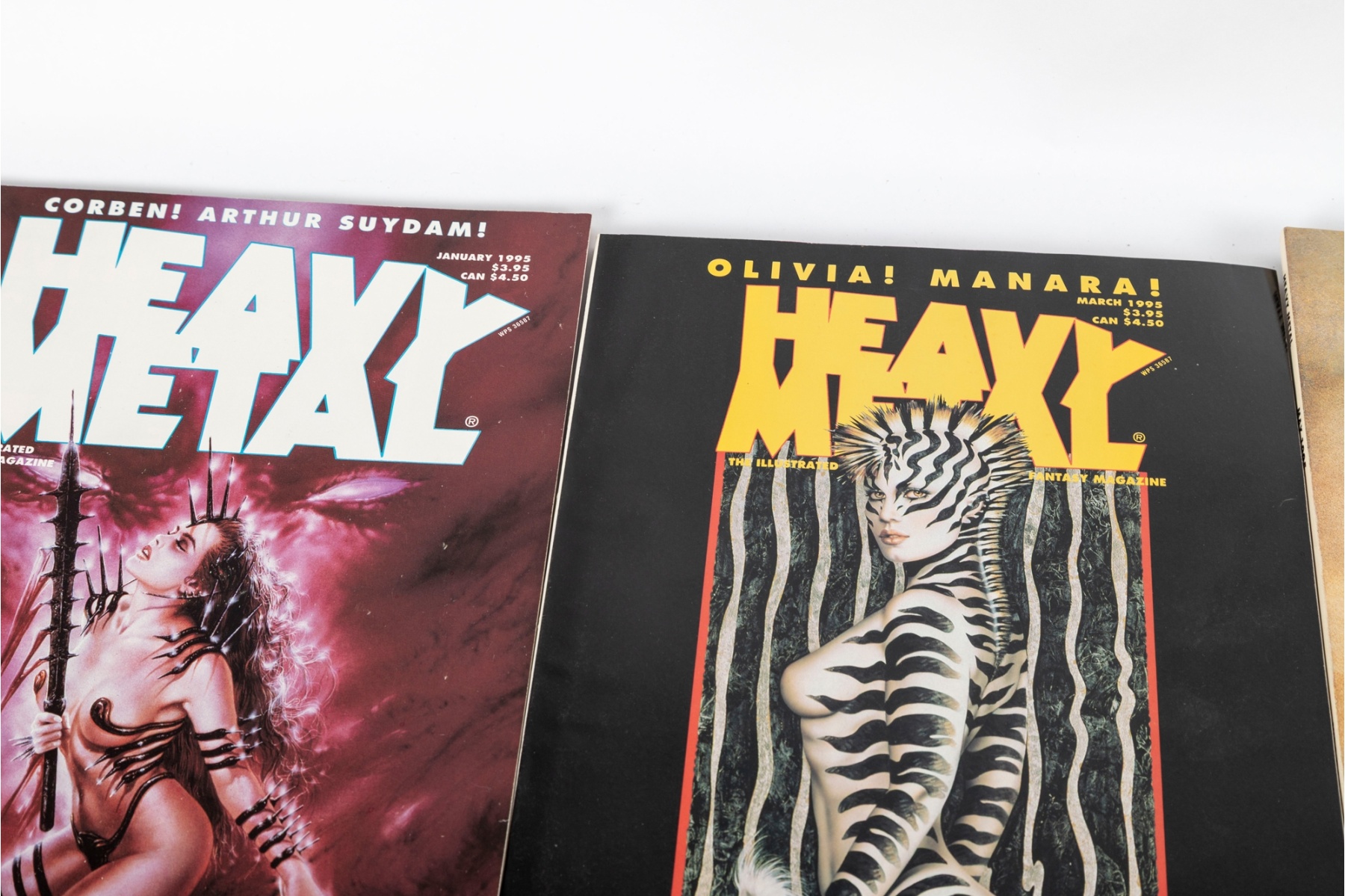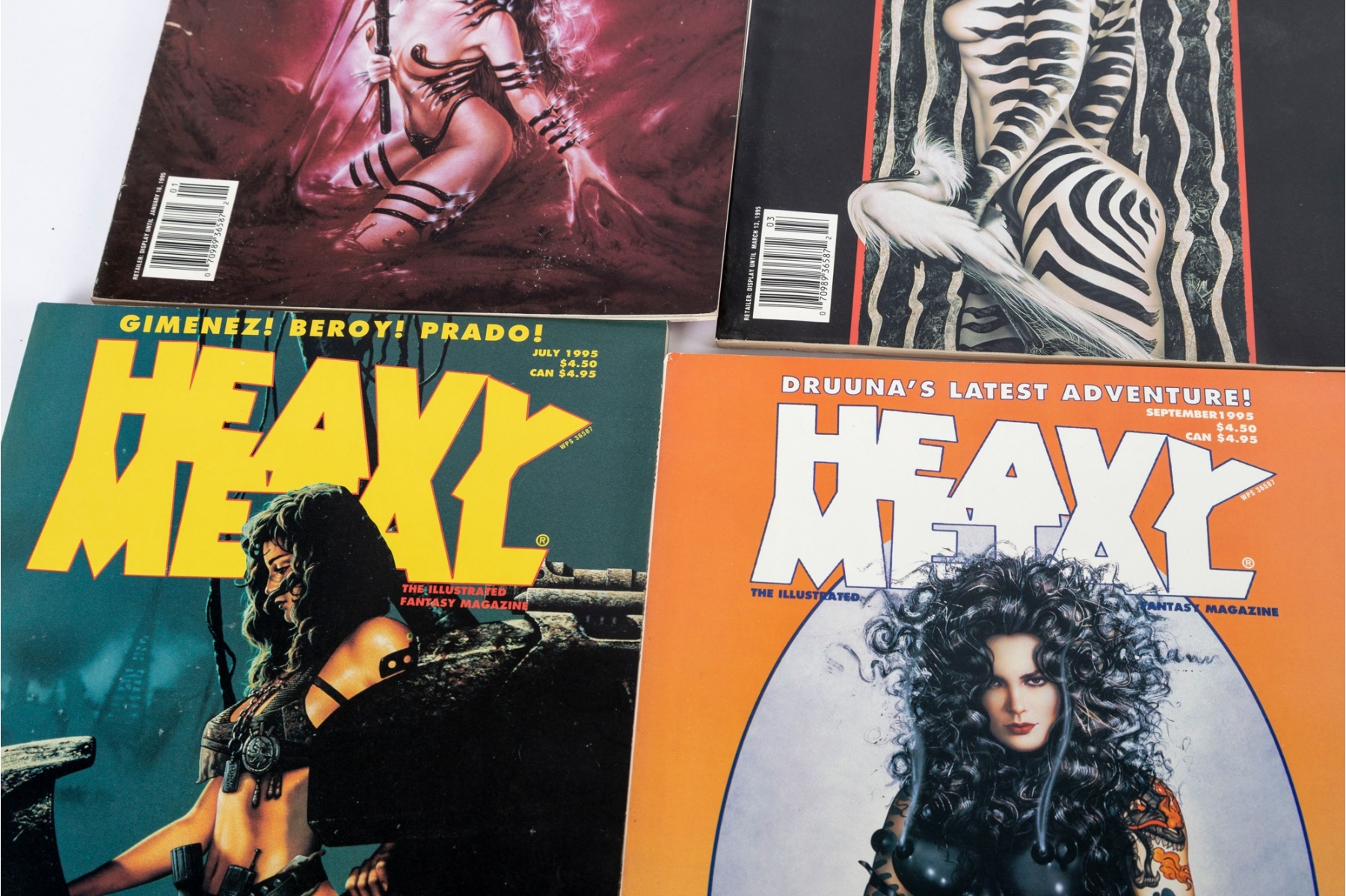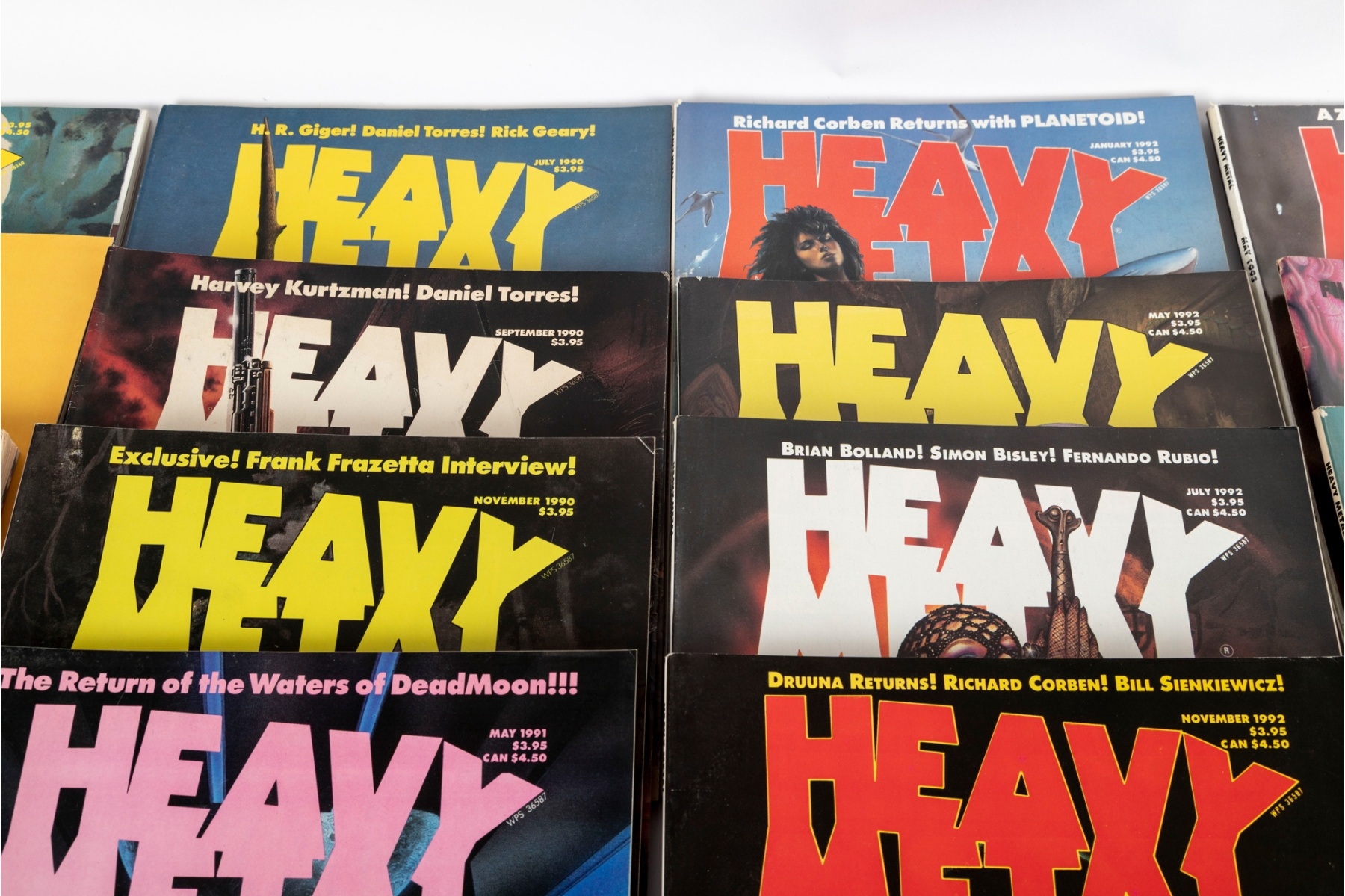 Fantastic vintage collection of Heavy Metal magazines spanning the early–mid 1990s, including issues dated from 1990 through 1995. Titles include regular monthly issues along with special editions such as Heavy Metal Havoc and Pin-Up.