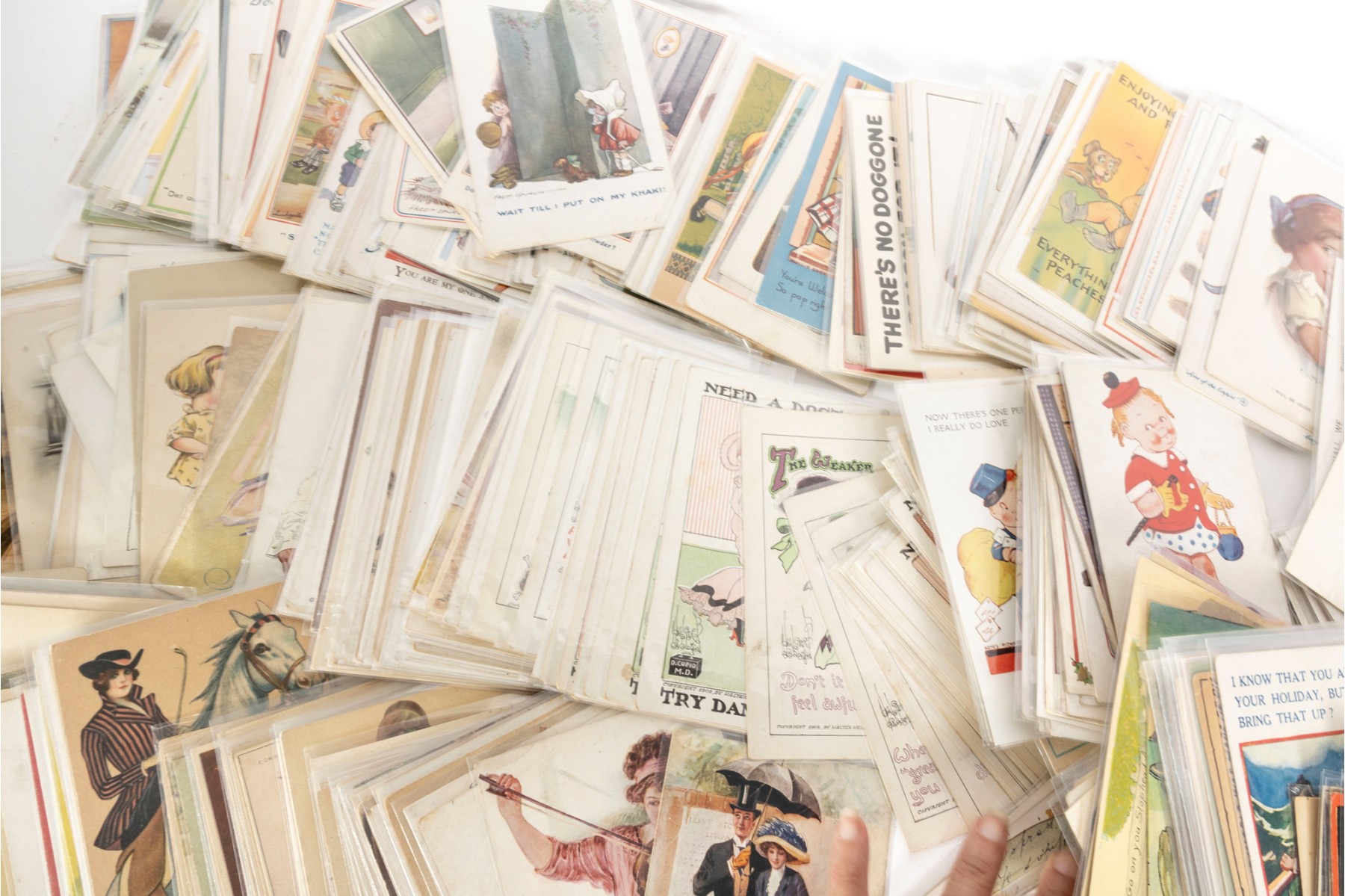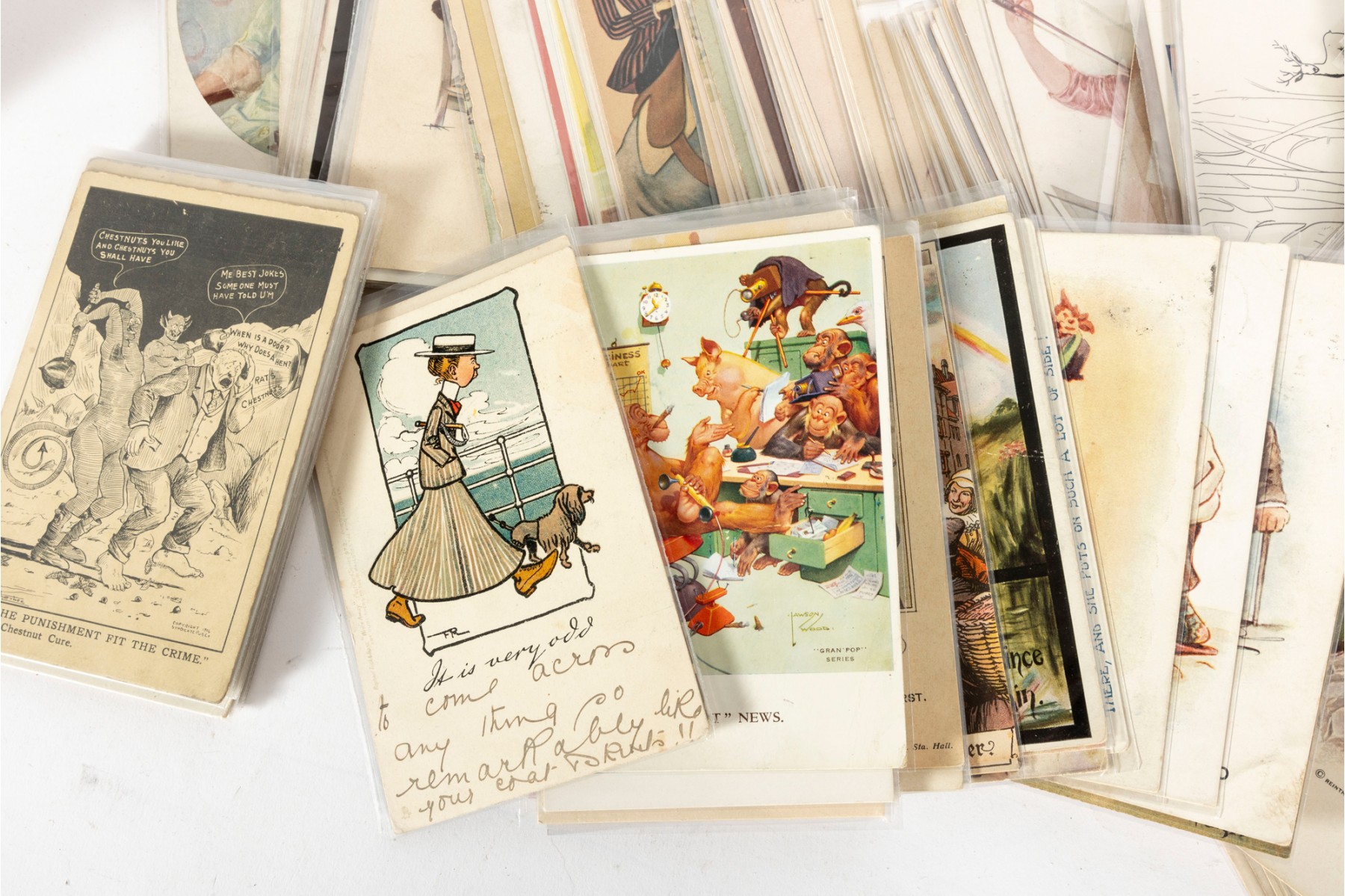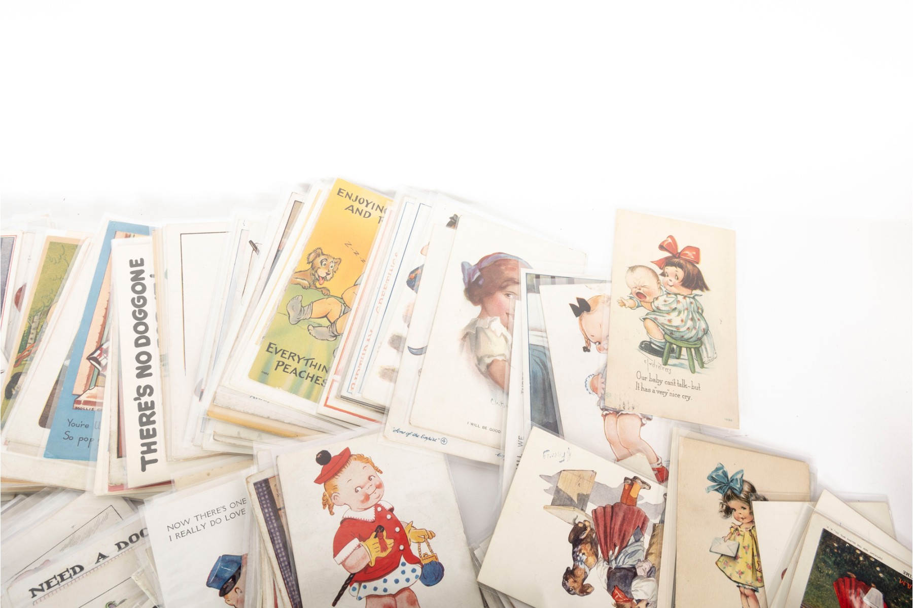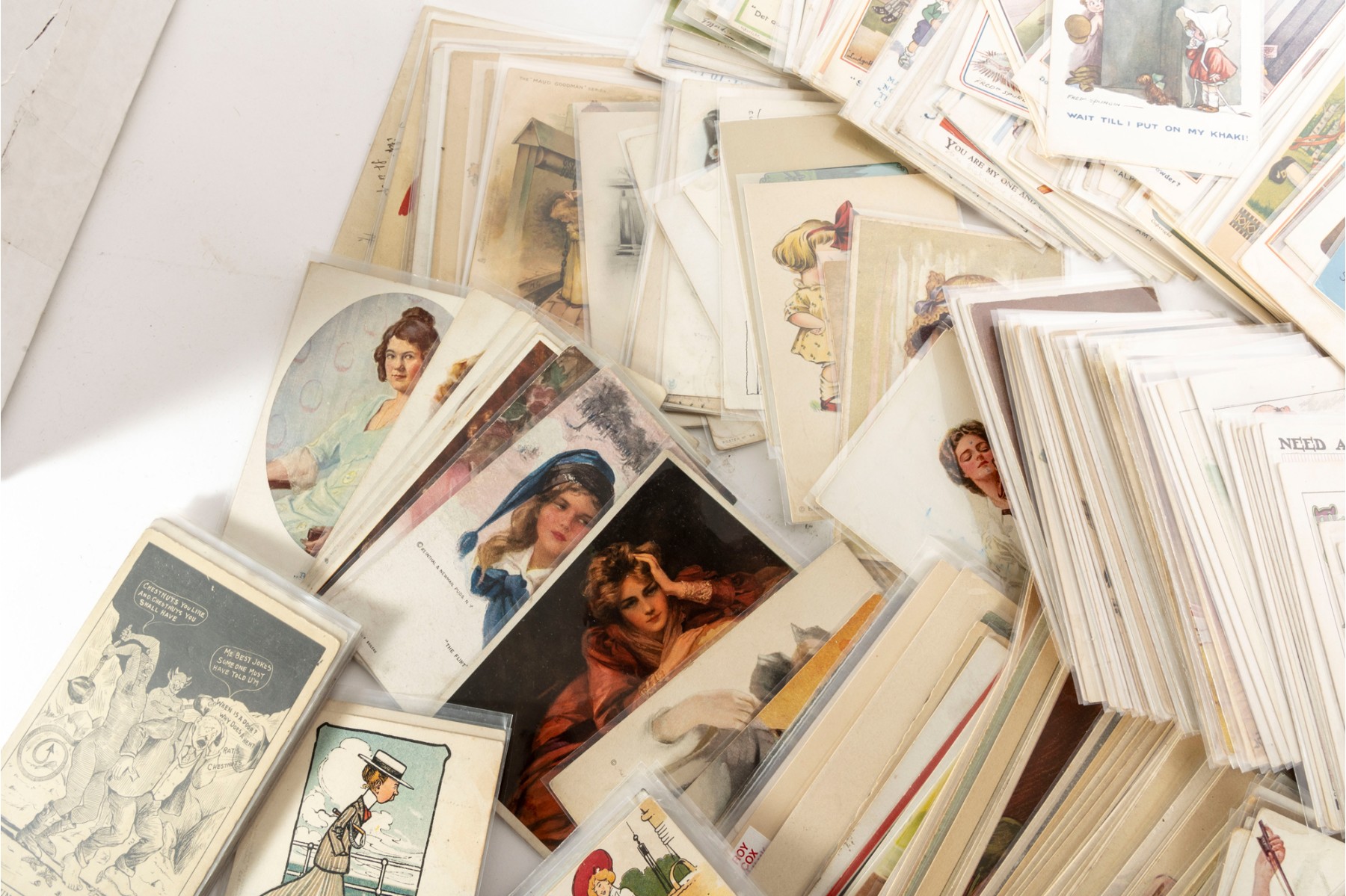 A vast collection of vintage illustrated port cards -- many of which have been used/written in graphite. Please refer to photos for details. All postcards are contained in protective sleeves.
