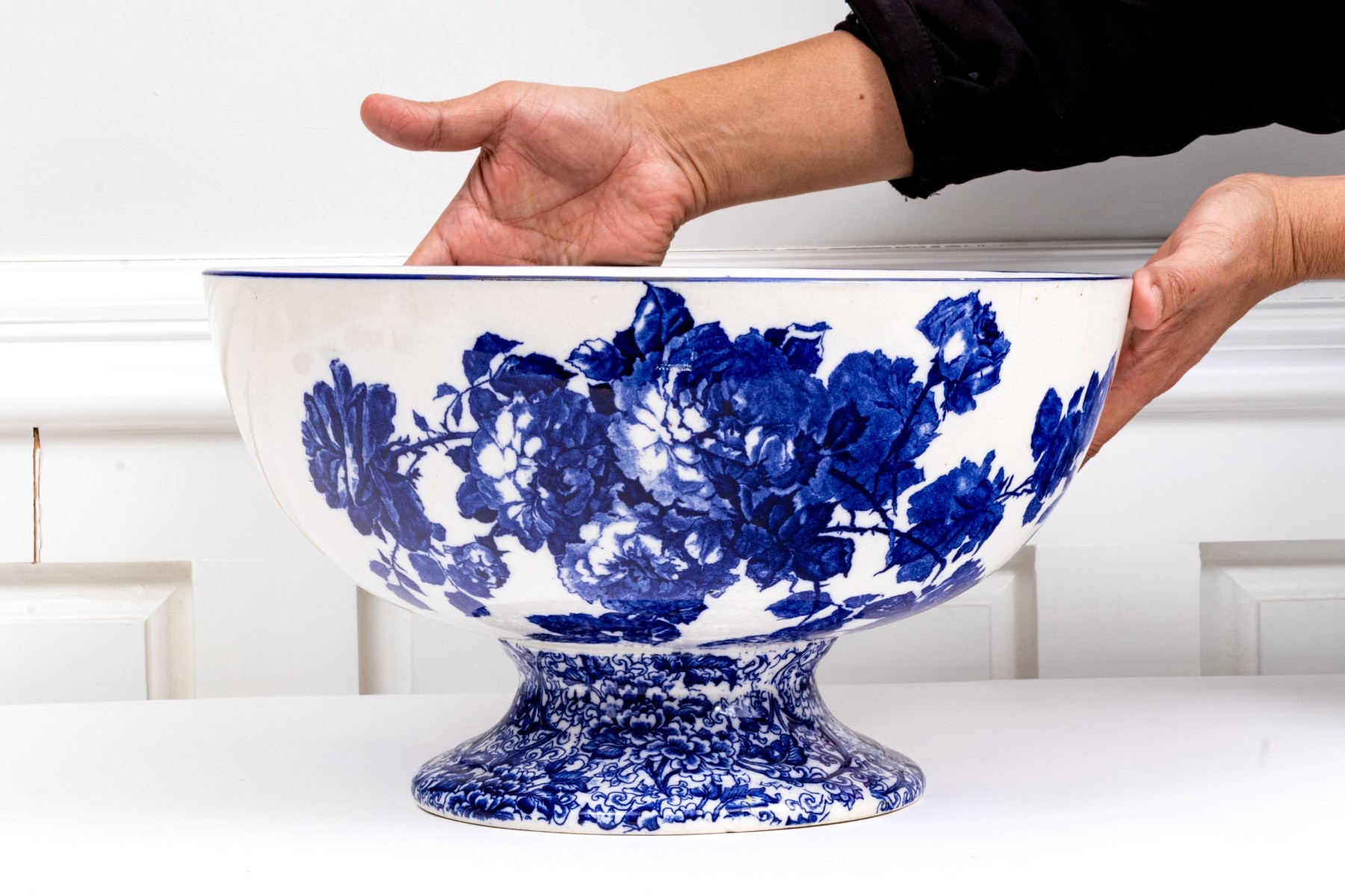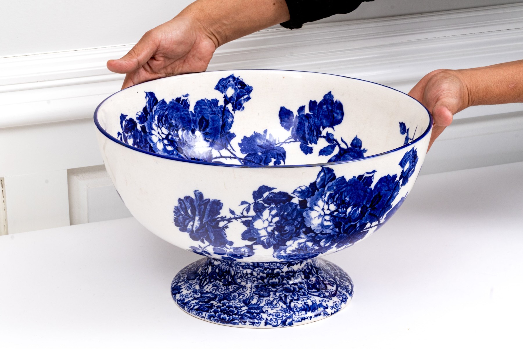 Large English Royal Doulton Footed Blue And White Ceramic Centerpiece Or Punch Bowl #440580. Black Rock Galleries provides high end estate liquidation services through online estate auctions and a 50,000 sq ft designer showroom. estate liquidator, estate sale, online auction, antiques, fine art, liquidation, clean outs, auction, consignment, interior design, fine jewelry, collectibles, appraisals, estate appraisals, estate services, decor, furniture, furniture consignment, antique center, consignment shop. We offer appraisal services and specialize in fine art, jewelry, antiques and decorative arts. Sell with us. Black Rock Galleries is the tri-state's largest estate liquidator serving New England and the greater New York City area. We are the trusted source for expert appraisals, auction services, estate sales, and consignments. Black Rock Galleries is the east coast's largest and most trusted estate liquidator, with locations in Connecticut, greater Boston, MA and Raleigh, NC, Fairfield, Southport, Apex, TX. We are the best source for expert appraisals, auction services, estate sales and consignments. We have served thousands of families and estates with compassion, professionalism and expertise. BRG works with attorneys, executors, realtors and families to bring the greatest return on personal and estate property in the current market. Our unique combination of services make us the easy choice to get the job done in a timely and stress-free manner. We are with you from the initial consultation to the final clean out. Our house-built online auction software platform offers clients a dynamic approach to liquidating their personal property. This venue is most successful in bringing the best return with the least amount of disruption for our clients. See our services page for a complete description of this offering. Large English Royal Doulton Footed Blue And White Ceramic Centerpiece Or Punch Bowl #440580
