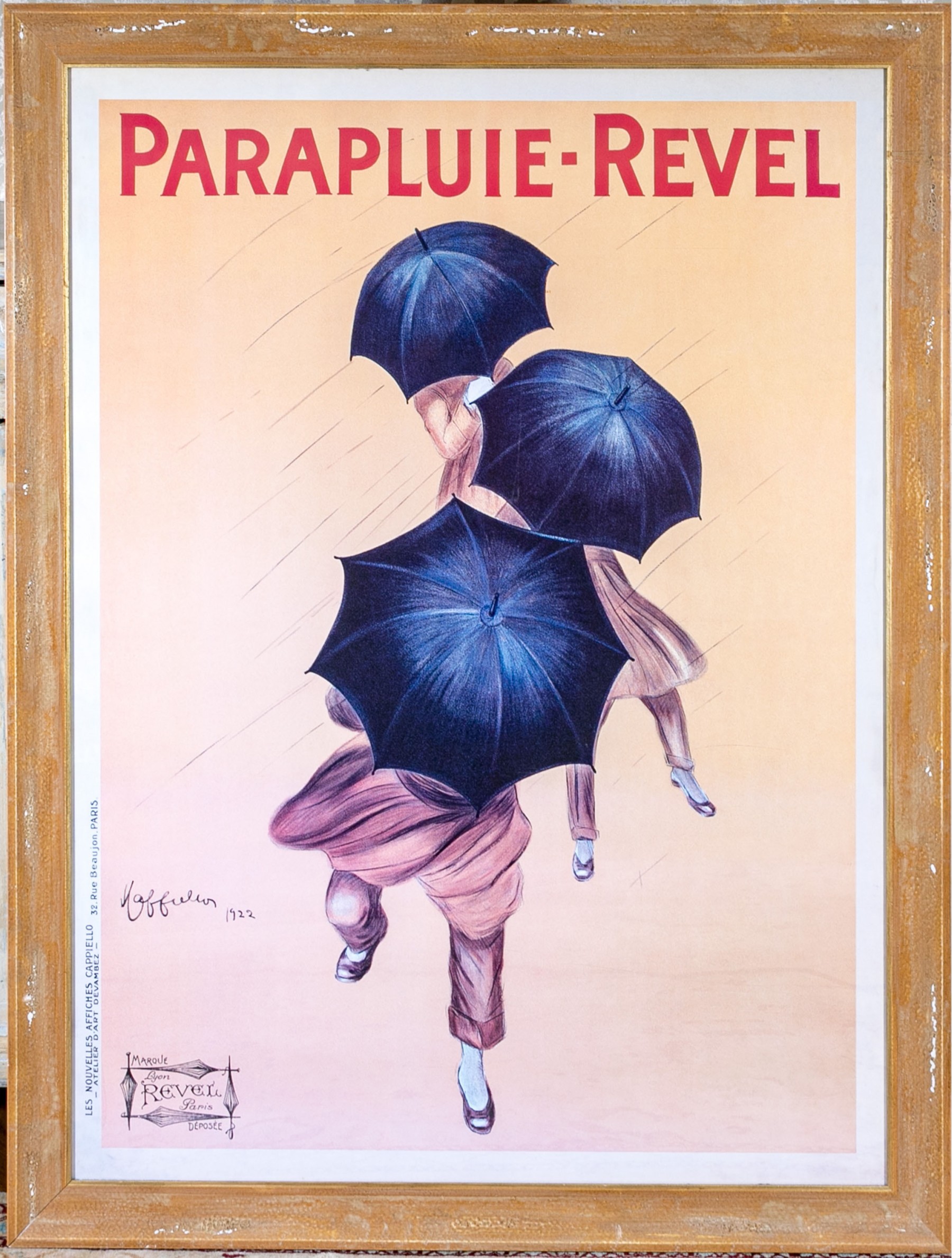 A reproduction French colored poster. "Parapluie-Revel." Custom framed.