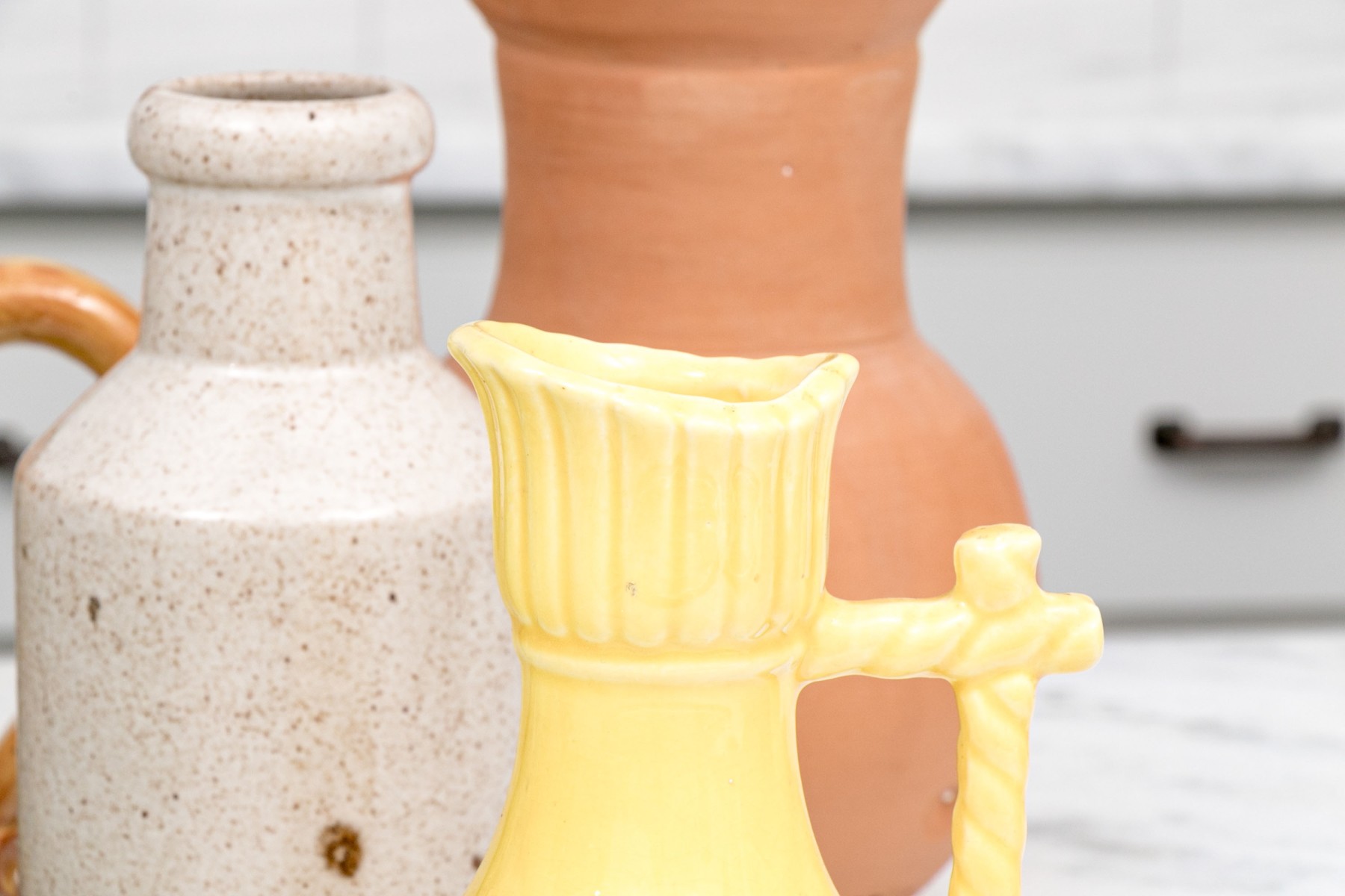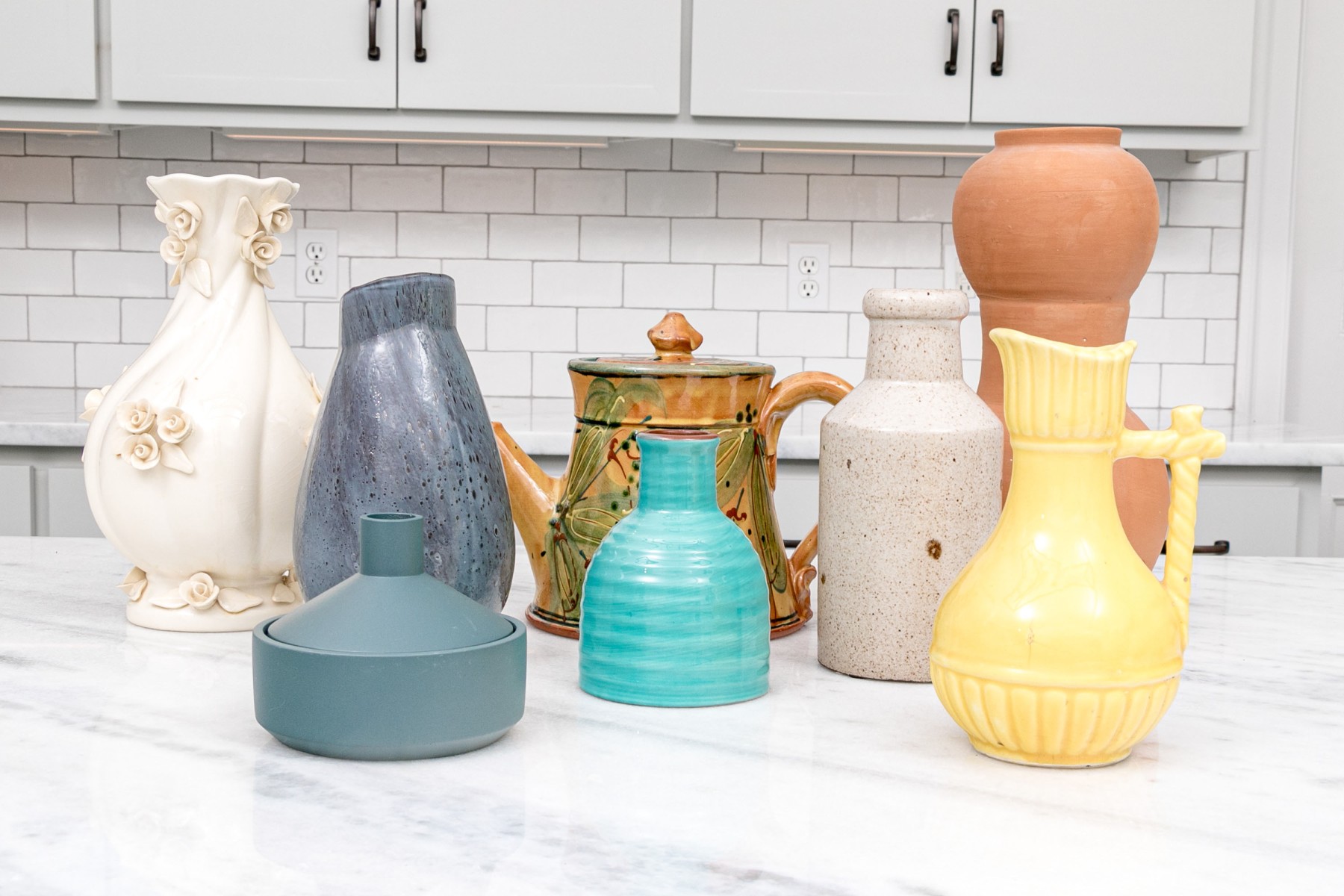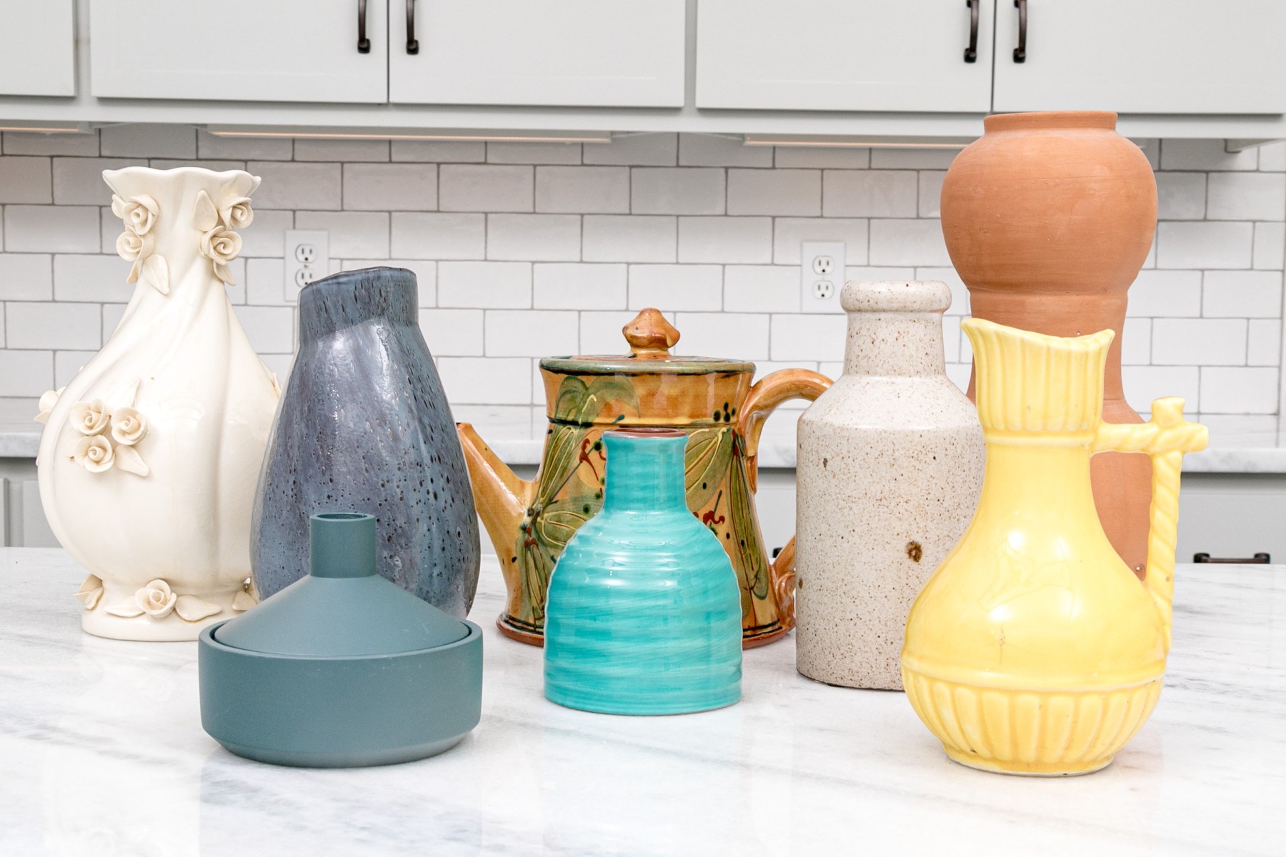 Includes a lidded mortar, ewers, vases, lidded teapots all with mixed glaze.
