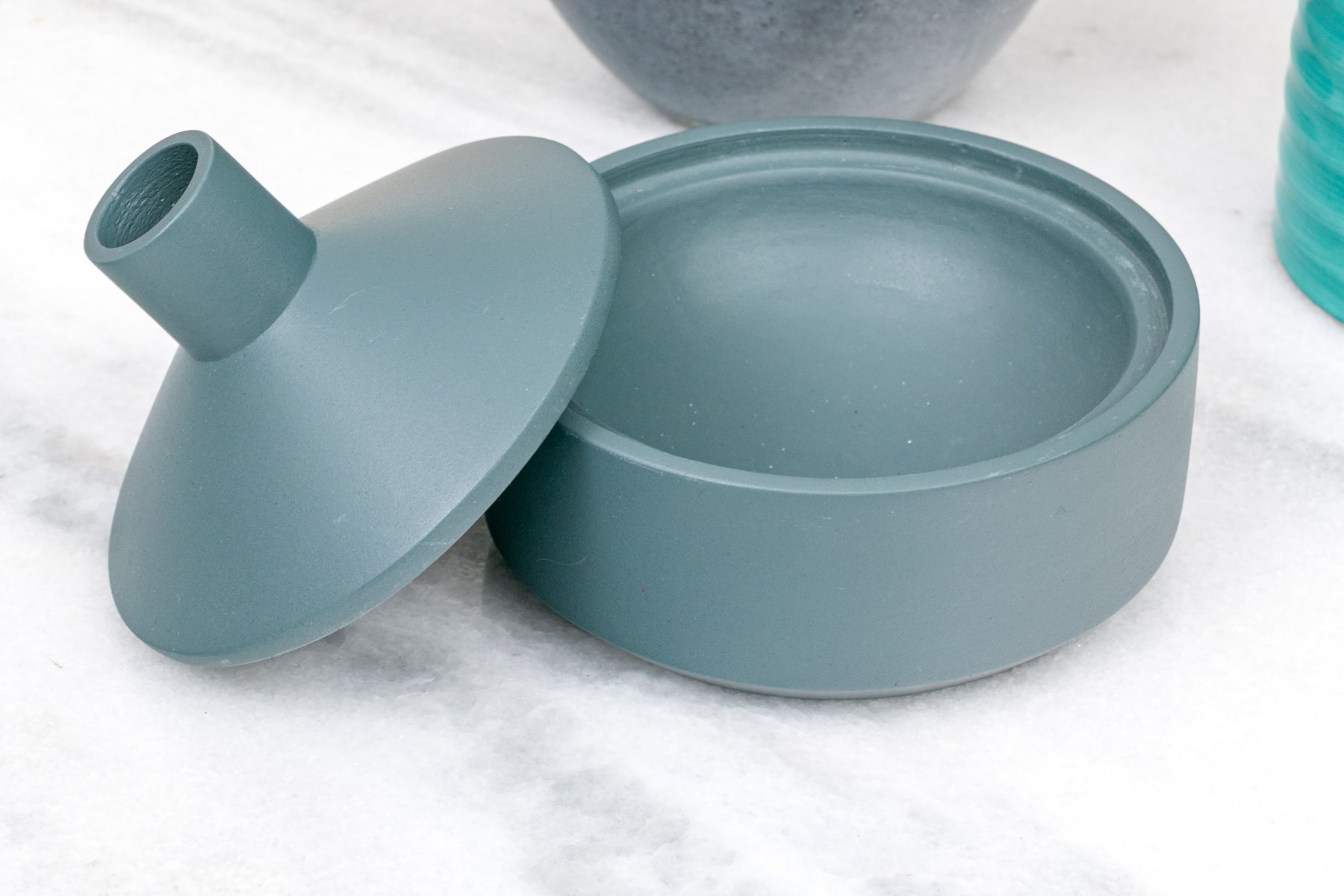 4 1/4" H x 4 5/8” DIA, smallest lidded bowl