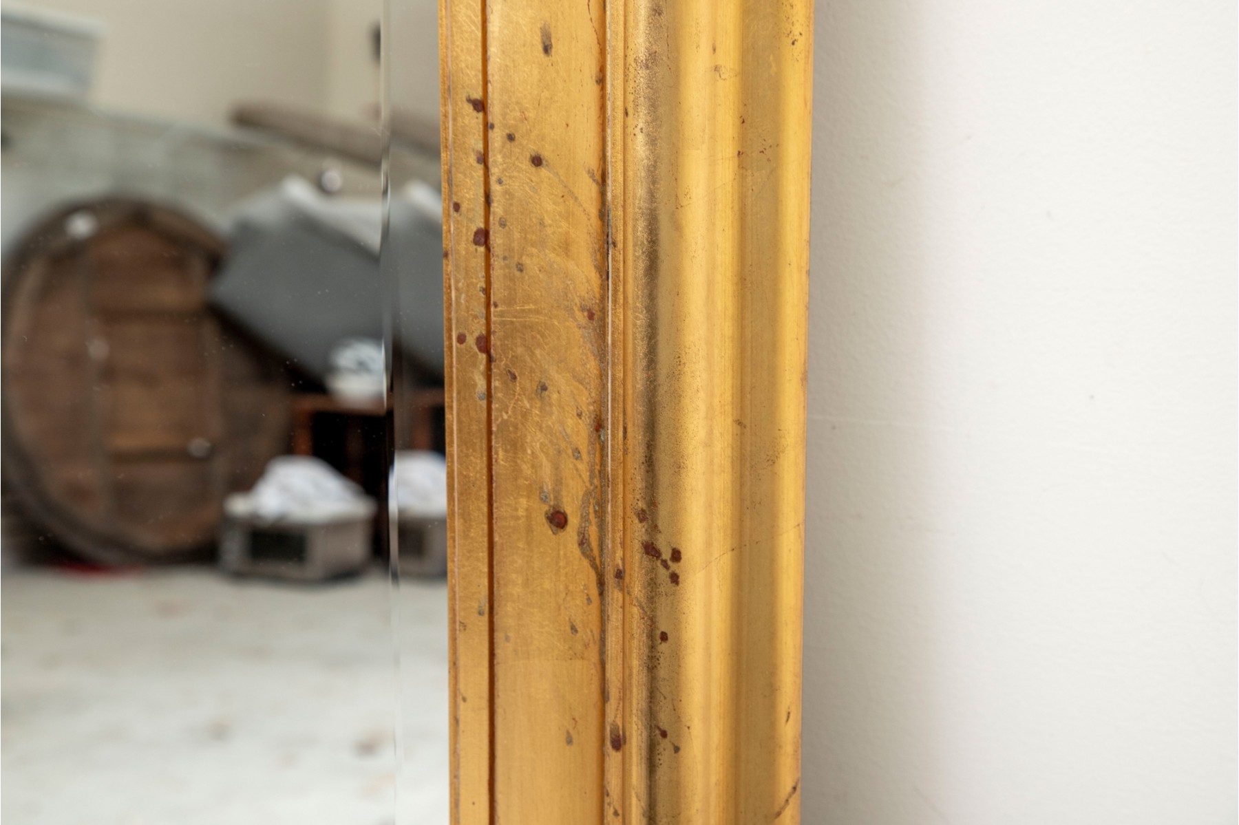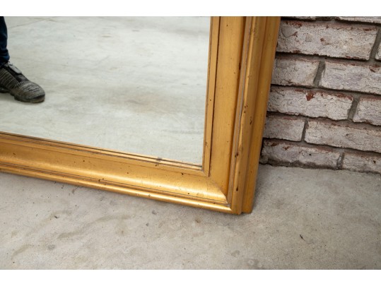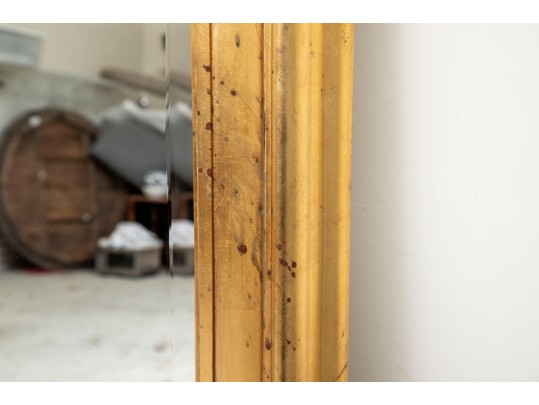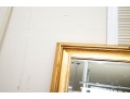 A richly painted gilt frame wall mirror -- large, sporting beveled glass detail.