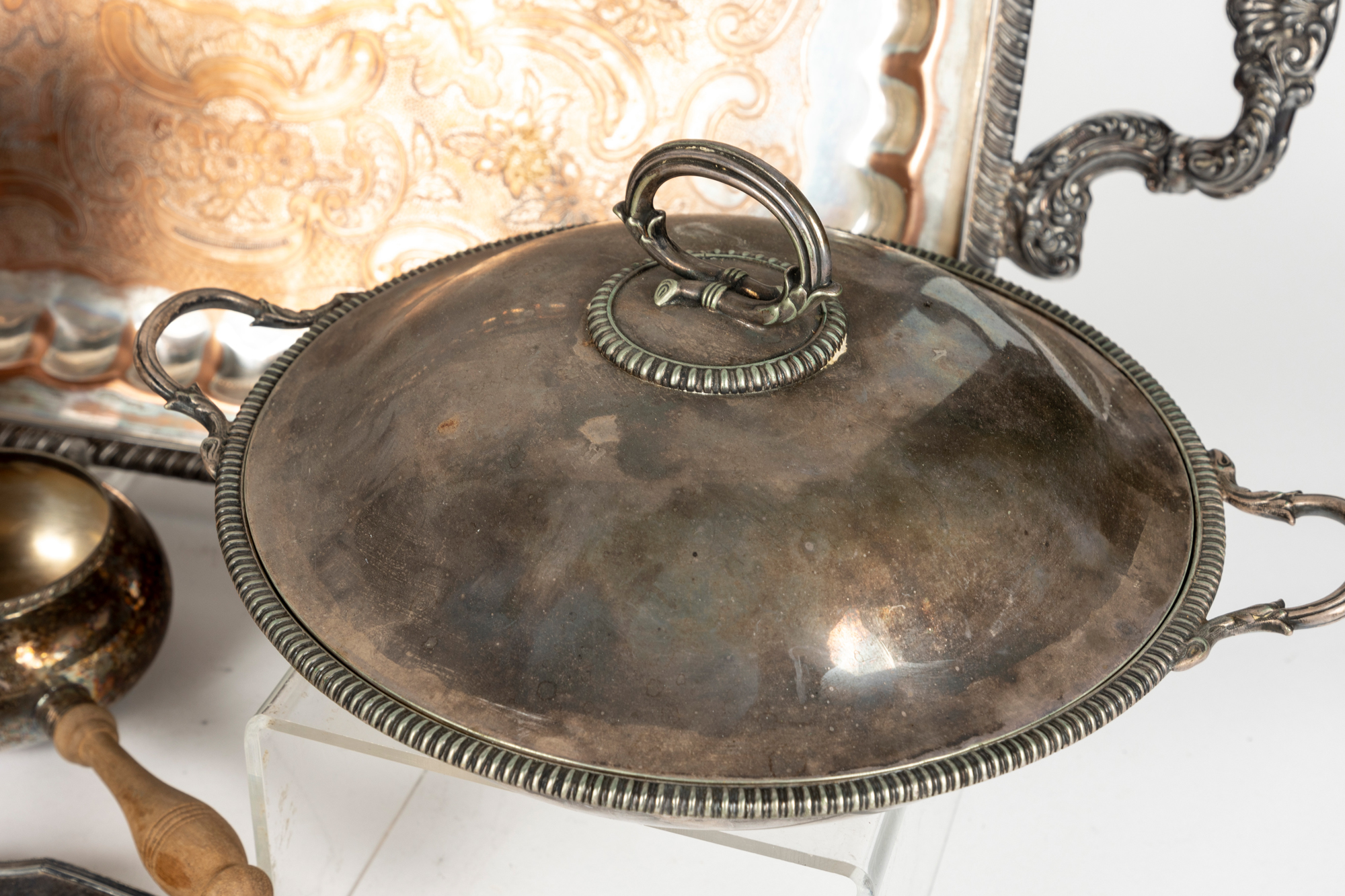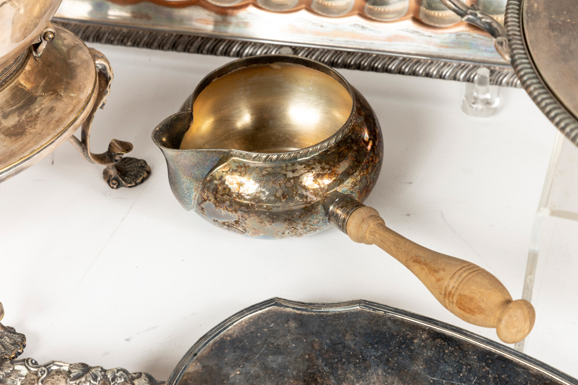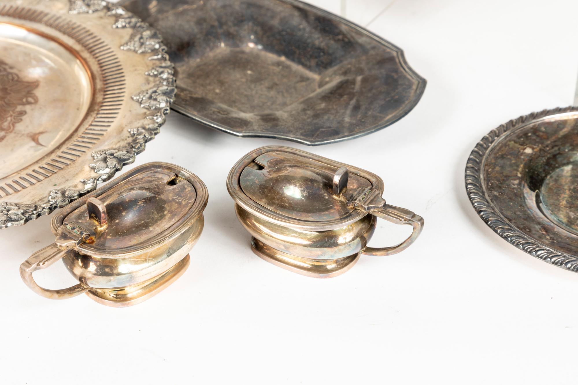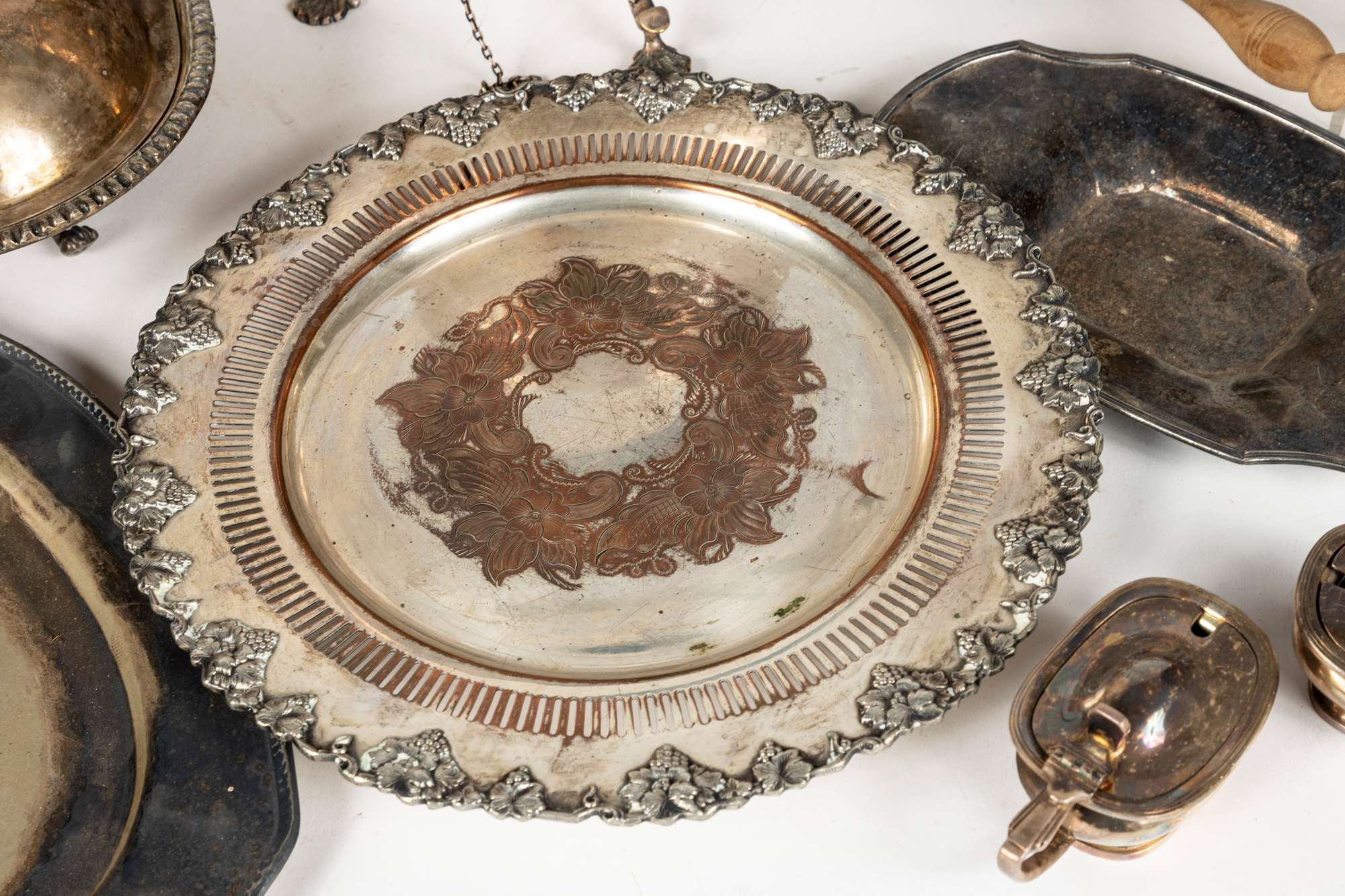 A large collection of vintage silver plate items. All pieces may display signs of wear with scratching, denting or missing pieces. Items can use a polish/cleaning. Largest item (rectangular handled tray) measures- 25"L x 14 1/2"W including length of handles.