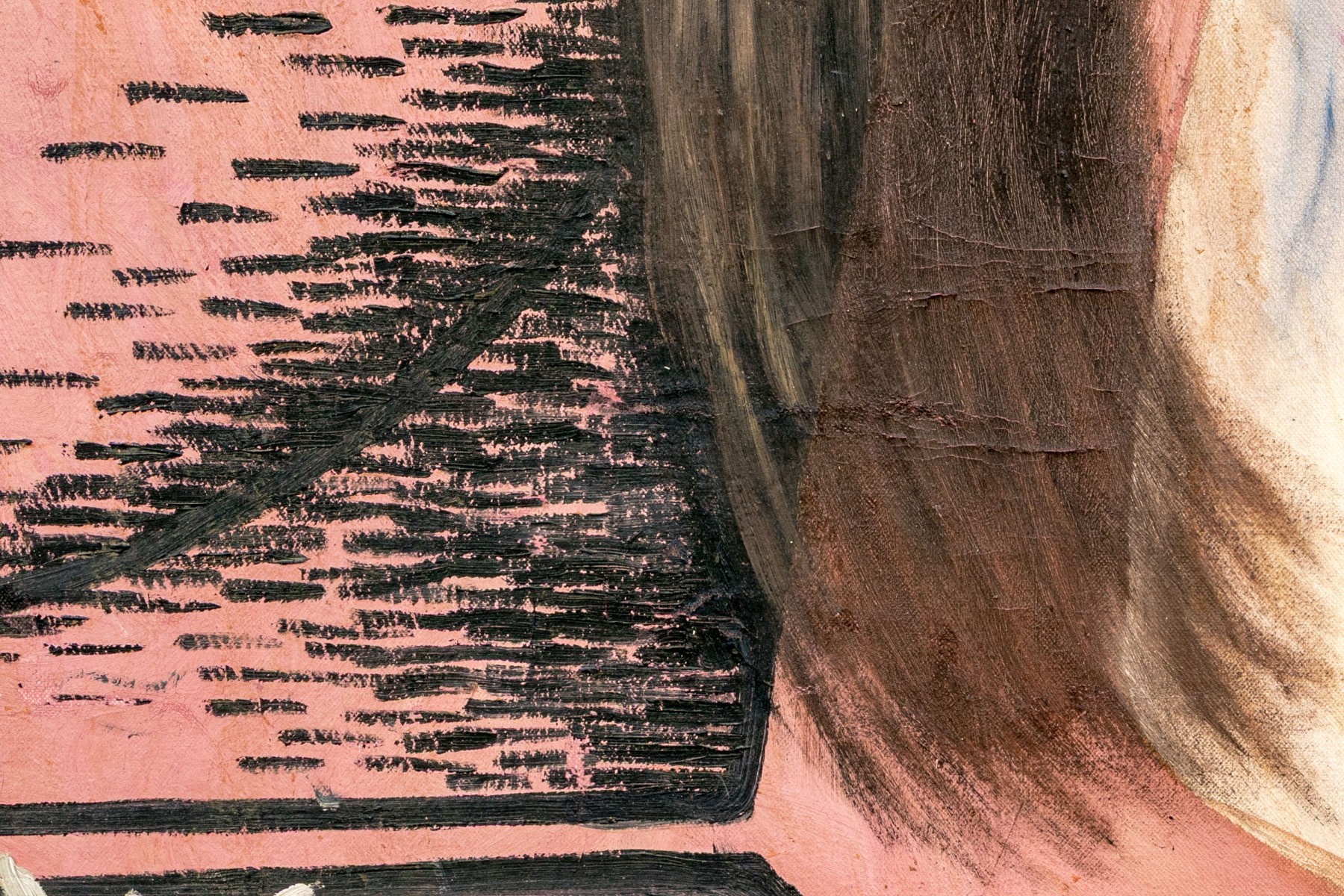 Overall in good condition. Some wear to the canvas which could be pulled tighter on its stretcher but presents well.