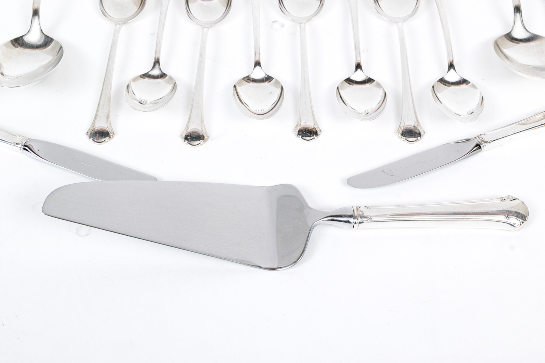 Along with serving pieces- two spoons, 2 butter knives and a cake server