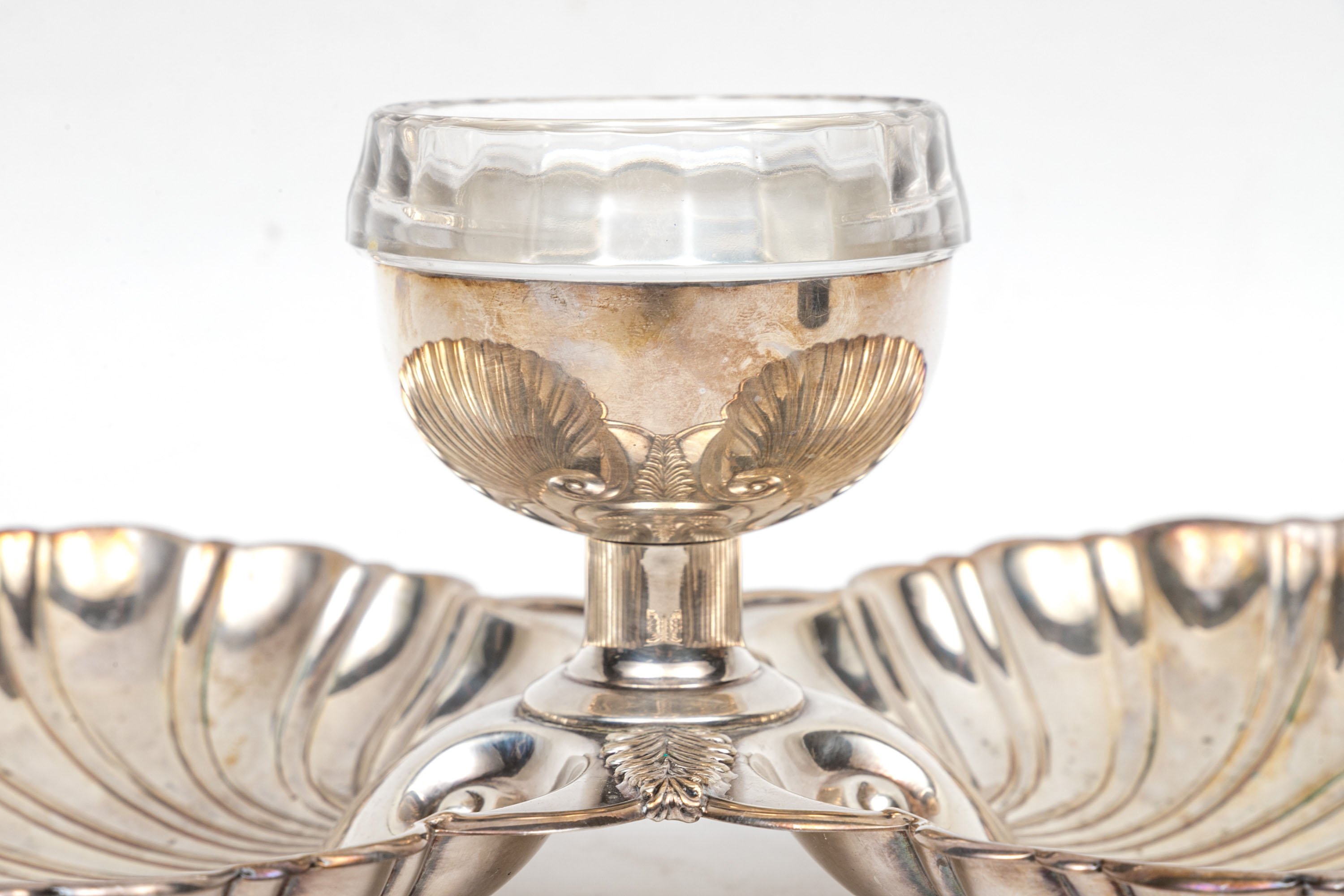 Removeable center bowl with glass liner. Marked on bottom, Crescent, 12-12S