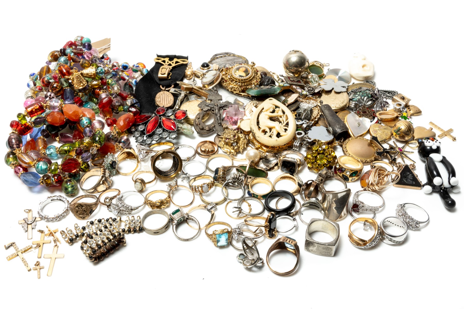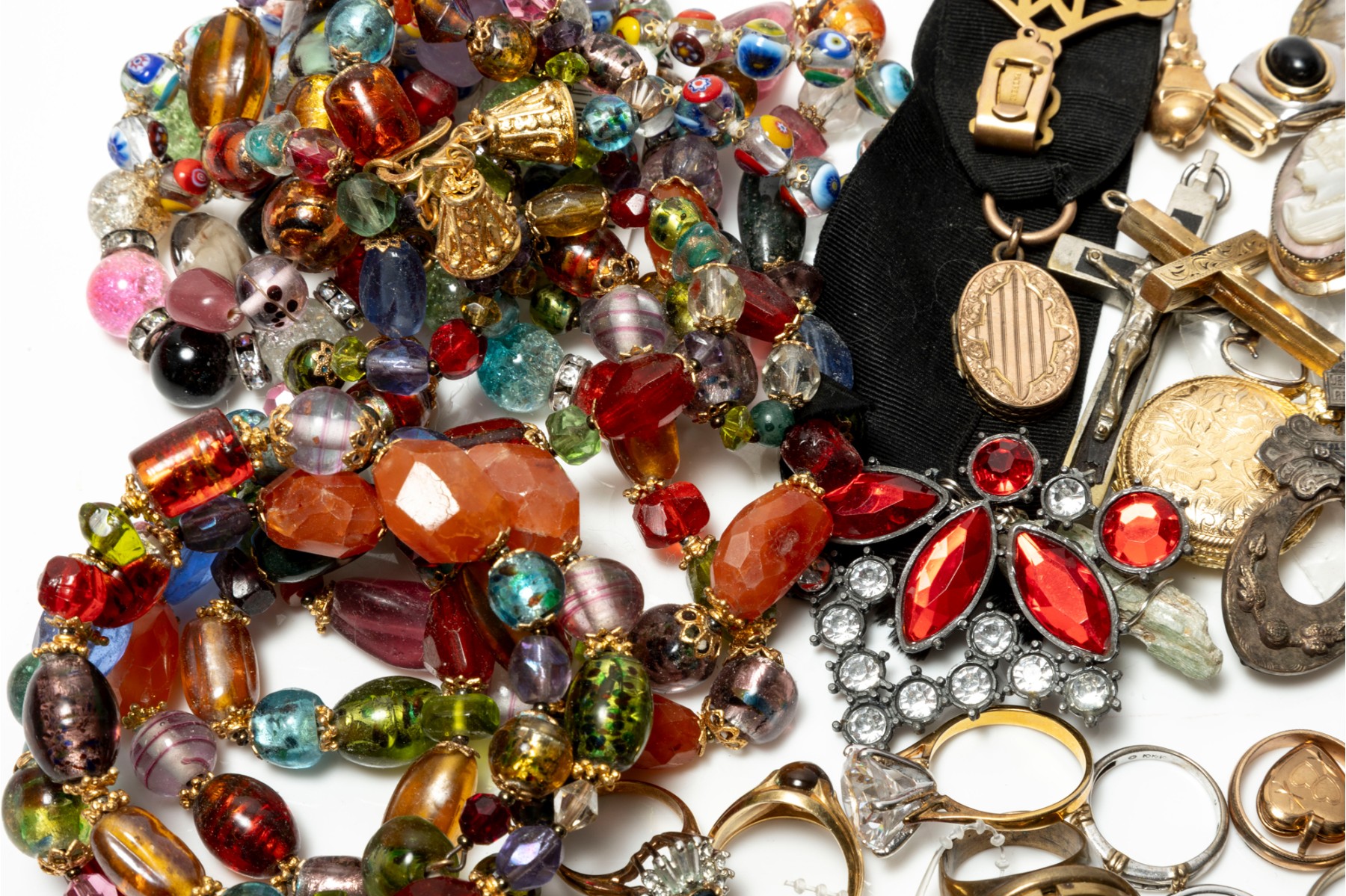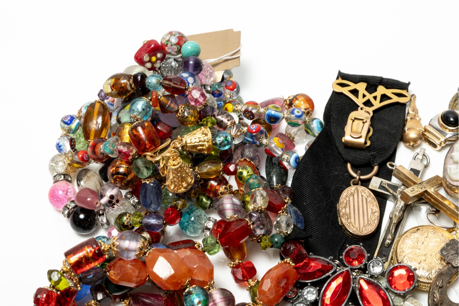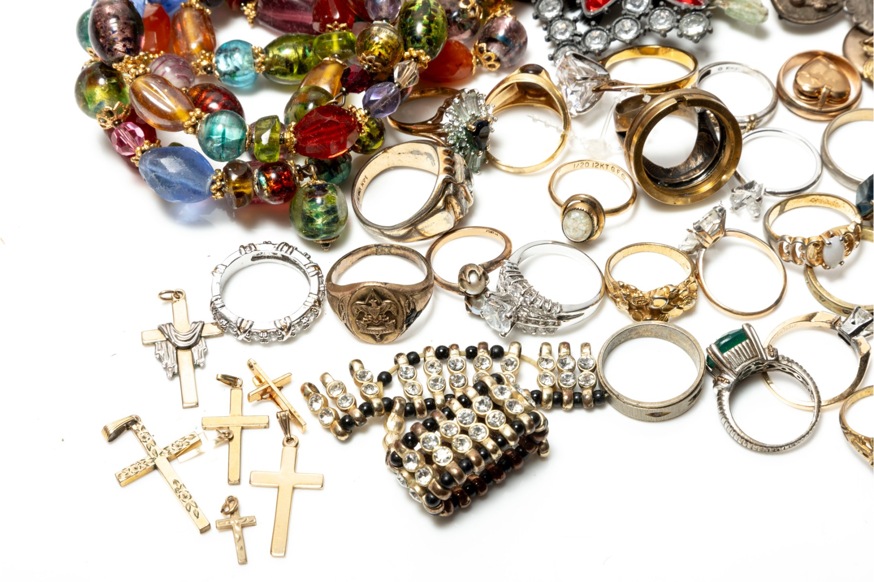 A large collection of fashion pendants, rings, and art glass beaded accessories in a variety of designs.