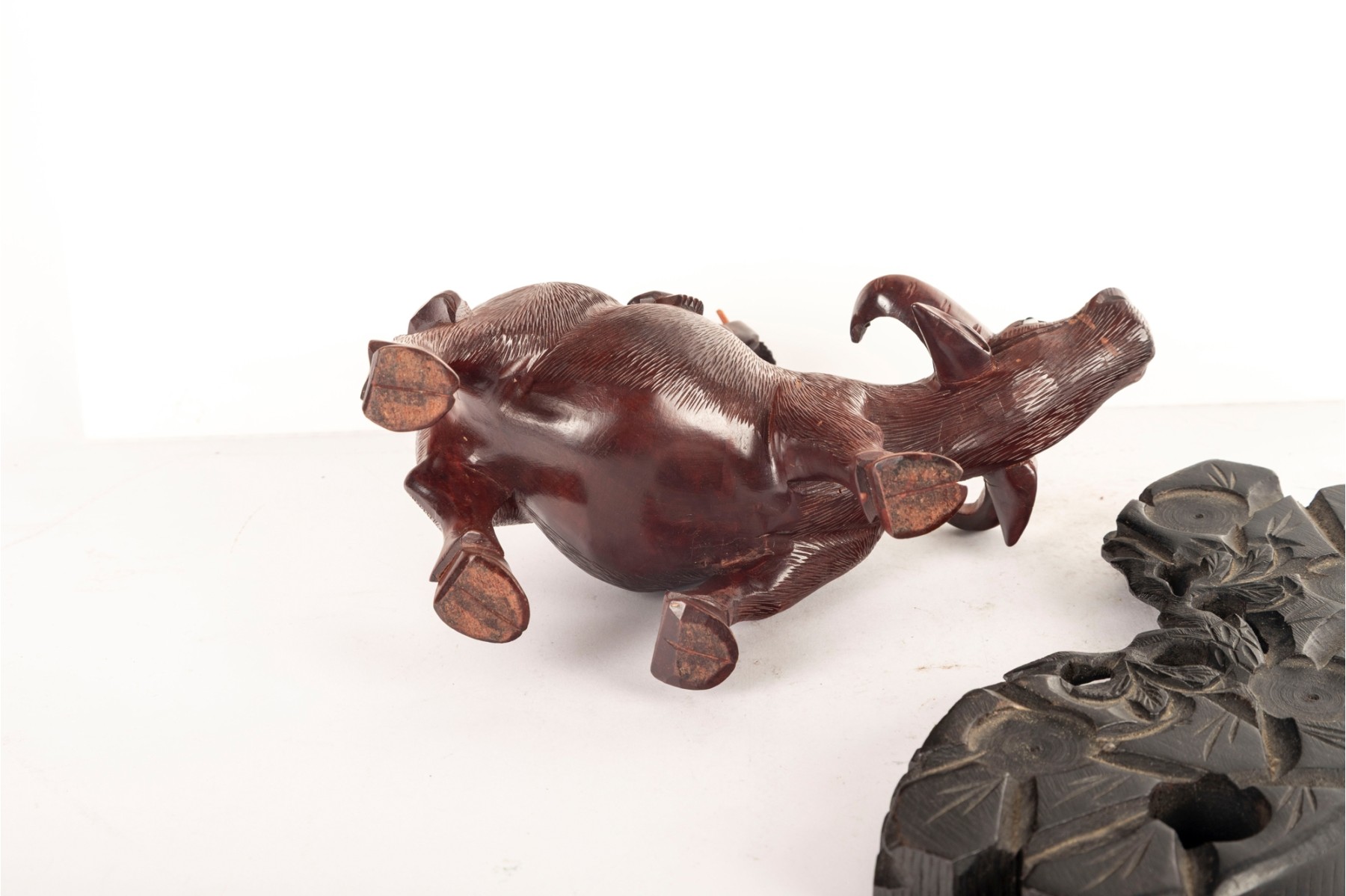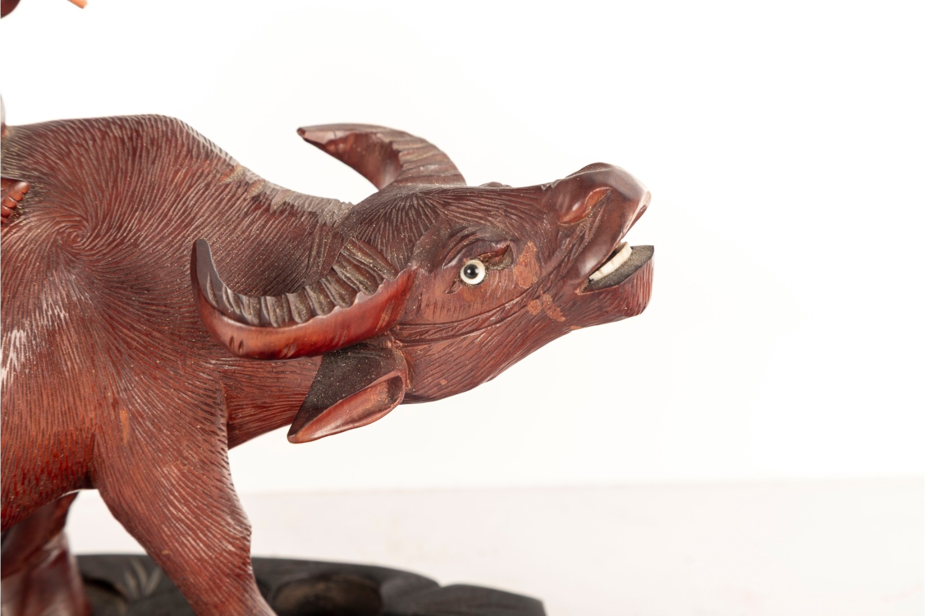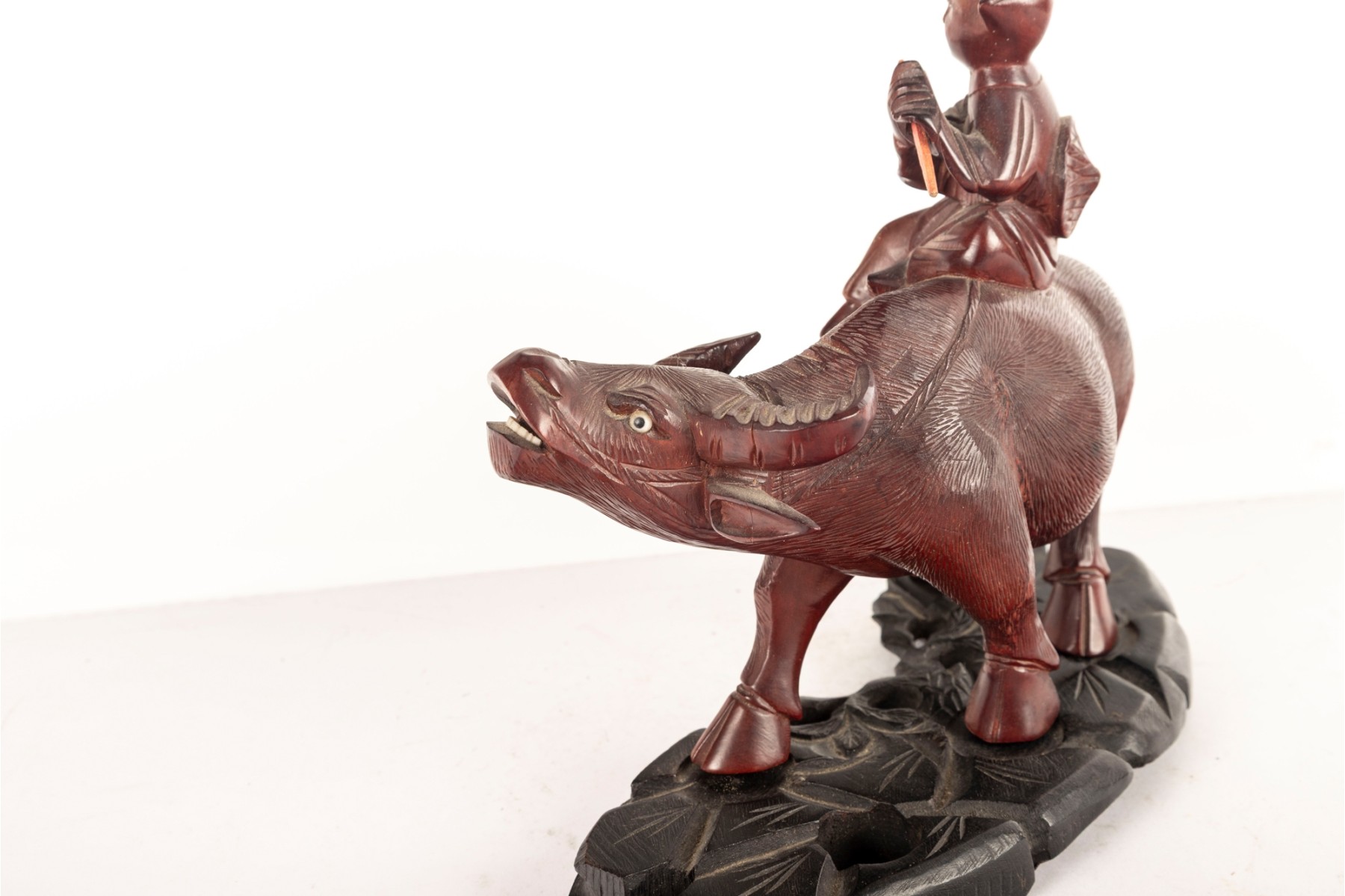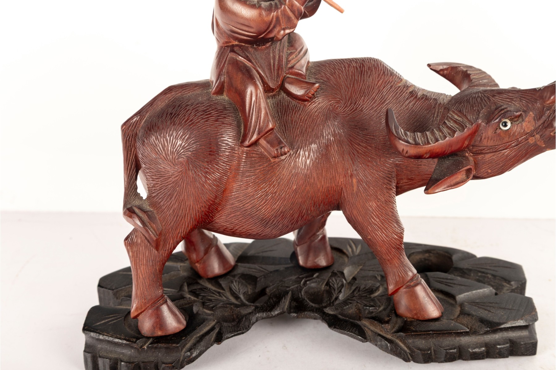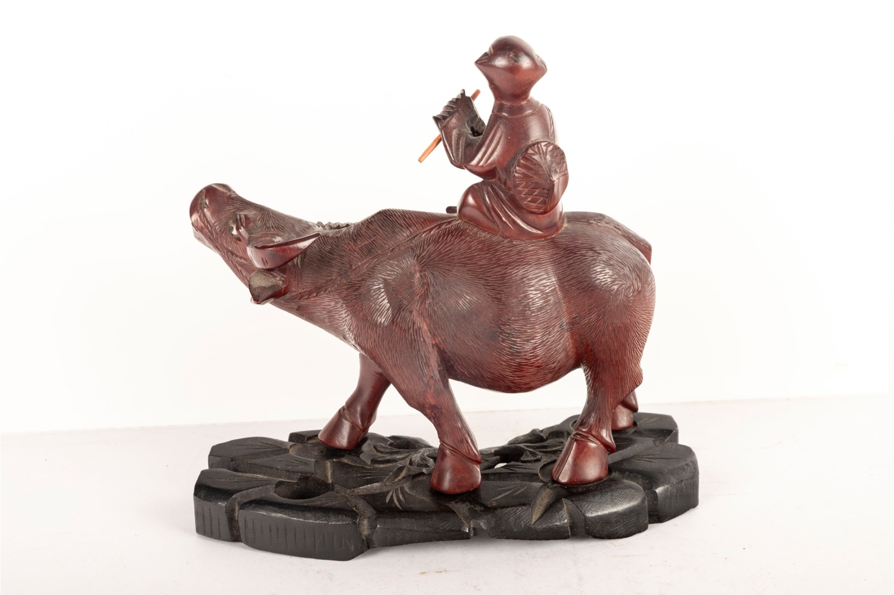Late 19th Centiry Carved Wood Sculpture Of Elder Riding Water Buffalo