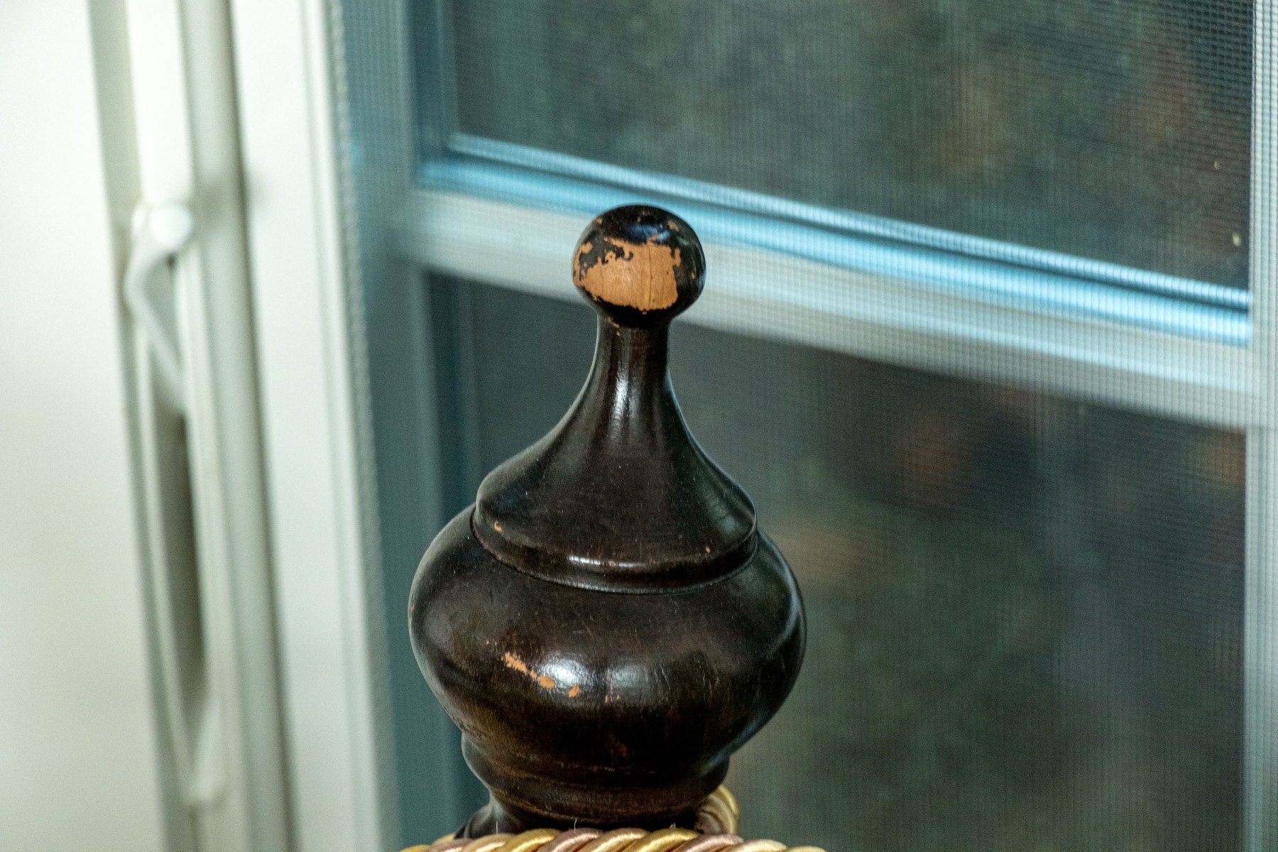 Good with gentle wear commensurate with age and use, slightly sunned but presents well. One of the finials with a small chip.
