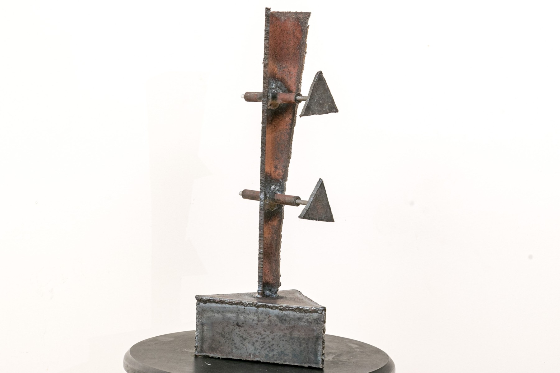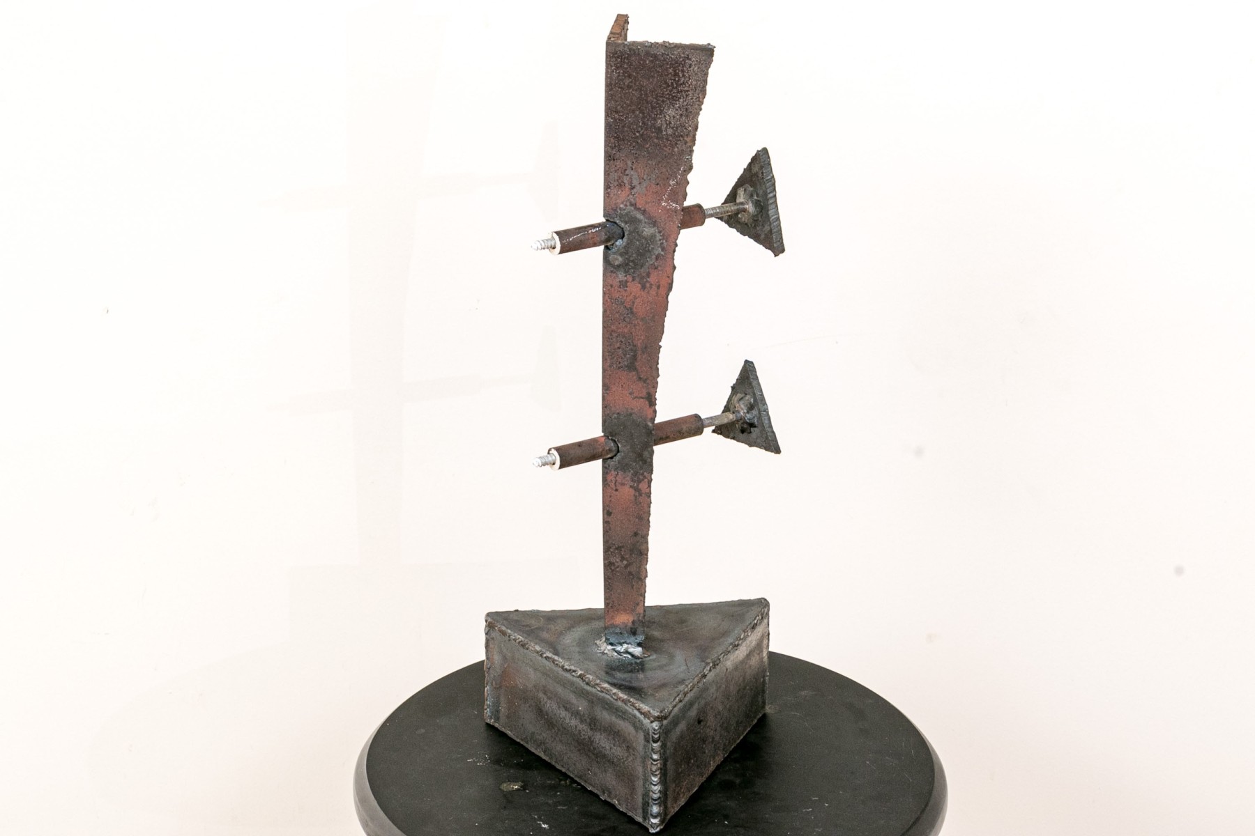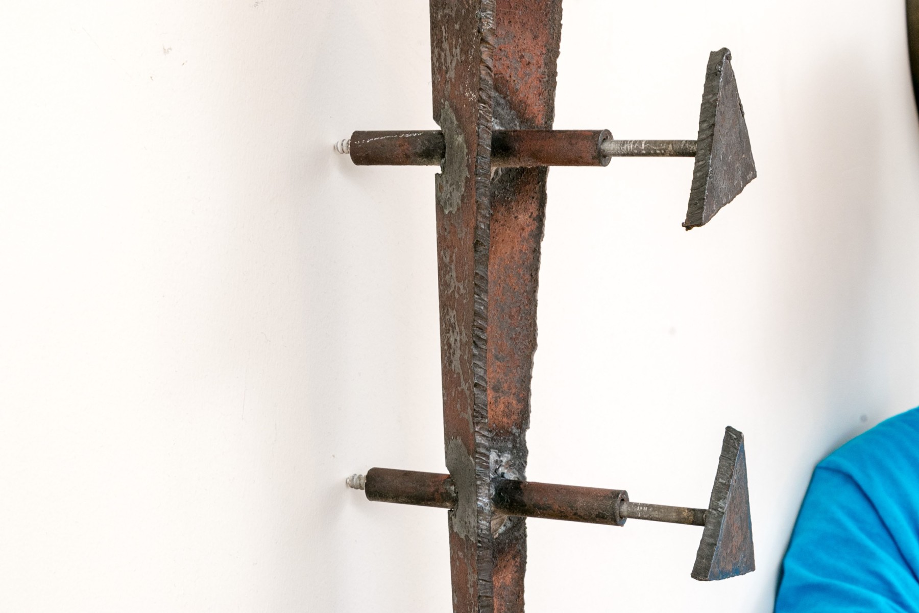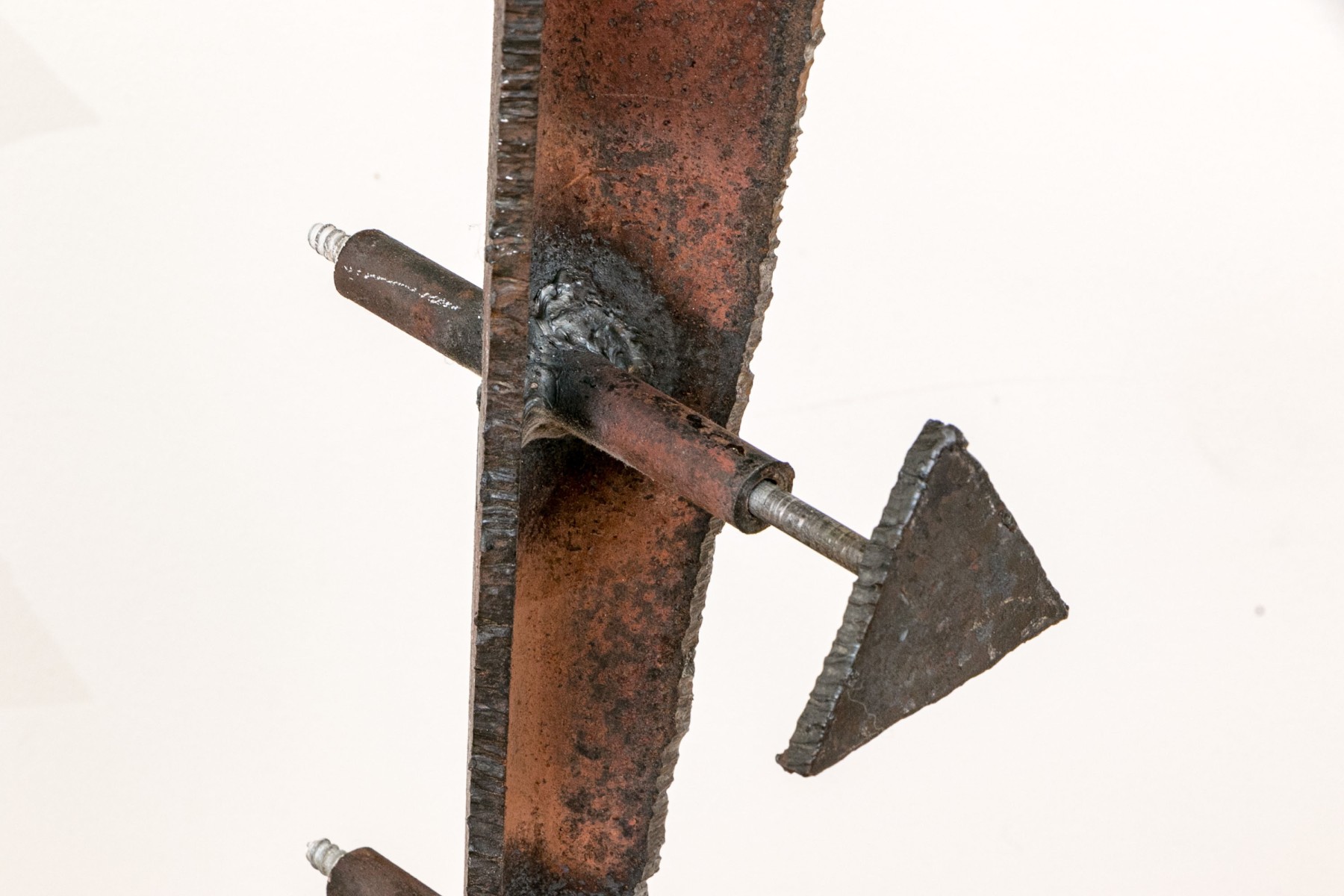 Presents well with Brutalist charm. Angular, iron features present strikingly and can be mounted in a variety of decorative manners.