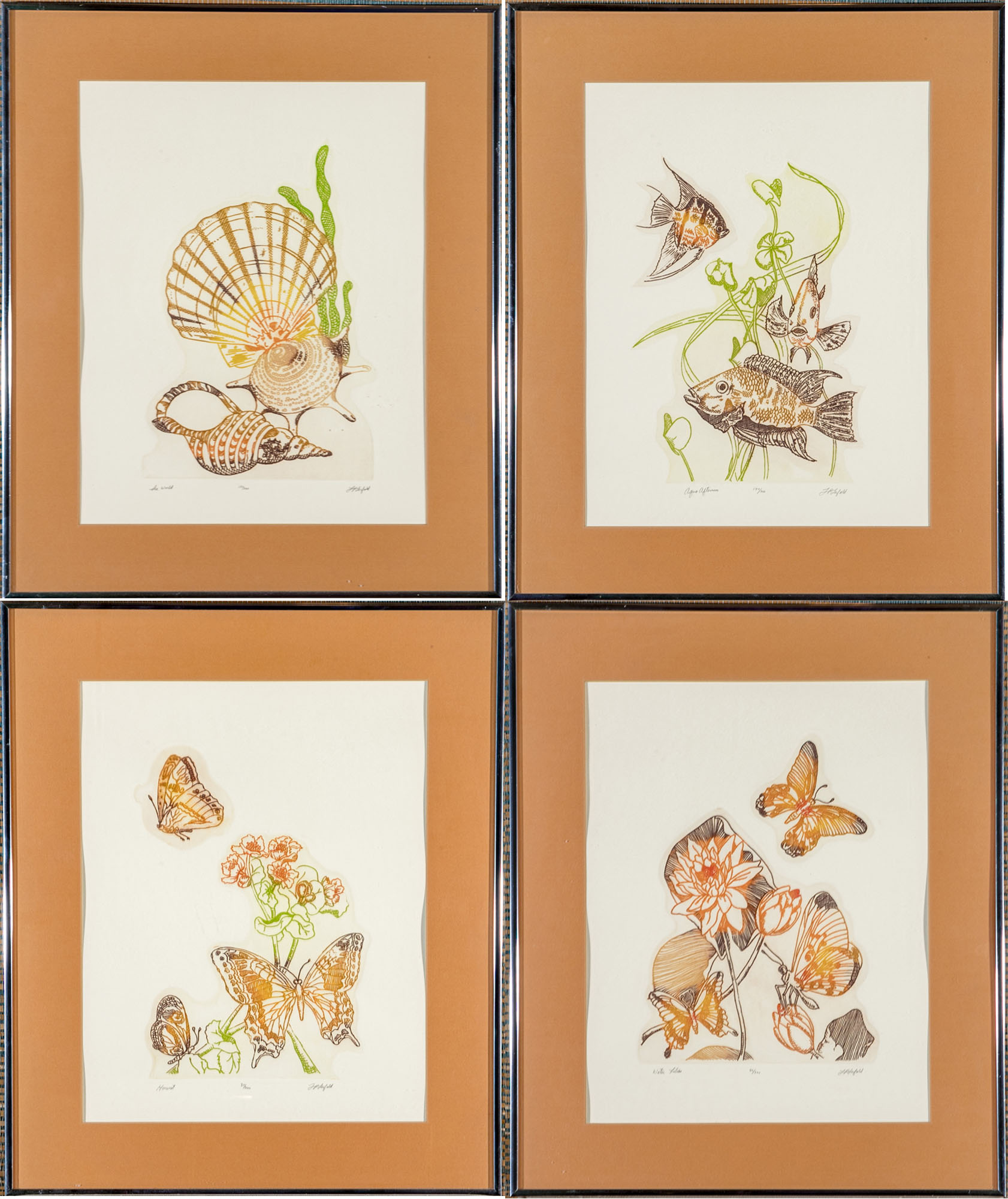 This group are four etchings with foliage, butterflies, fish. Following titles are included:
