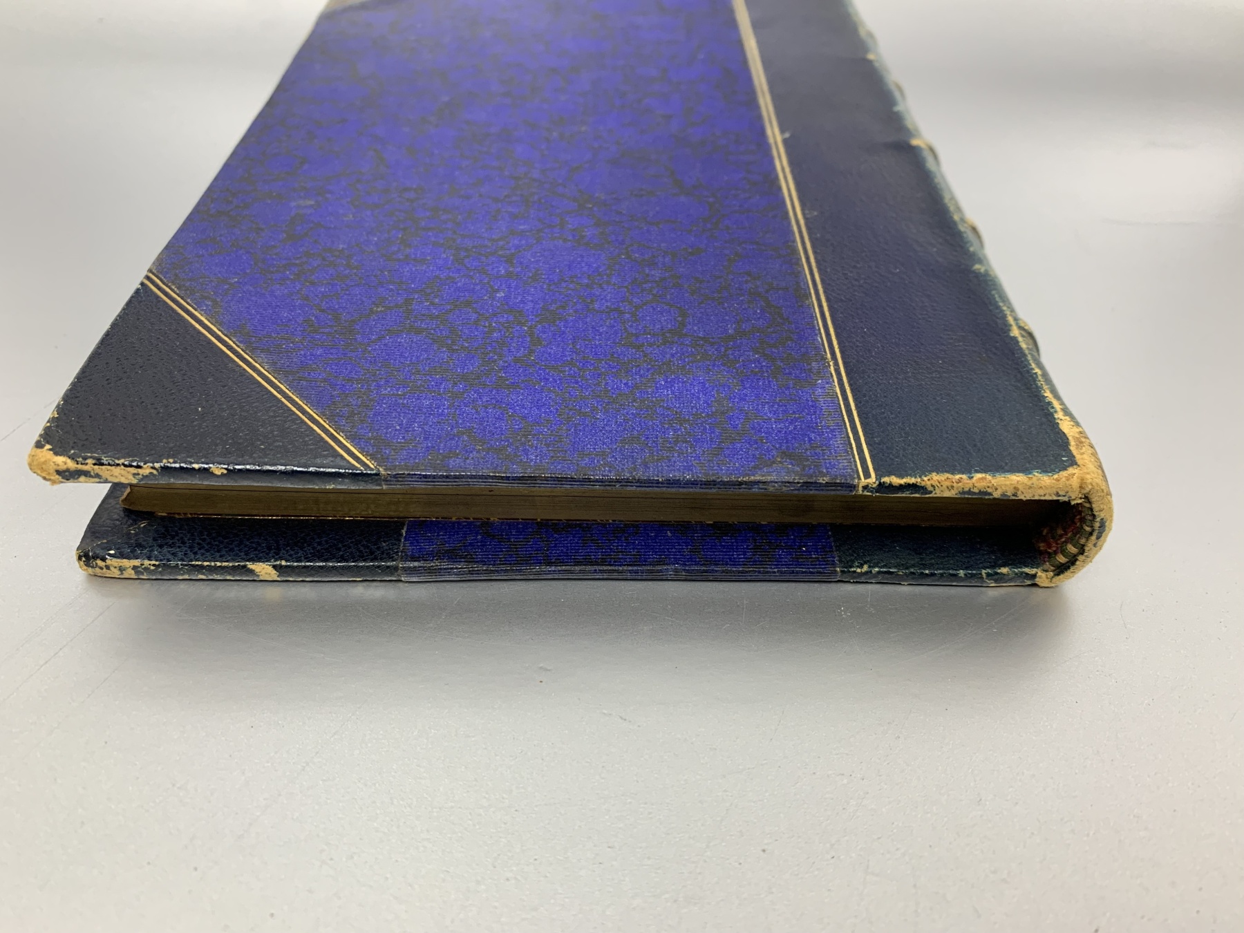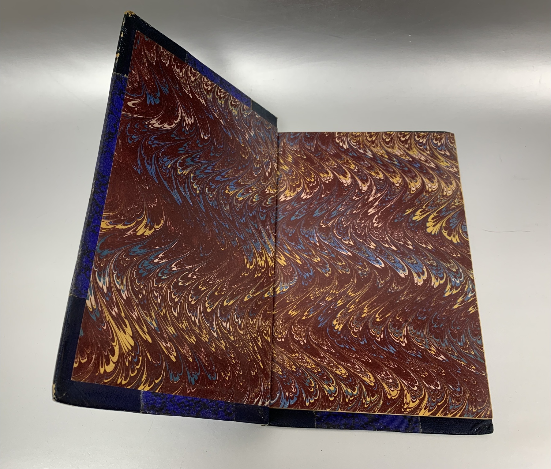 The book with later cover, blue leather, fabric panels, gilt decorations, marbled boards, illustrated in black and white, gilt margins, 200 pages.