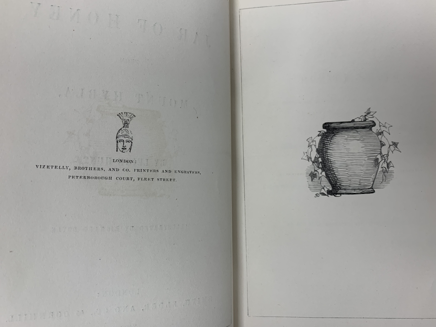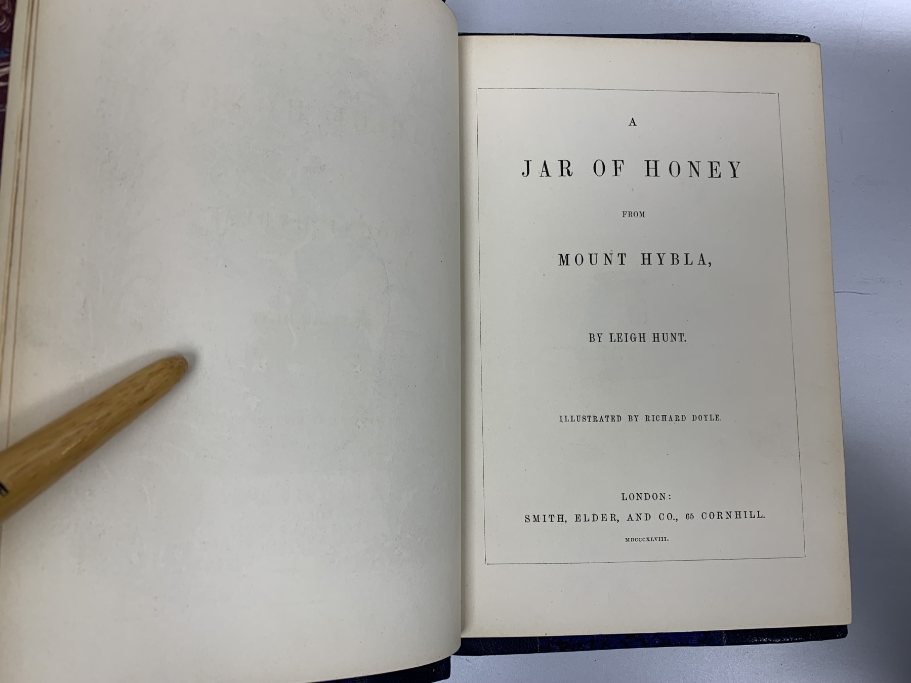 A Jar of Honey from Mount Hybla is an 1848 book by Leigh Hunt, published in London by Smith, Elder, and Co.. It is a collection of essays and stories exploring the pastoral poetry, history, and legends of Sicily, illustrated with wood engravings by Richard Doyle and designed by Owen Jones.