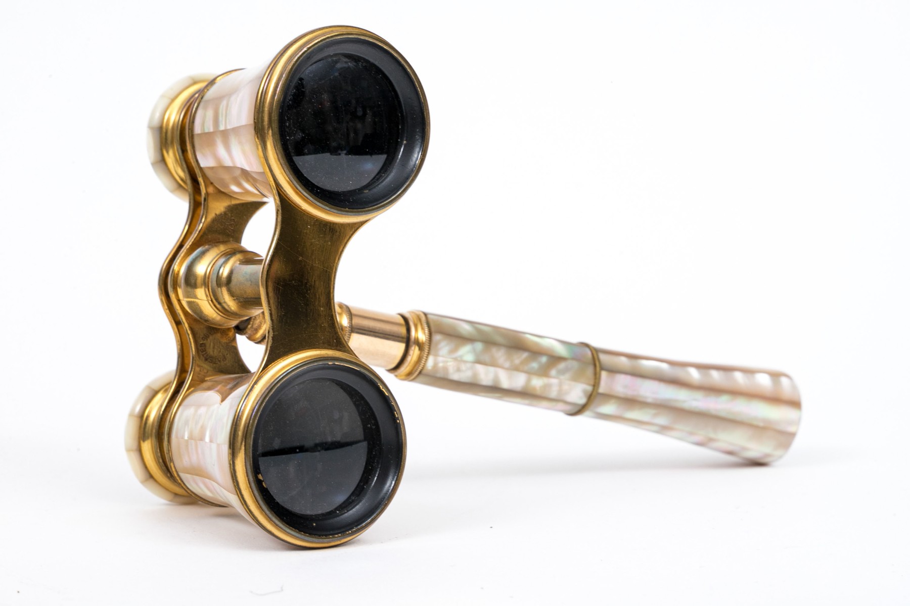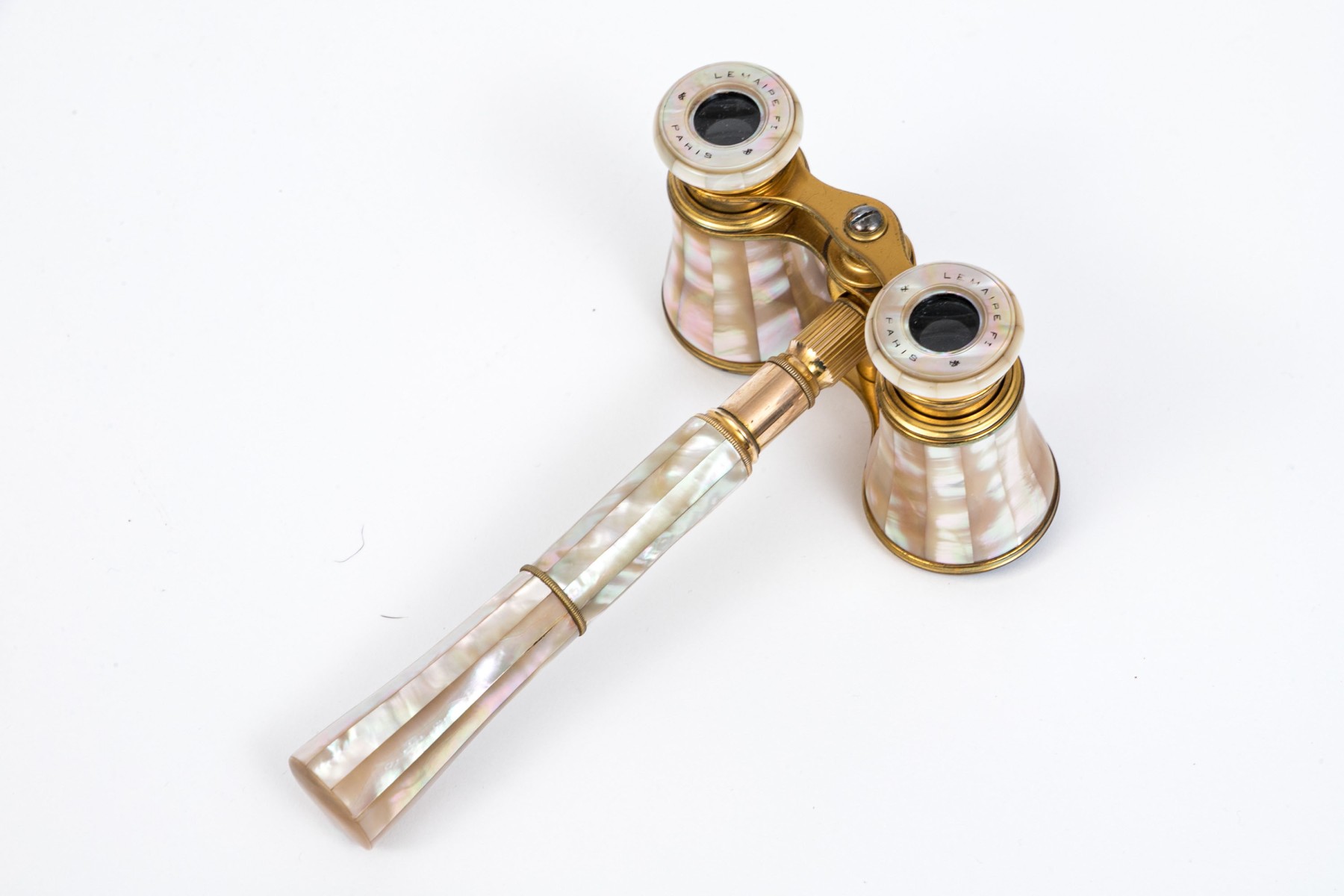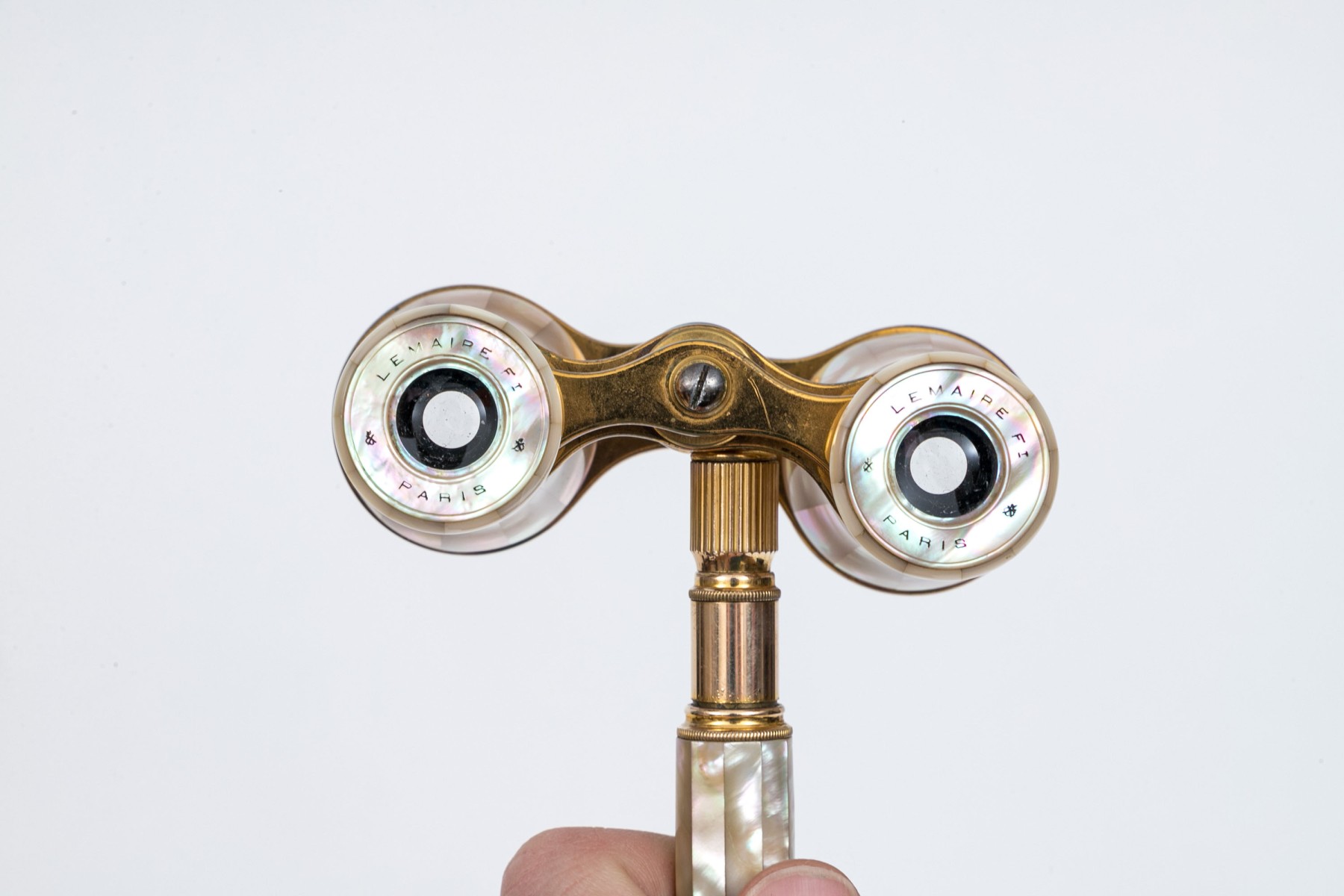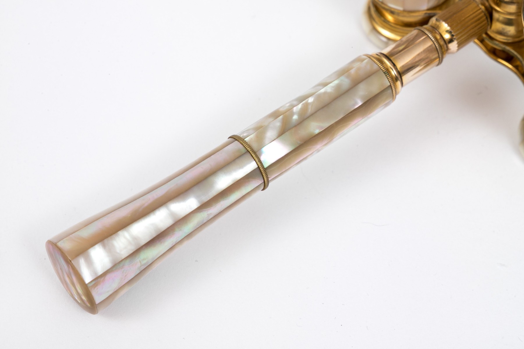 Lemaire Fi, Paris beautiful vintage long handle mother-of-pearl opera glasses