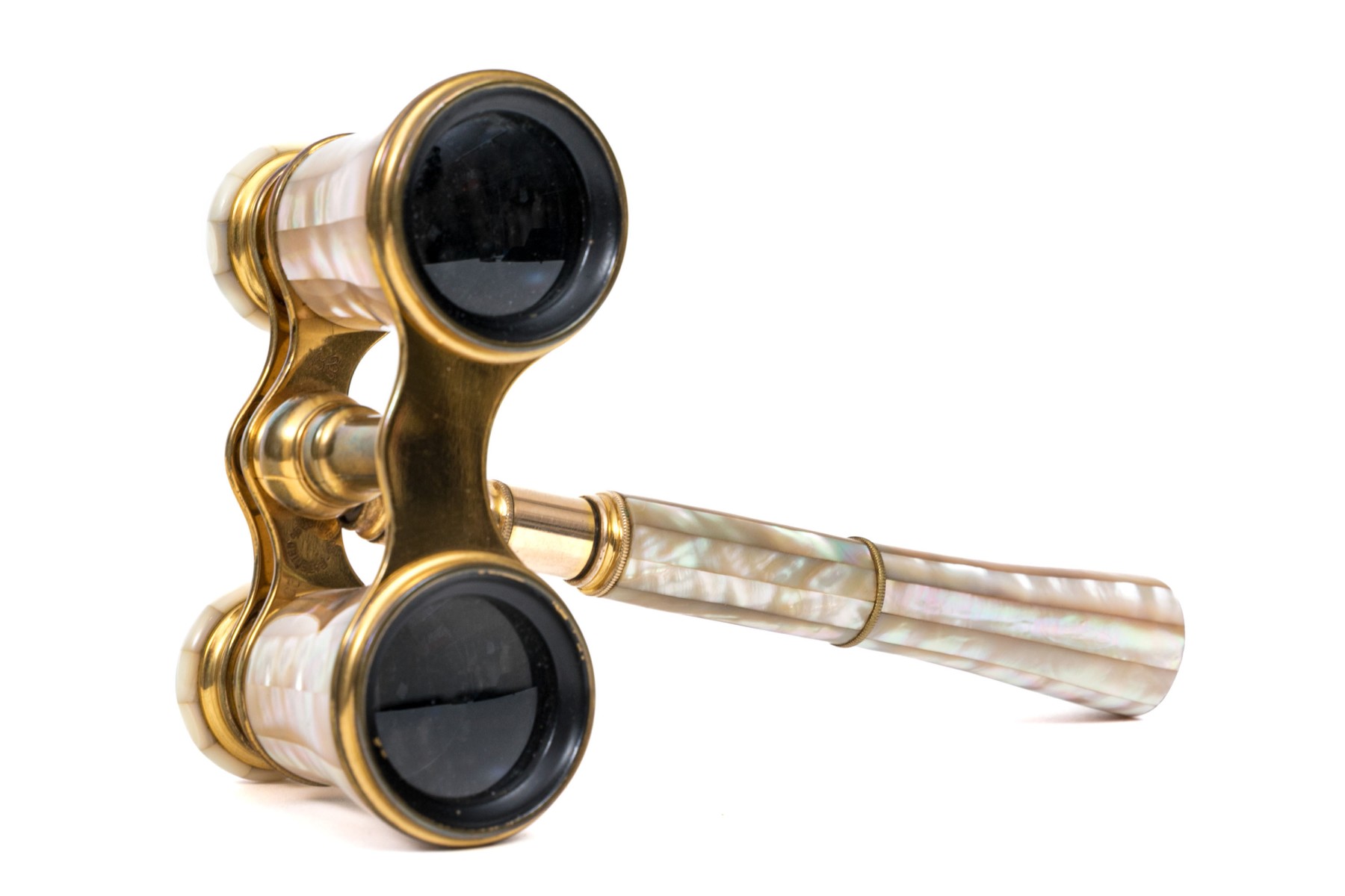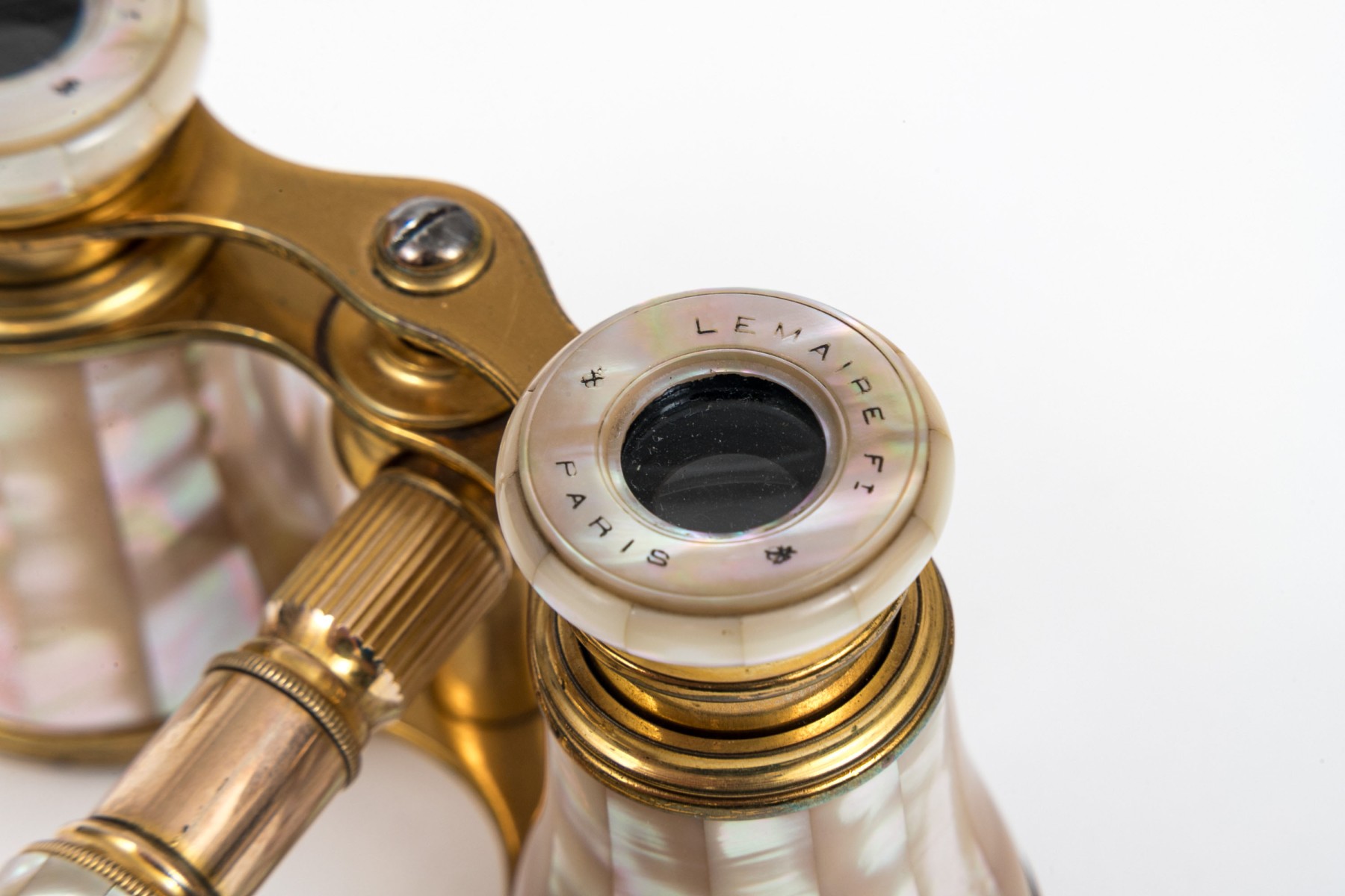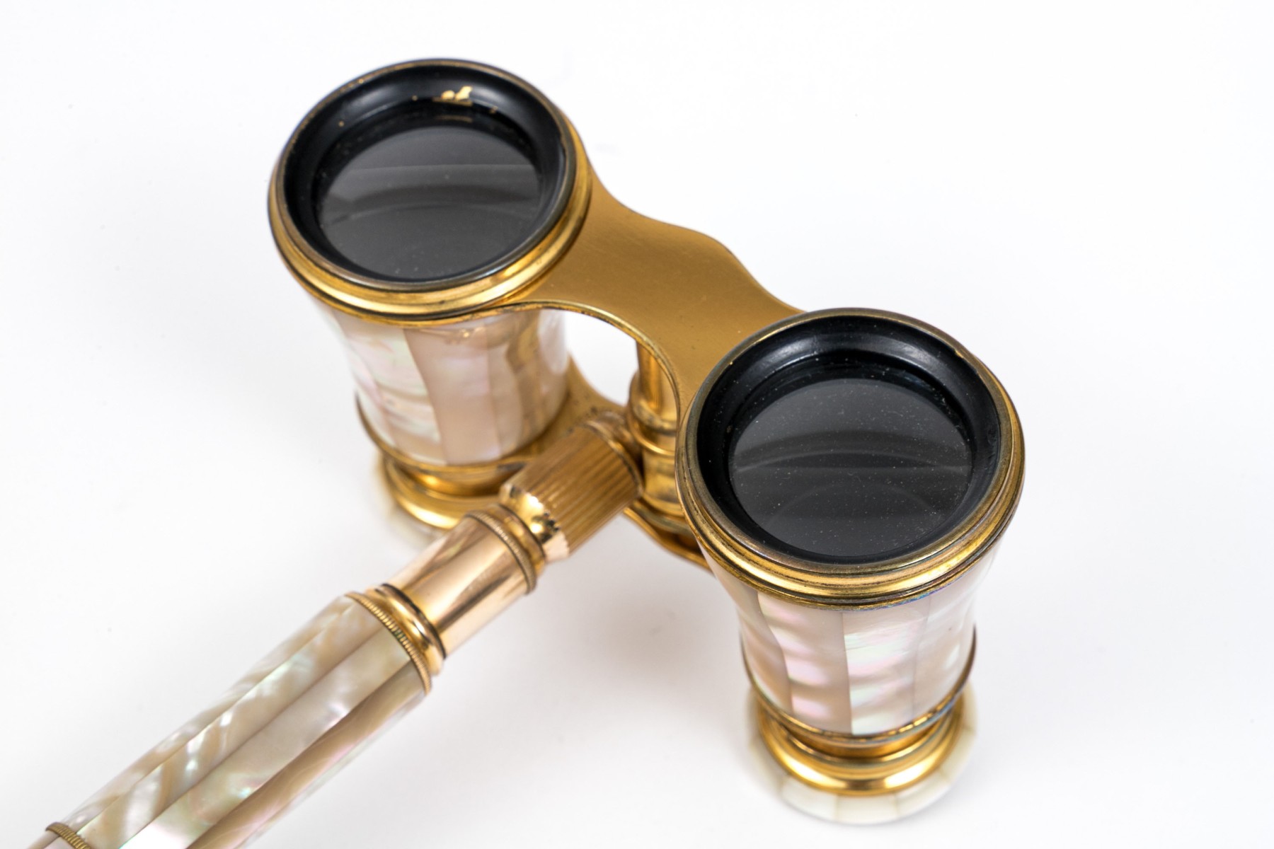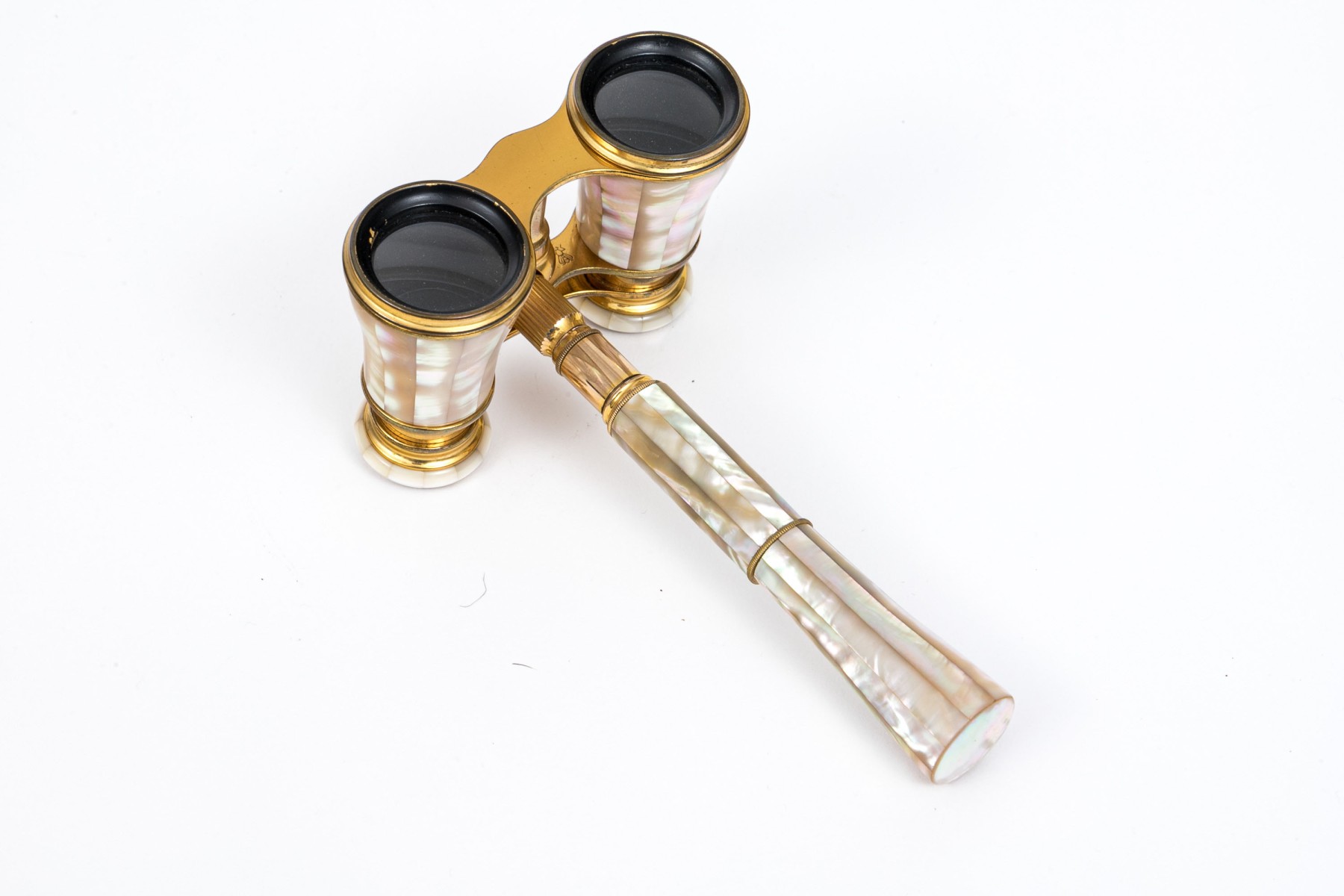 Lemaire Fi, Paris beautiful vintage long handle mother-of-pearl opera glasses
