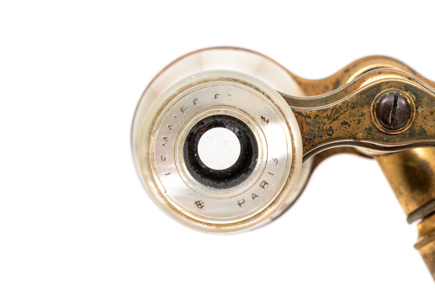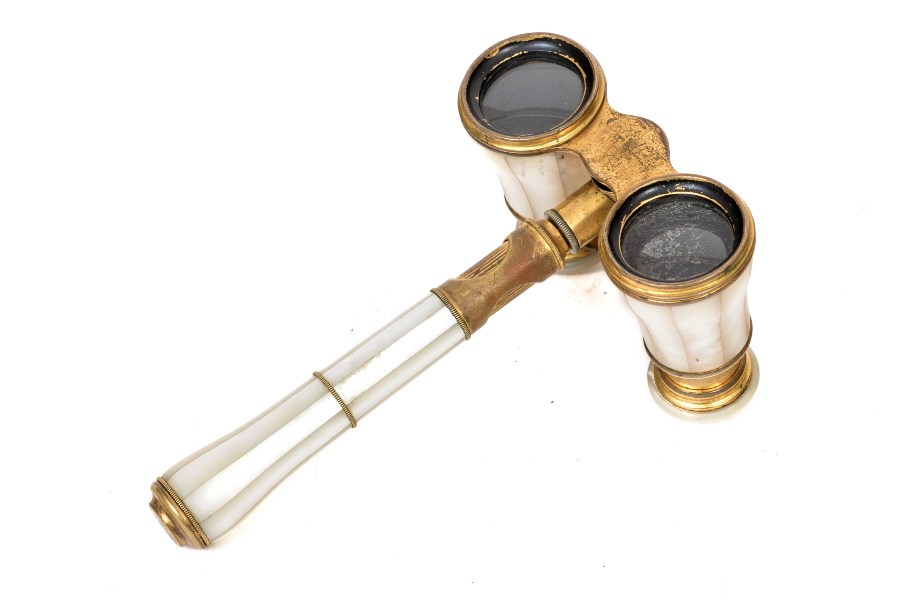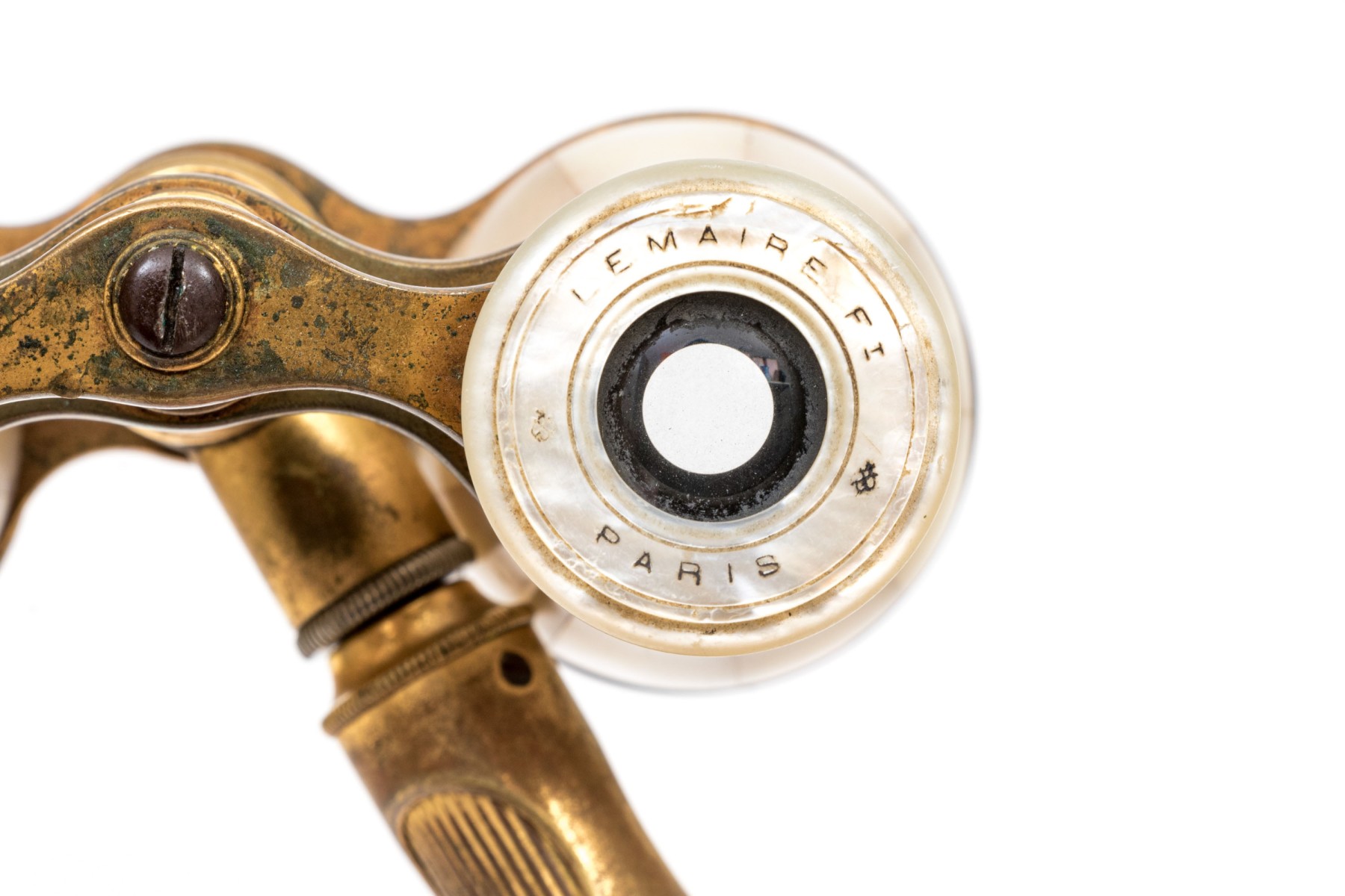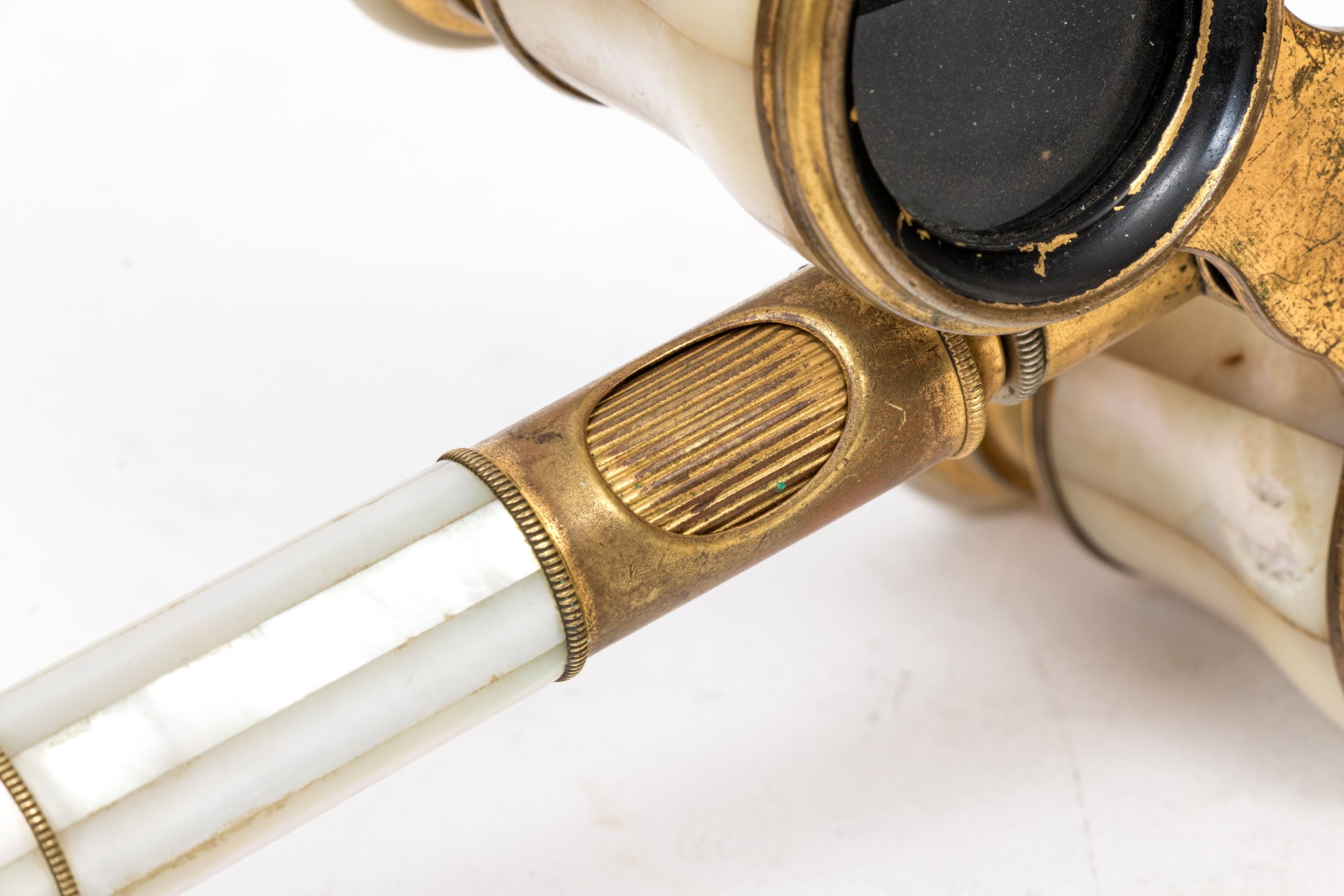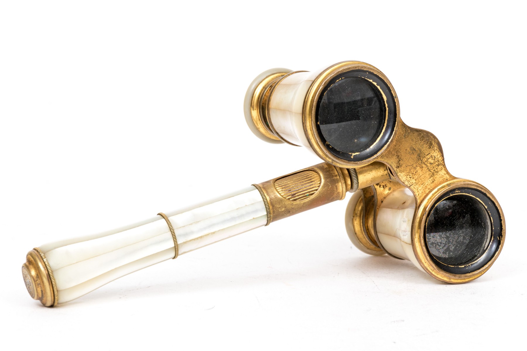 Lemaire Fi, Paris lovely vintage long handle mother-of-pearl opera glasses