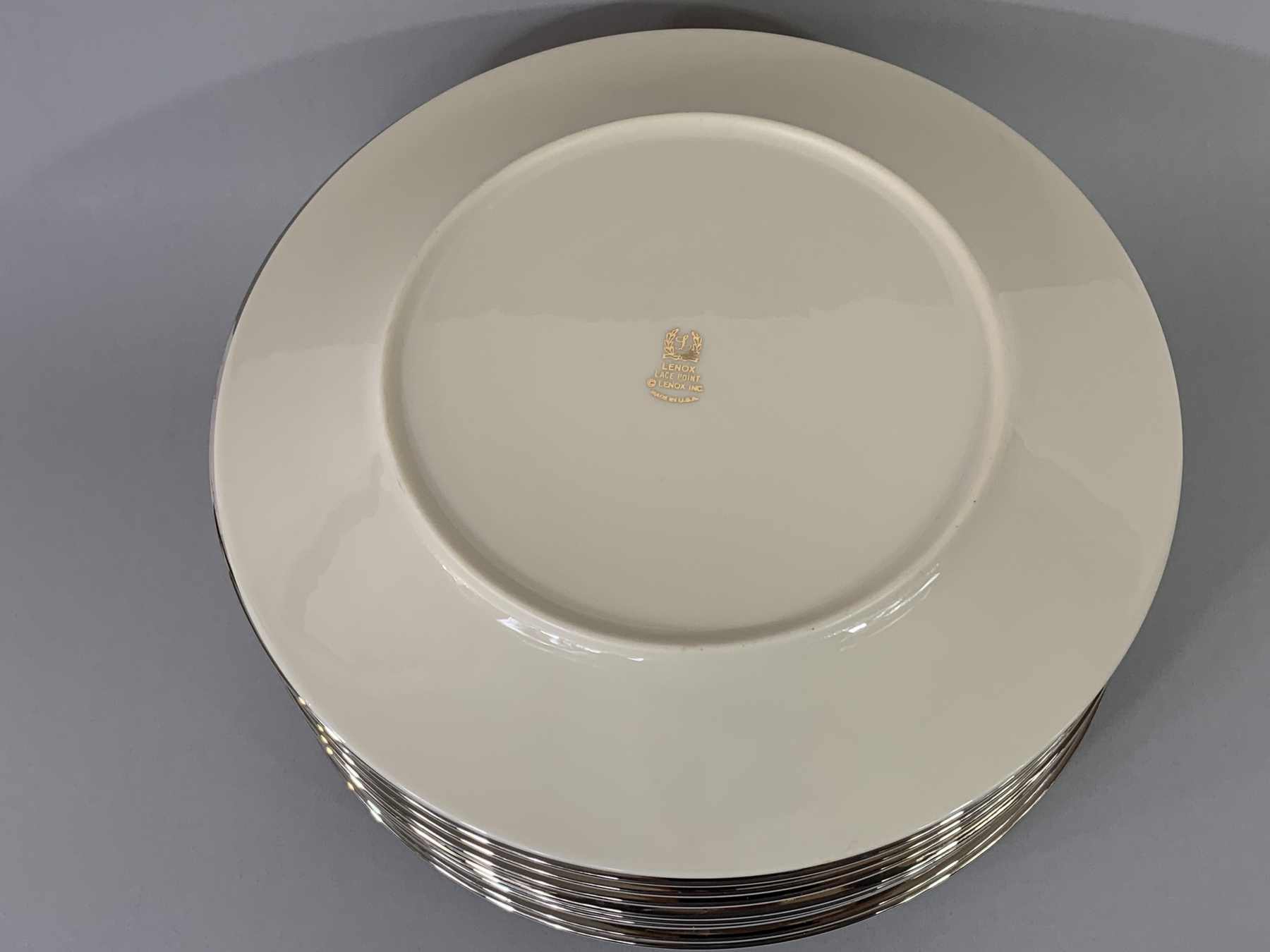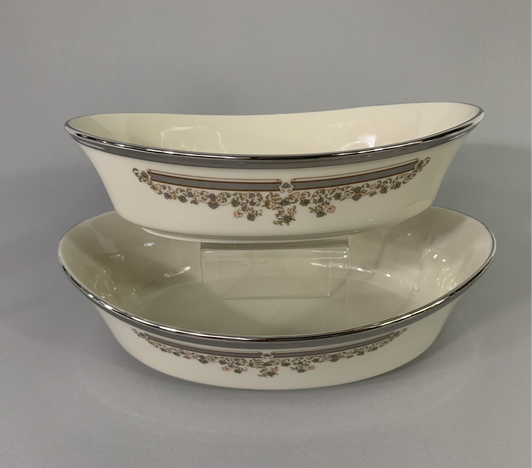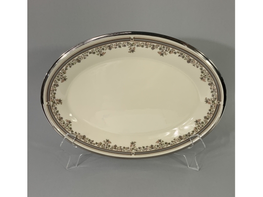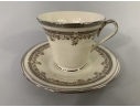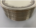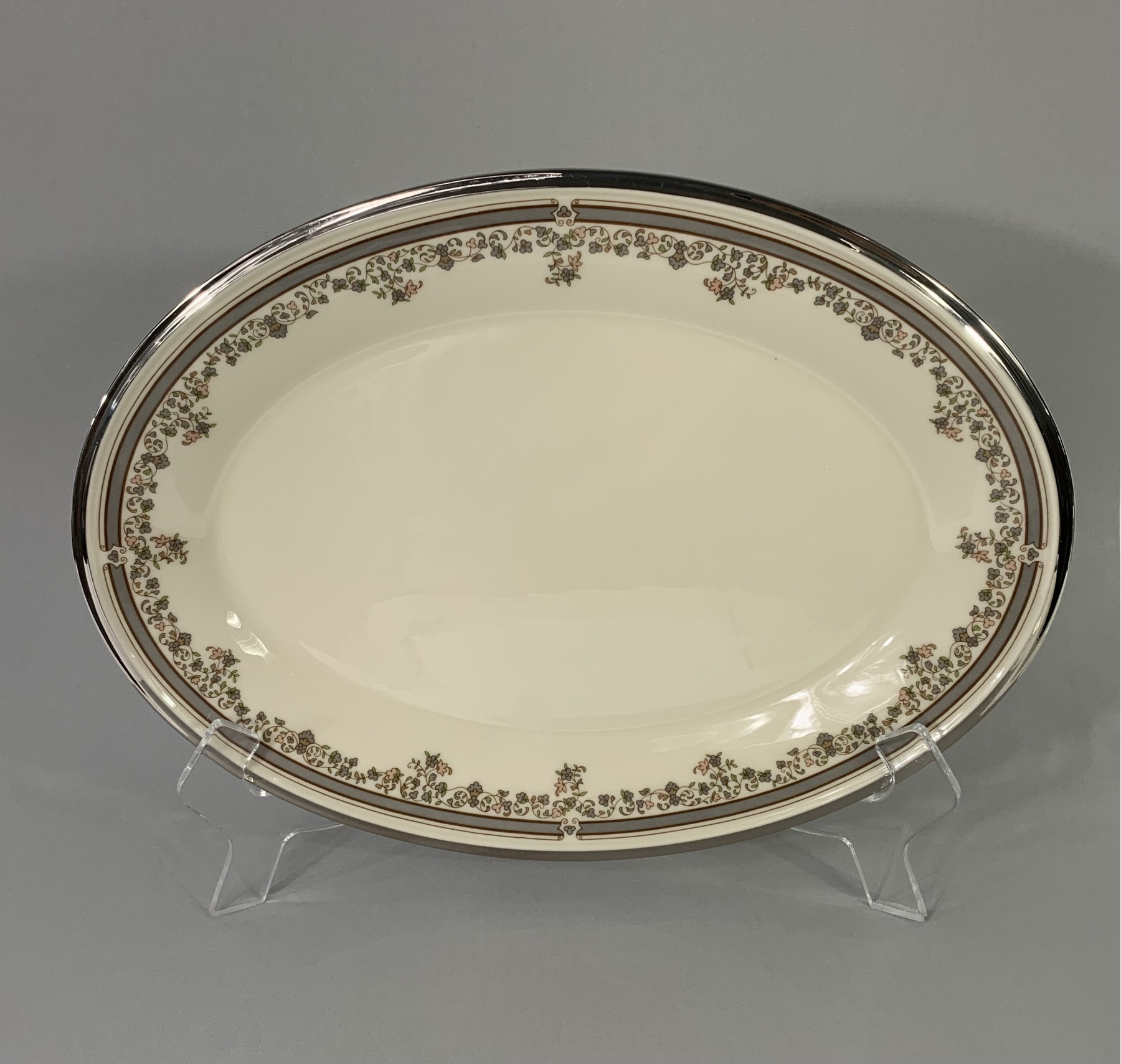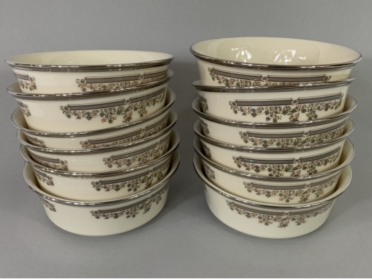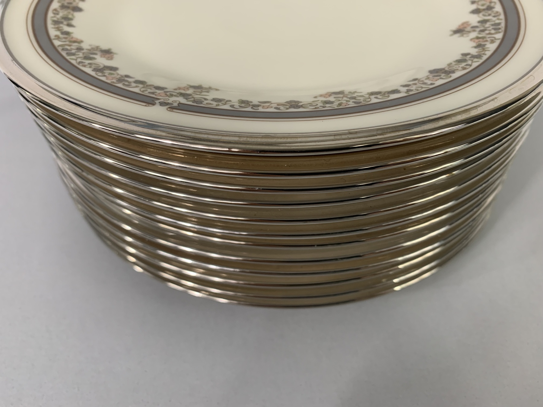 Lenox fine china Lace Point pattern dinnerware with gray & pink flowers, gray band, and platinum trim. Produced by Lenox from 1978 - 1992. Included in this service are: