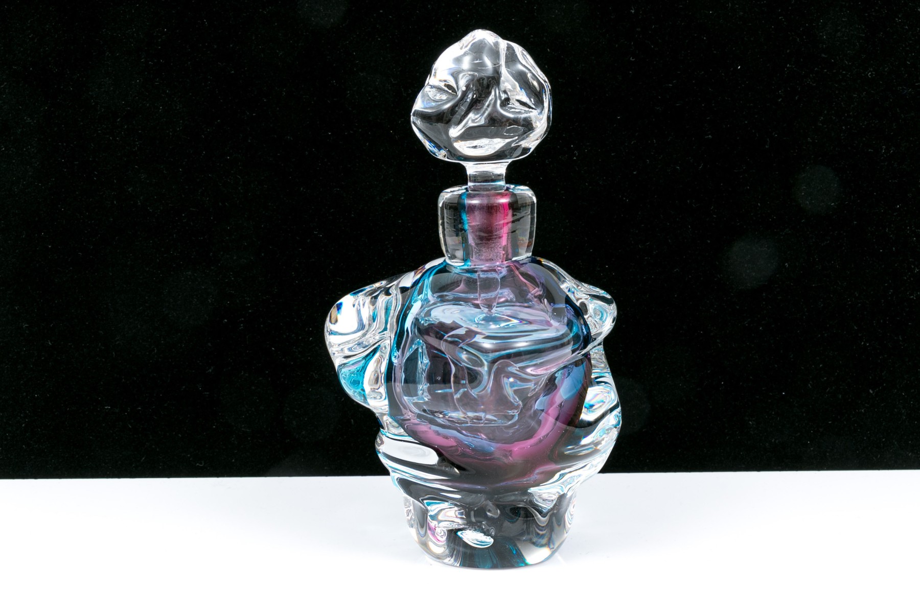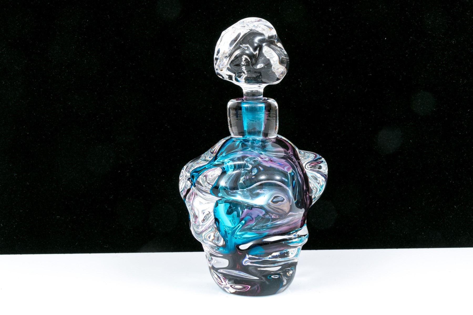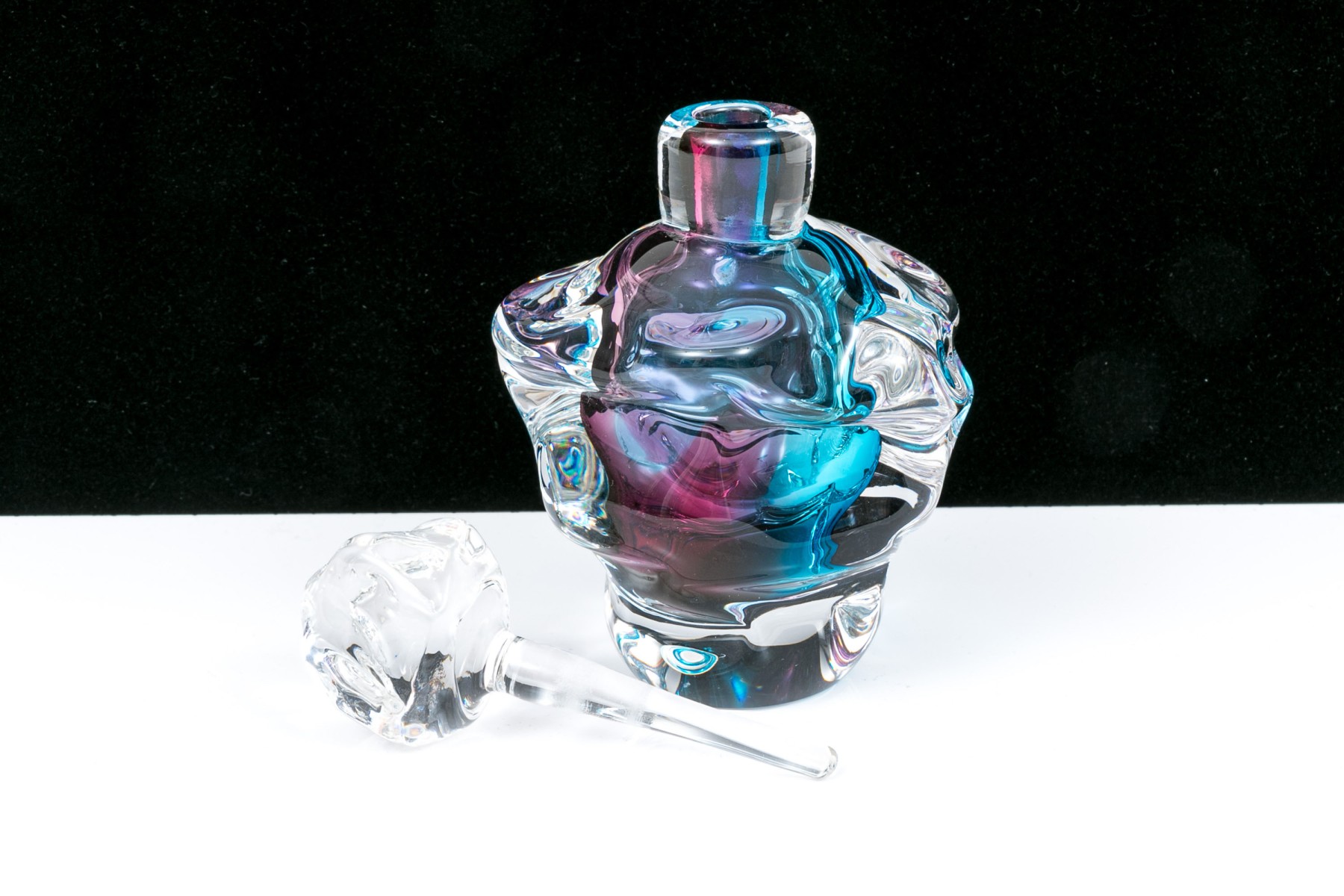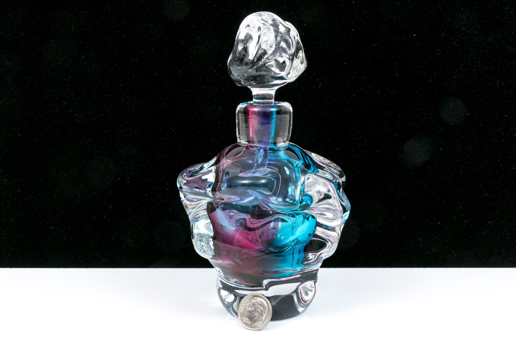 Leon Applebaum stunning art glass perfume bottle, blue and purple tones