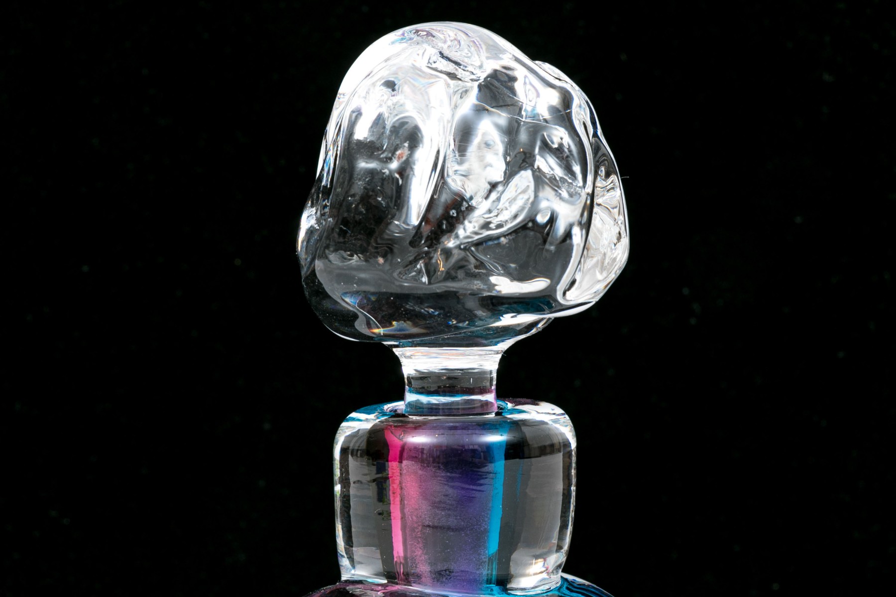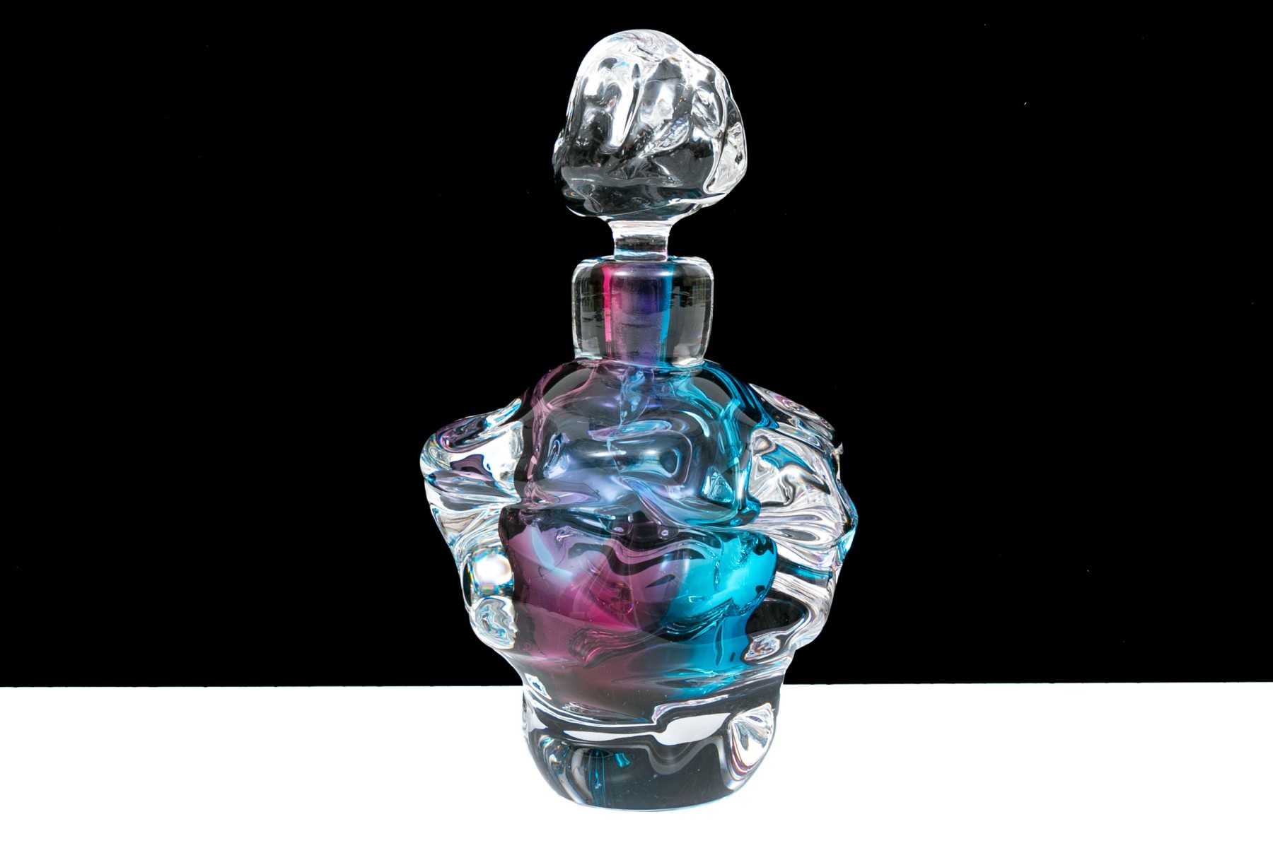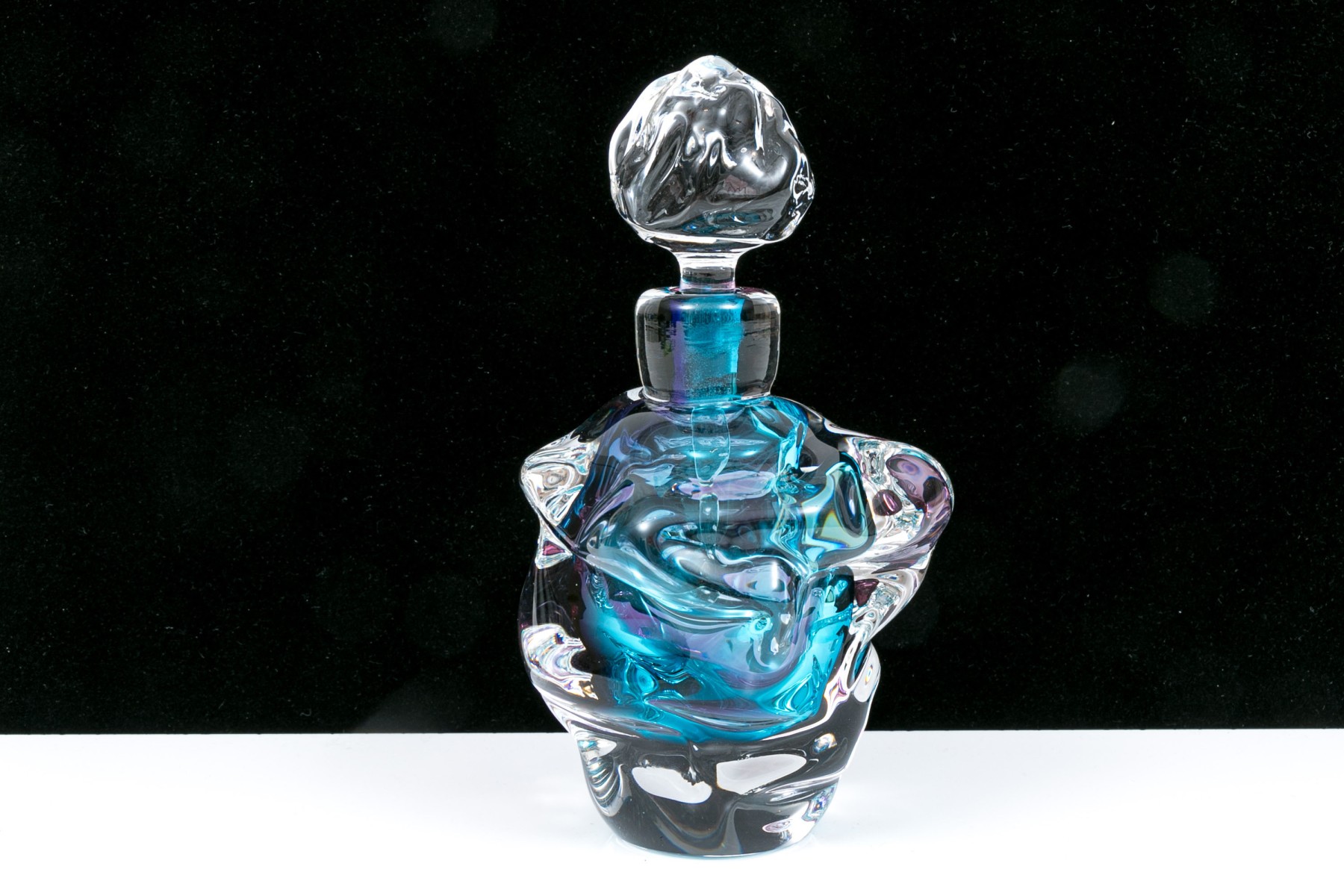 Leon Applebaum stunning art glass perfume bottle, blue and purple tones