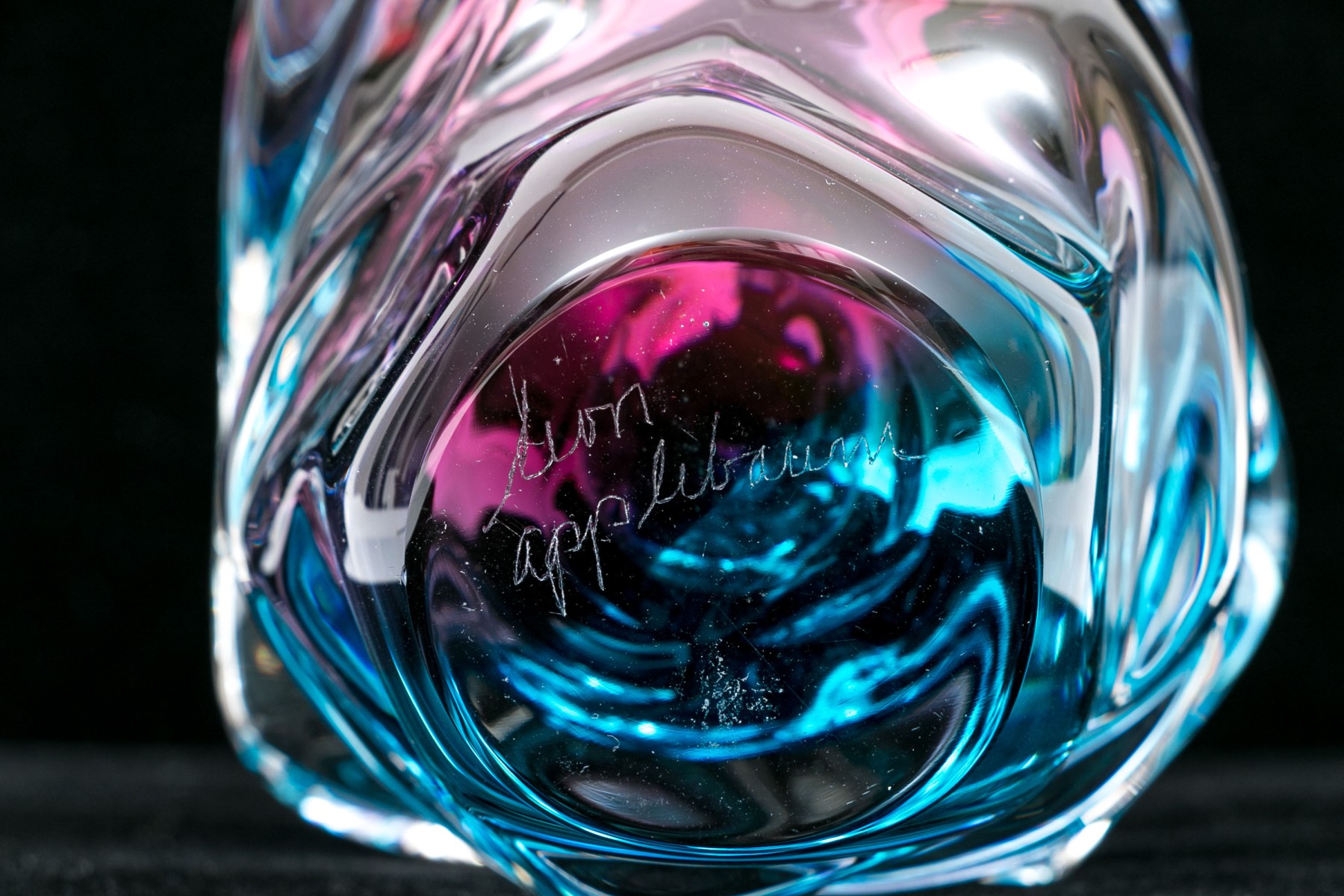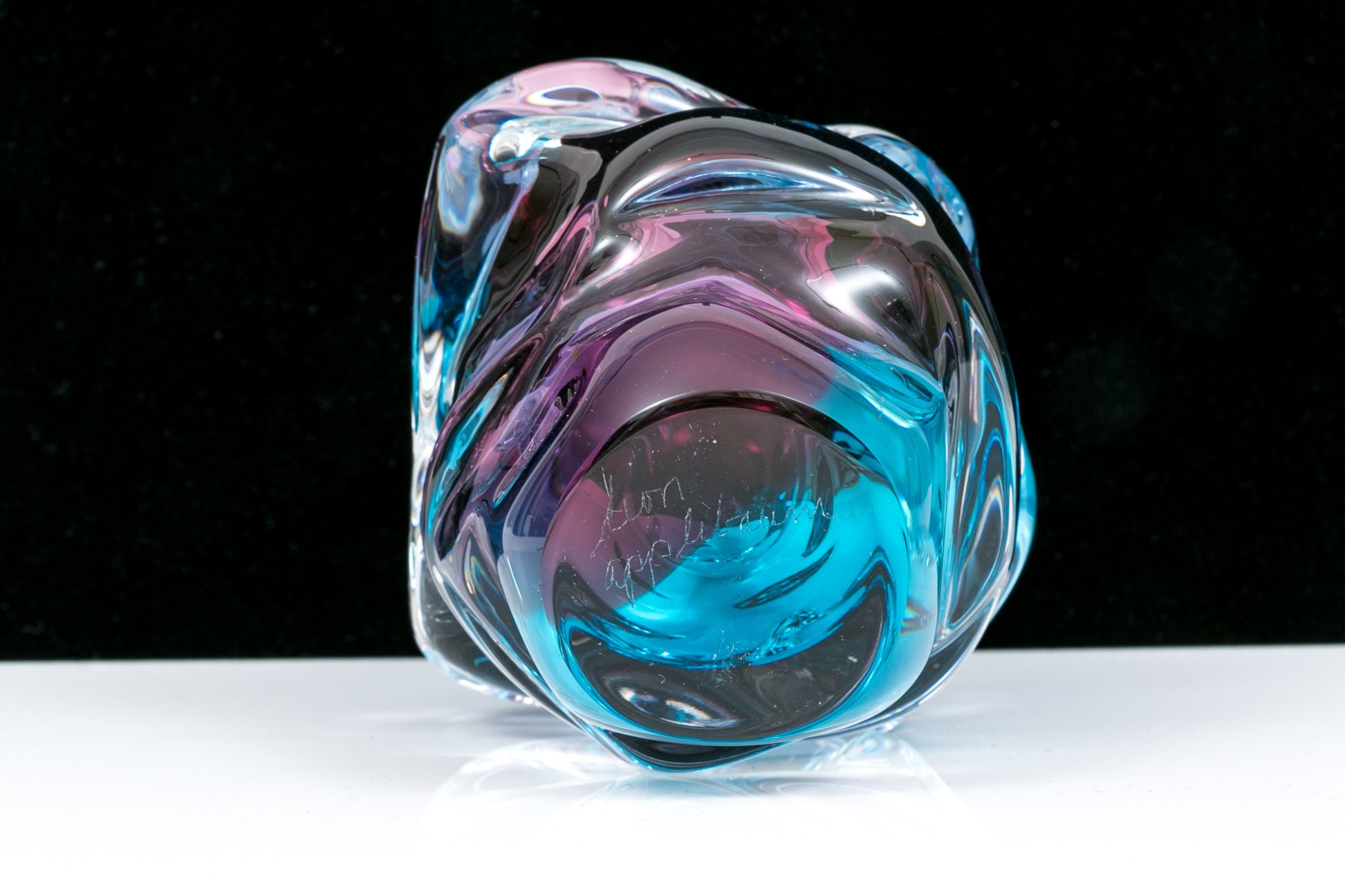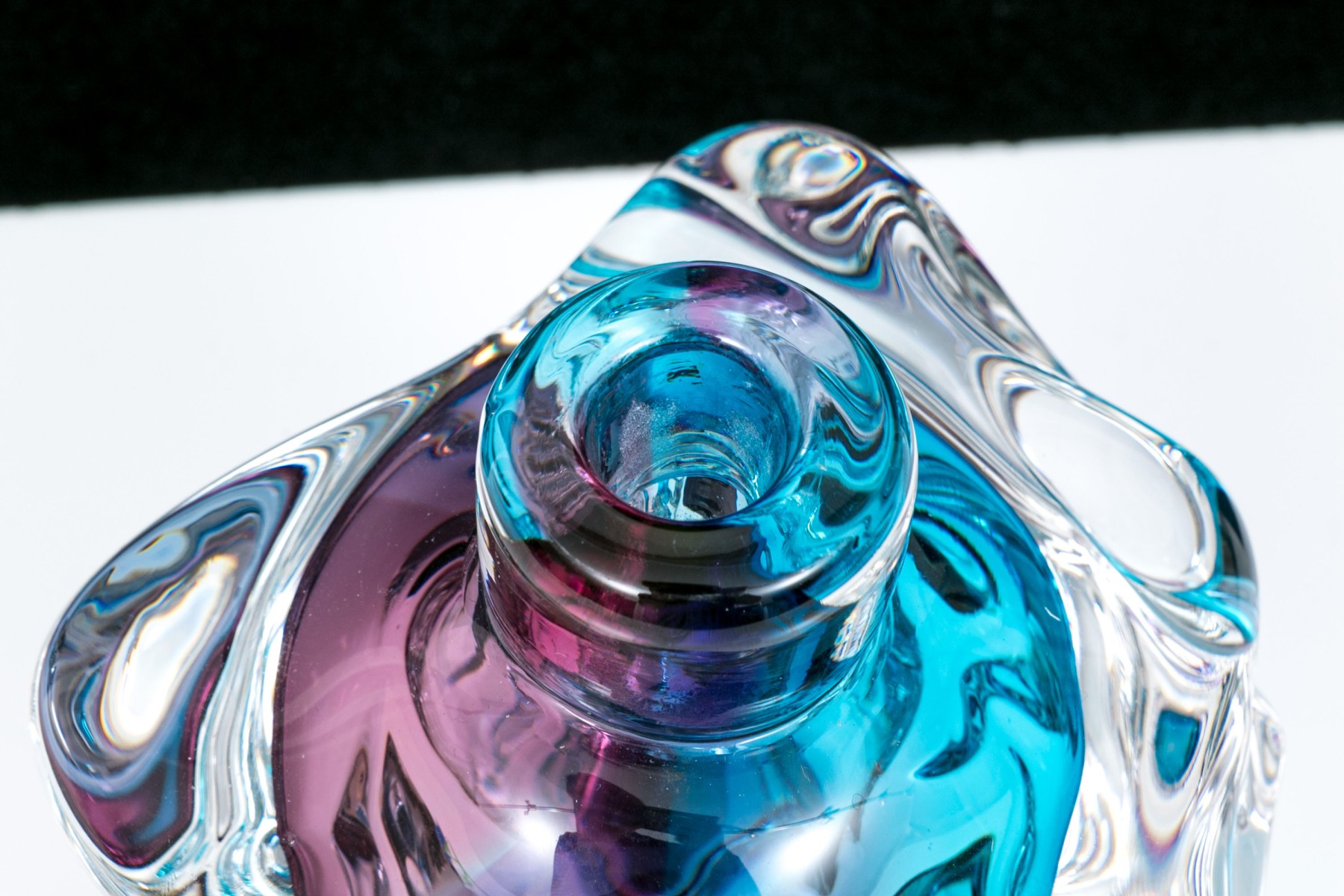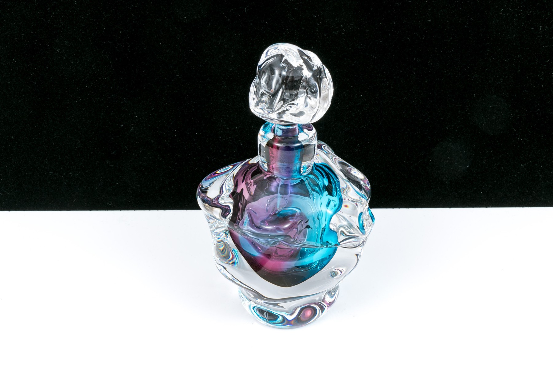 Leon Applebaum stunning art glass perfume bottle, blue and purple tones