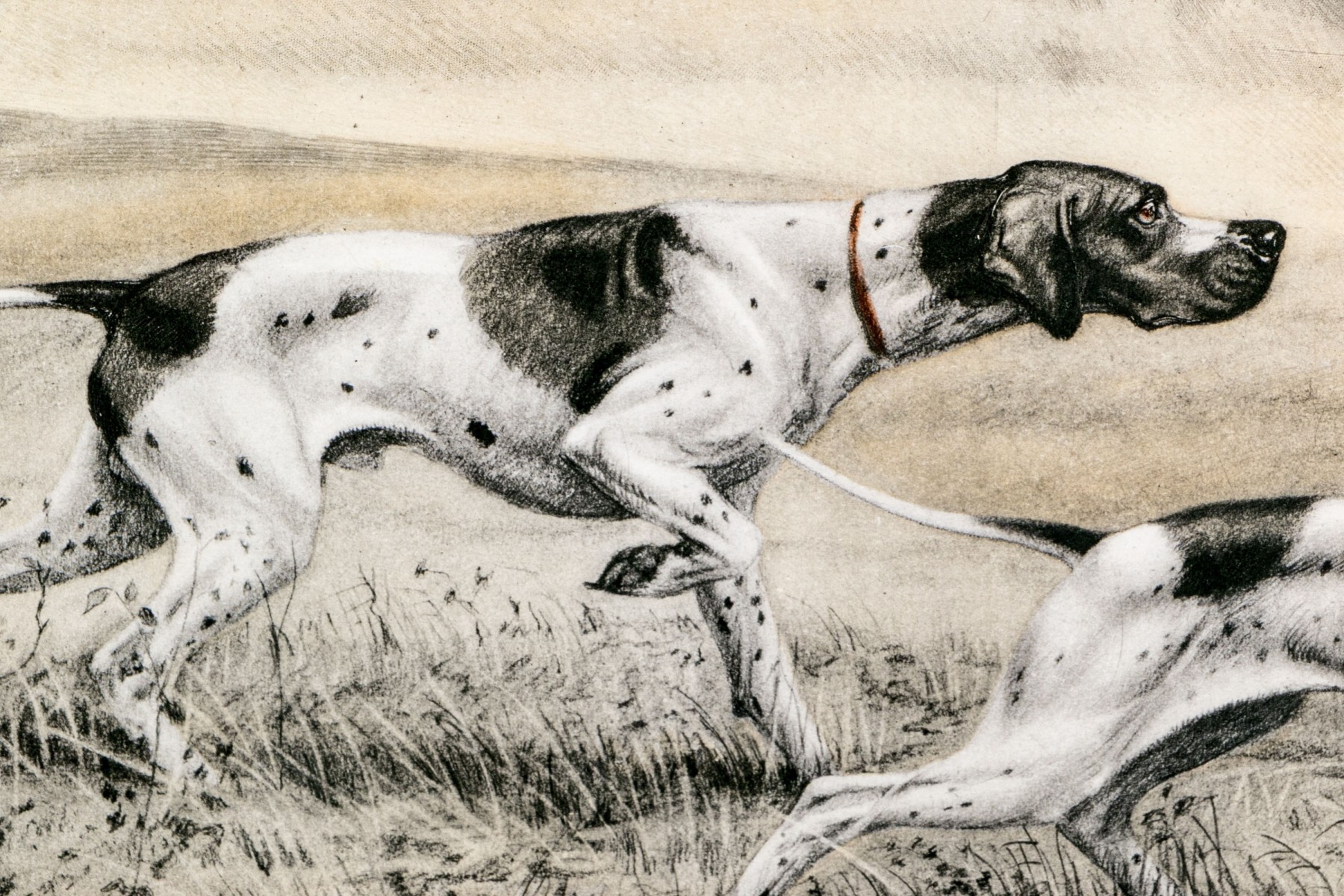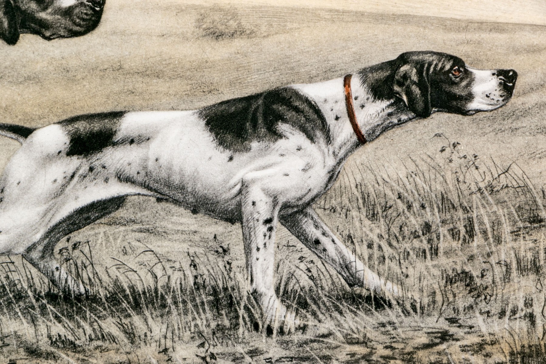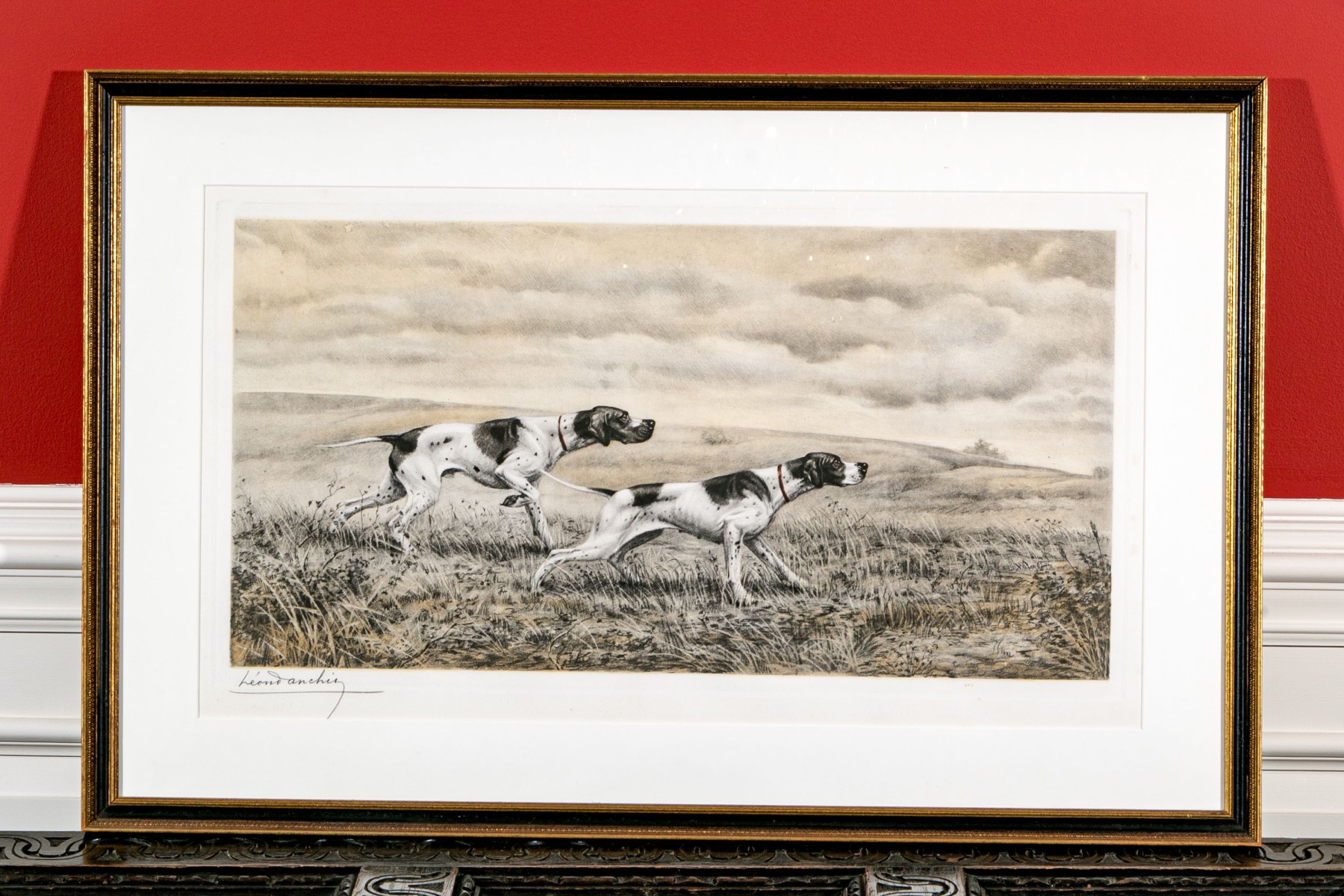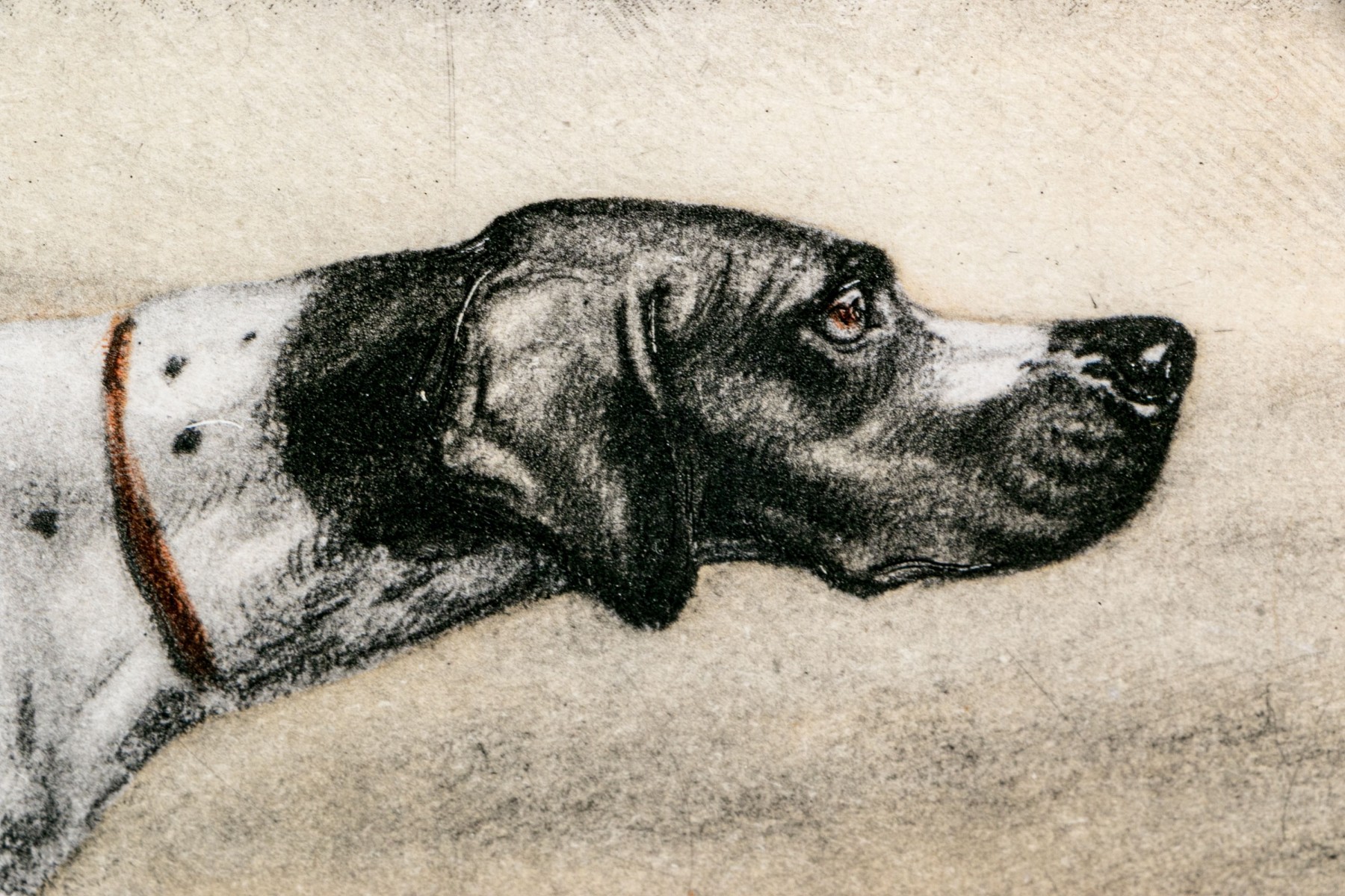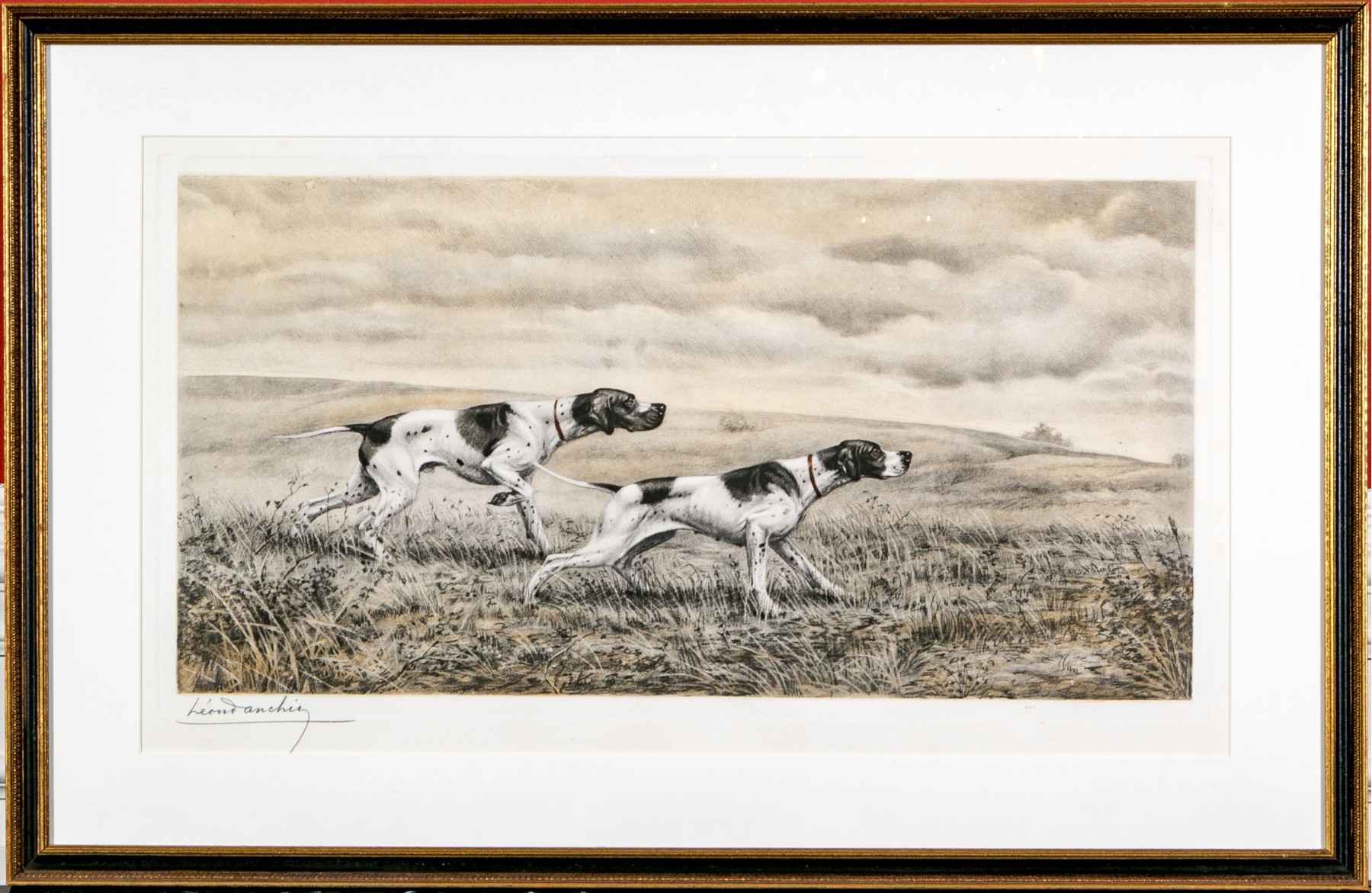 Leon Danchin (French, 1887-1938) Etching and aquatint in color print, Sporting Dogs