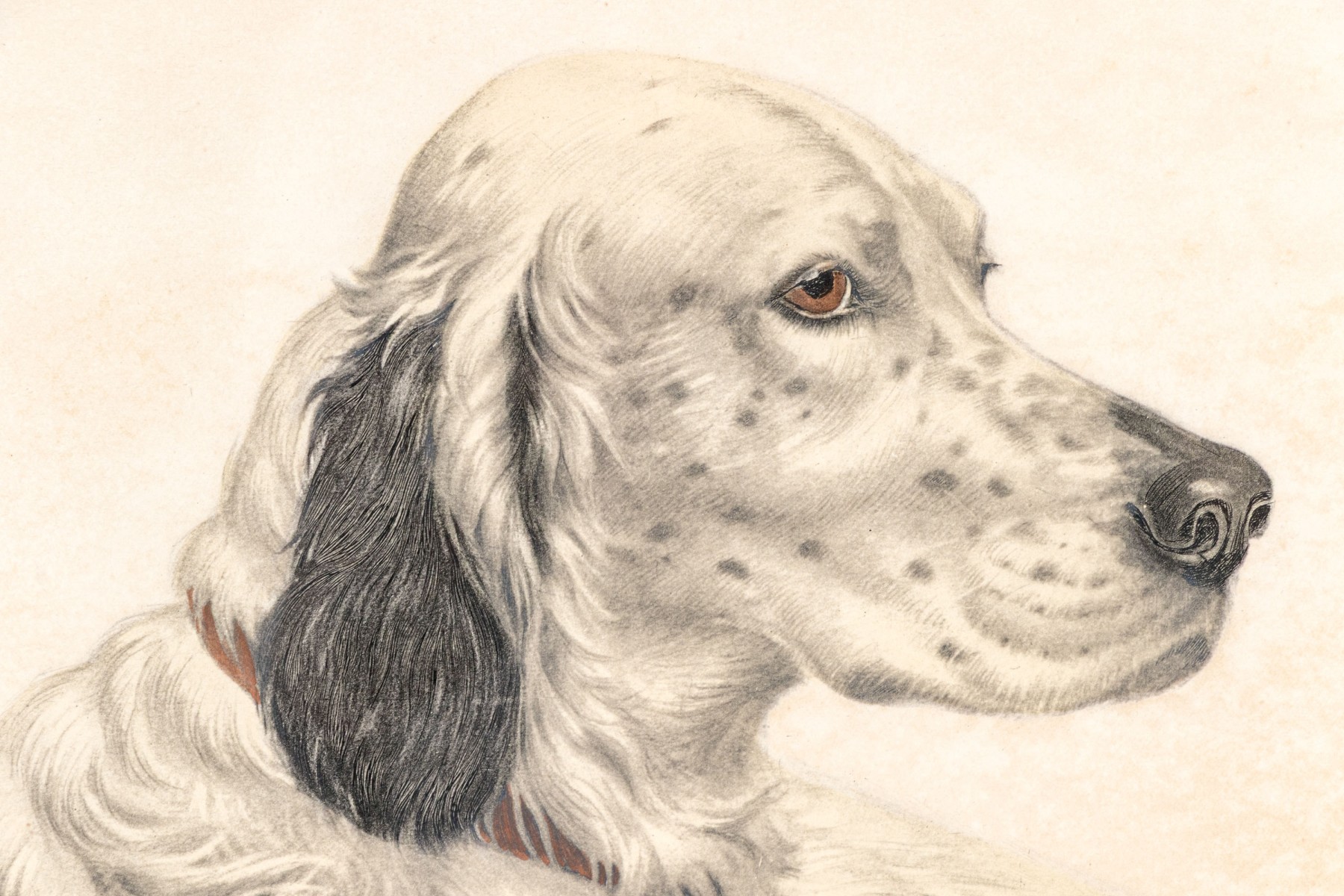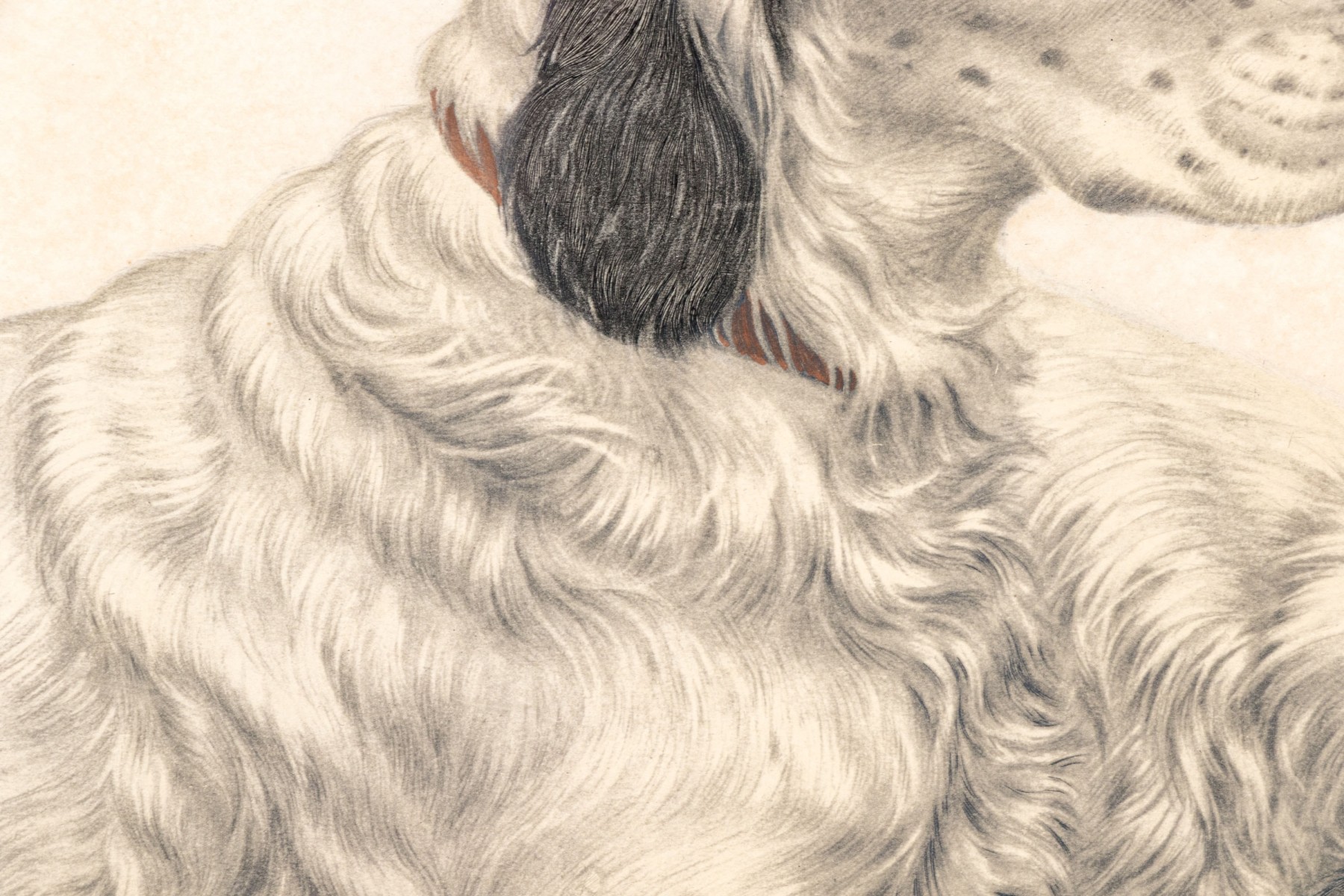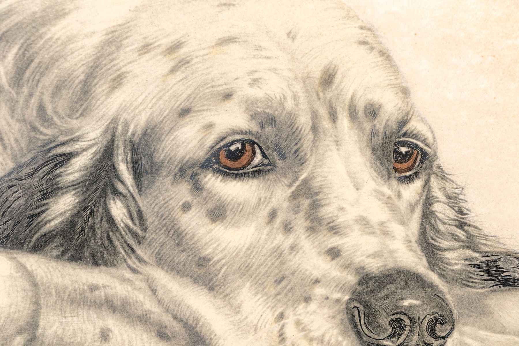 Slight foxing with some toning and gentle spotting above the reclined dogs. Despite gentle wear the print presents handsomely.