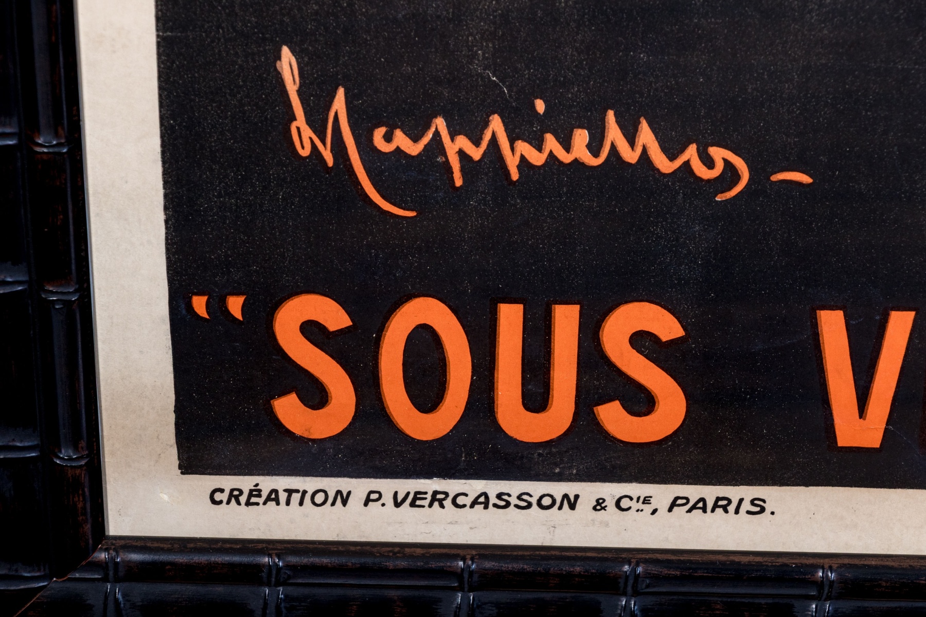 Presented in a high end custom ebonized frame behind glaze.