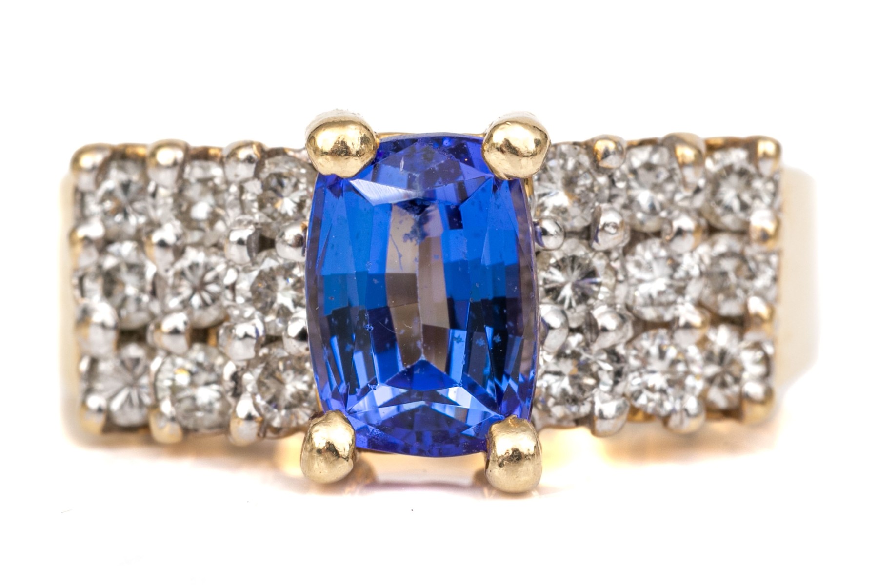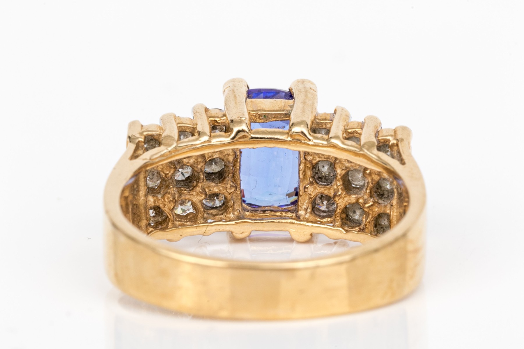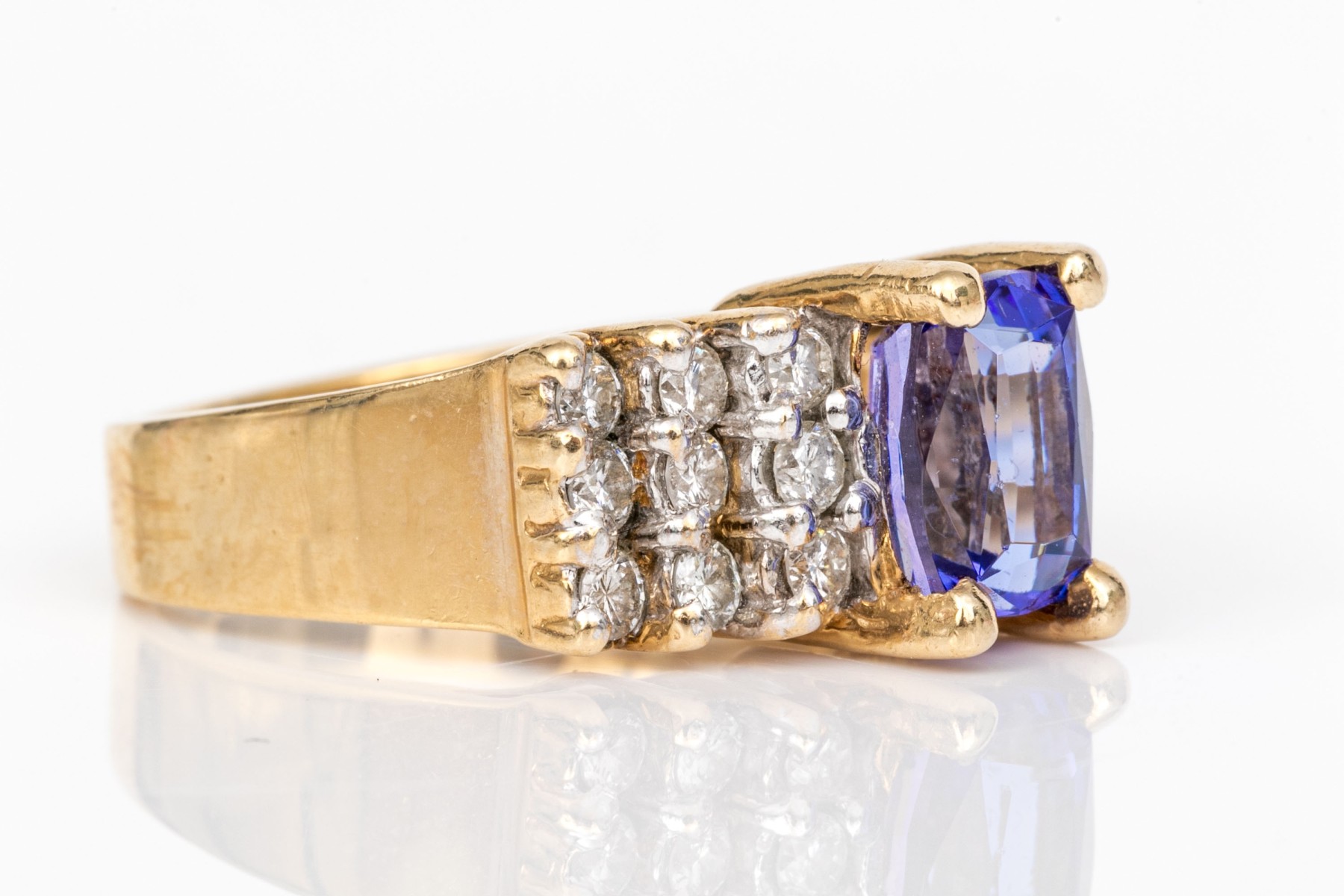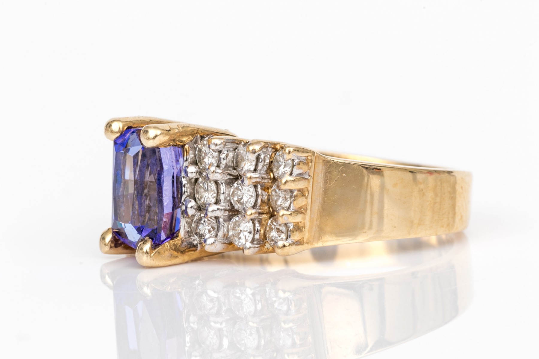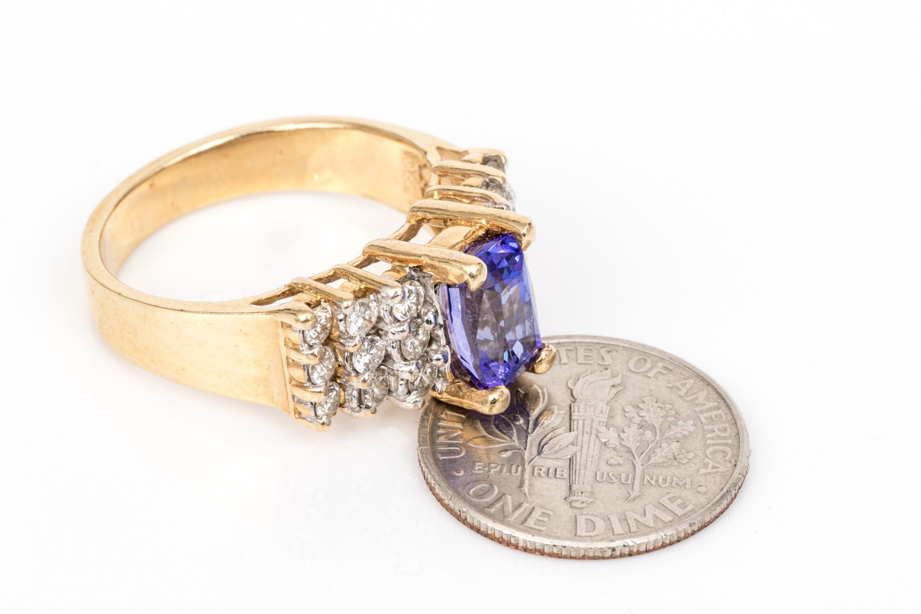 Levian 14k yellow gold tanzanite and diamond cluster ring, app. 0.54 TCW in diamonds, size 7.75