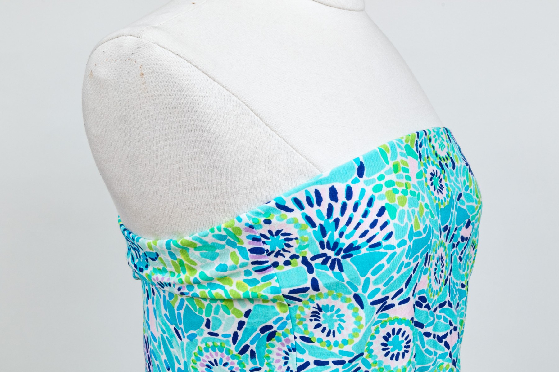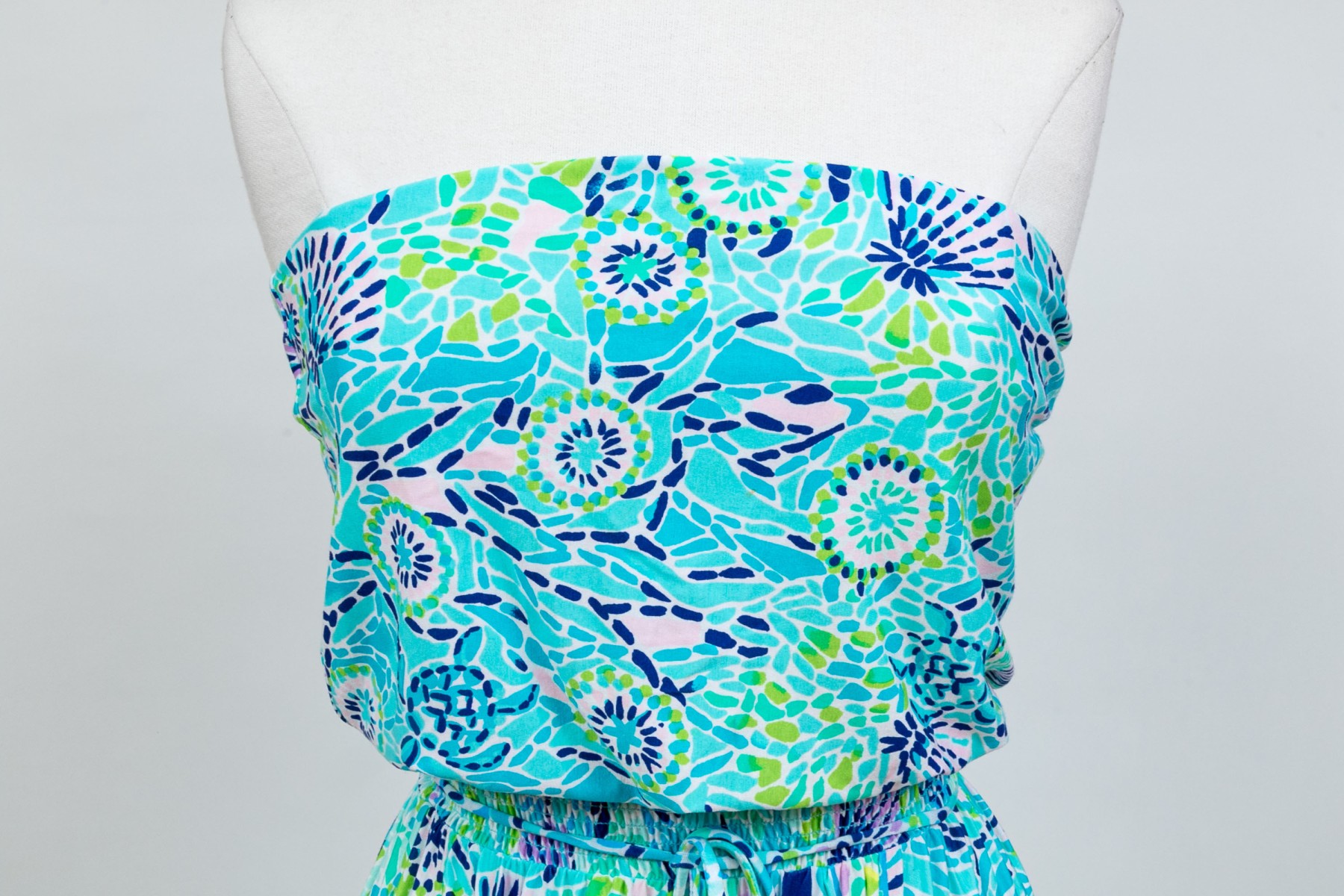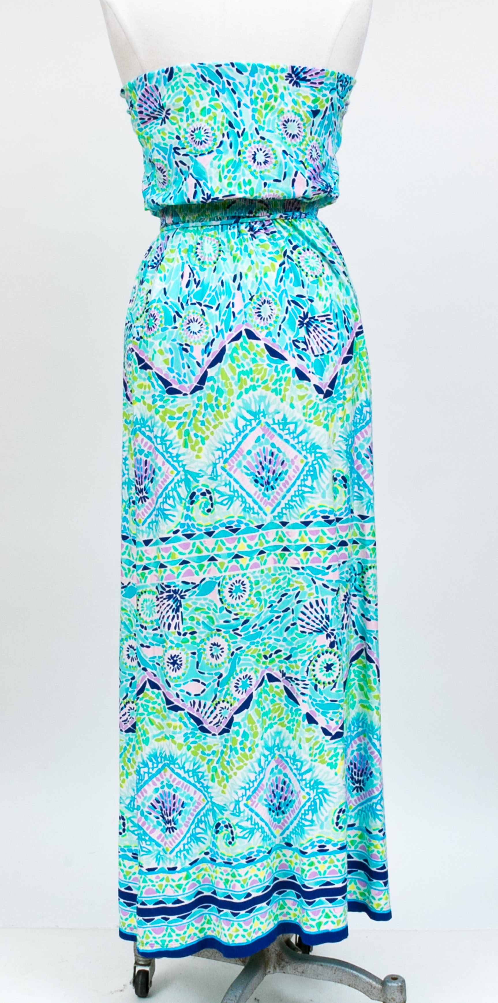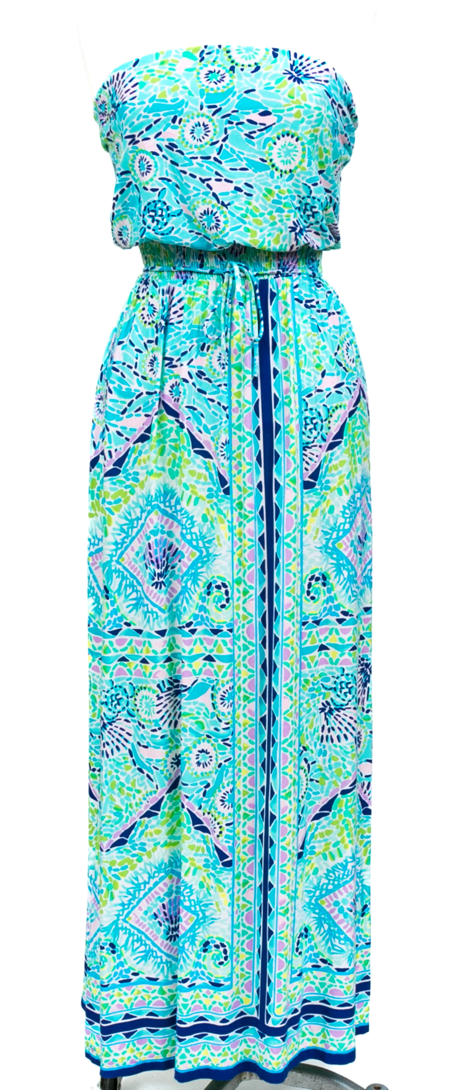 Lilly Pulitzer cheerful turquoise and green strapless maxi dress, size small
