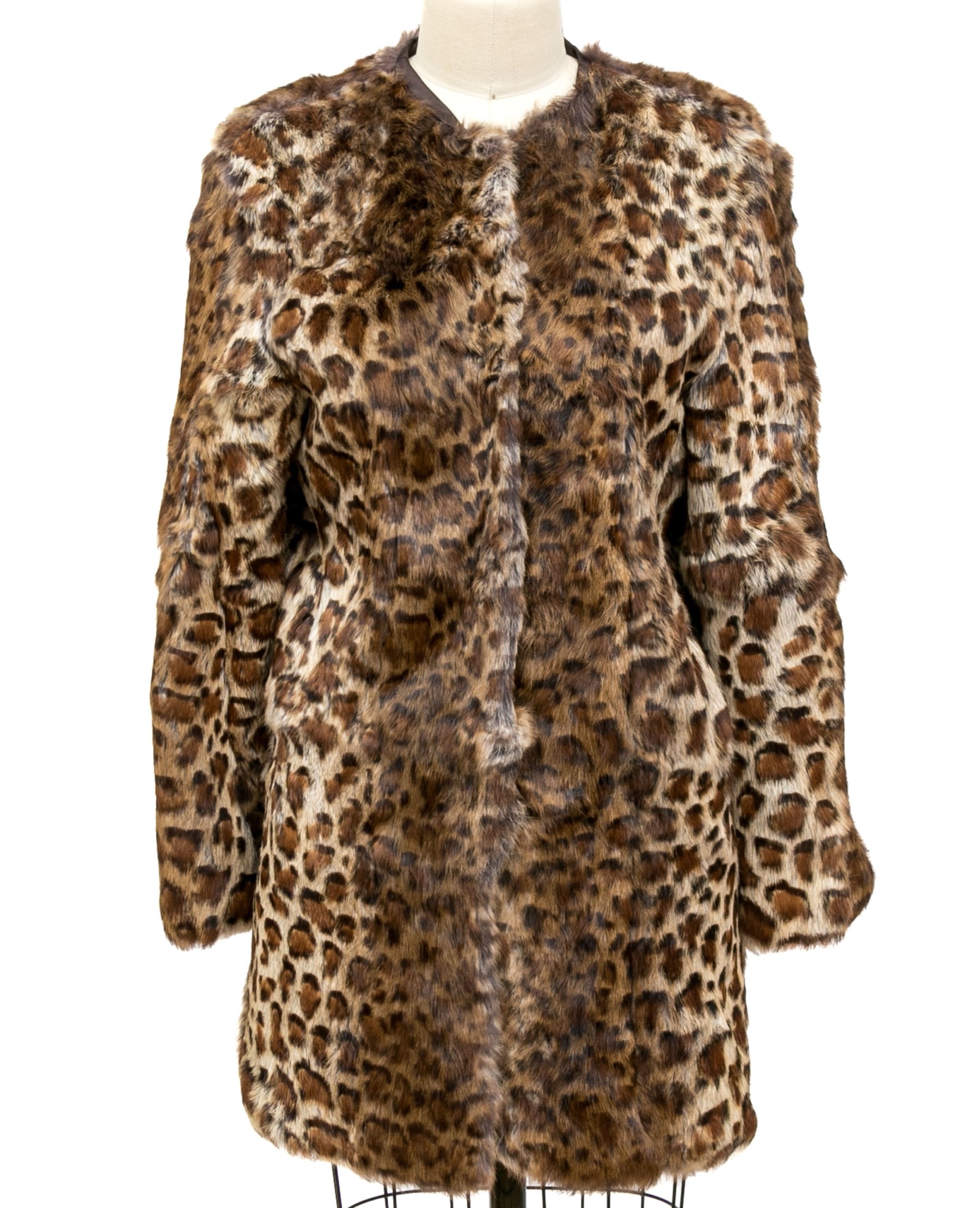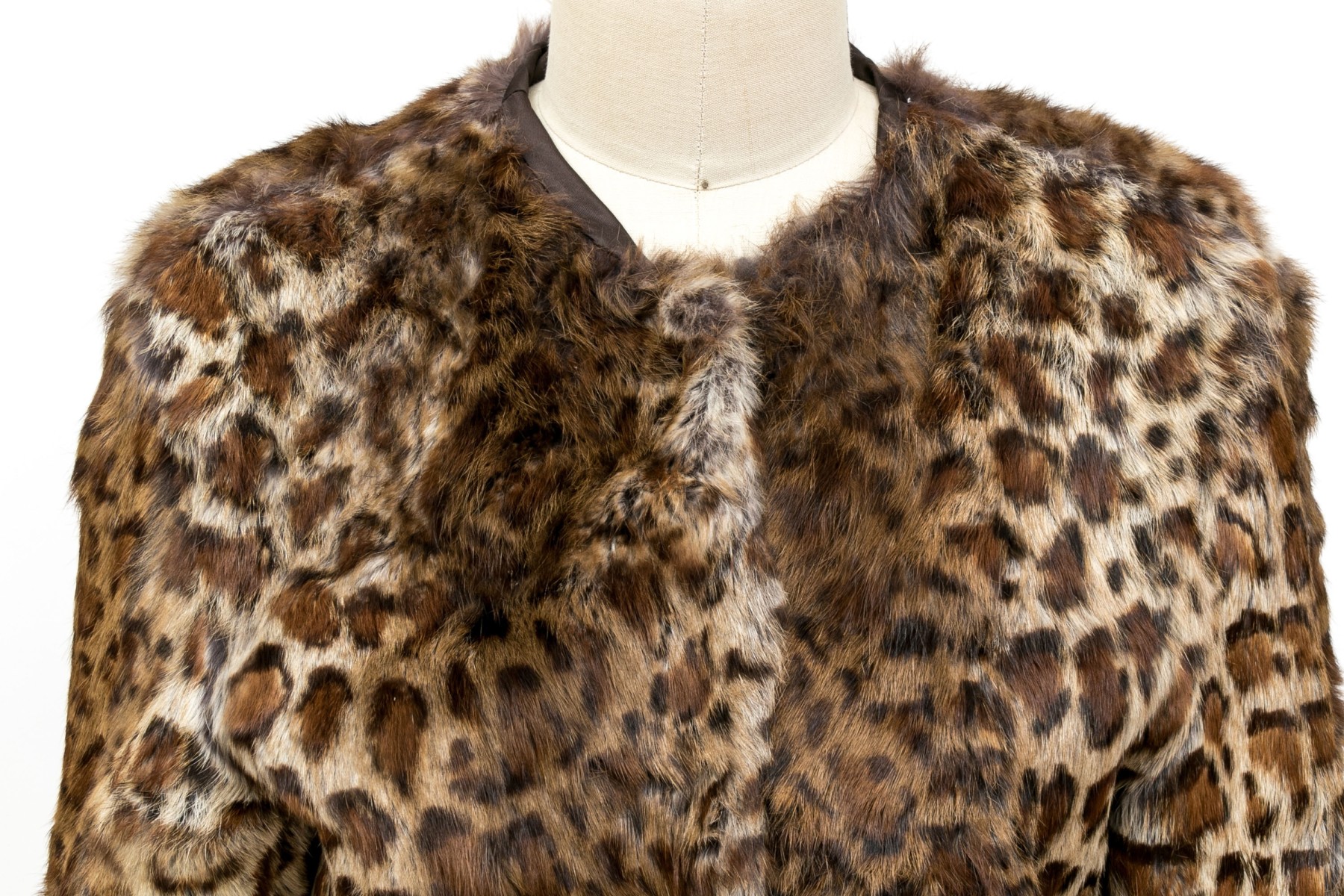 Linda Richards NY beautiful raccoon and rabbit leopard print jacket, size S