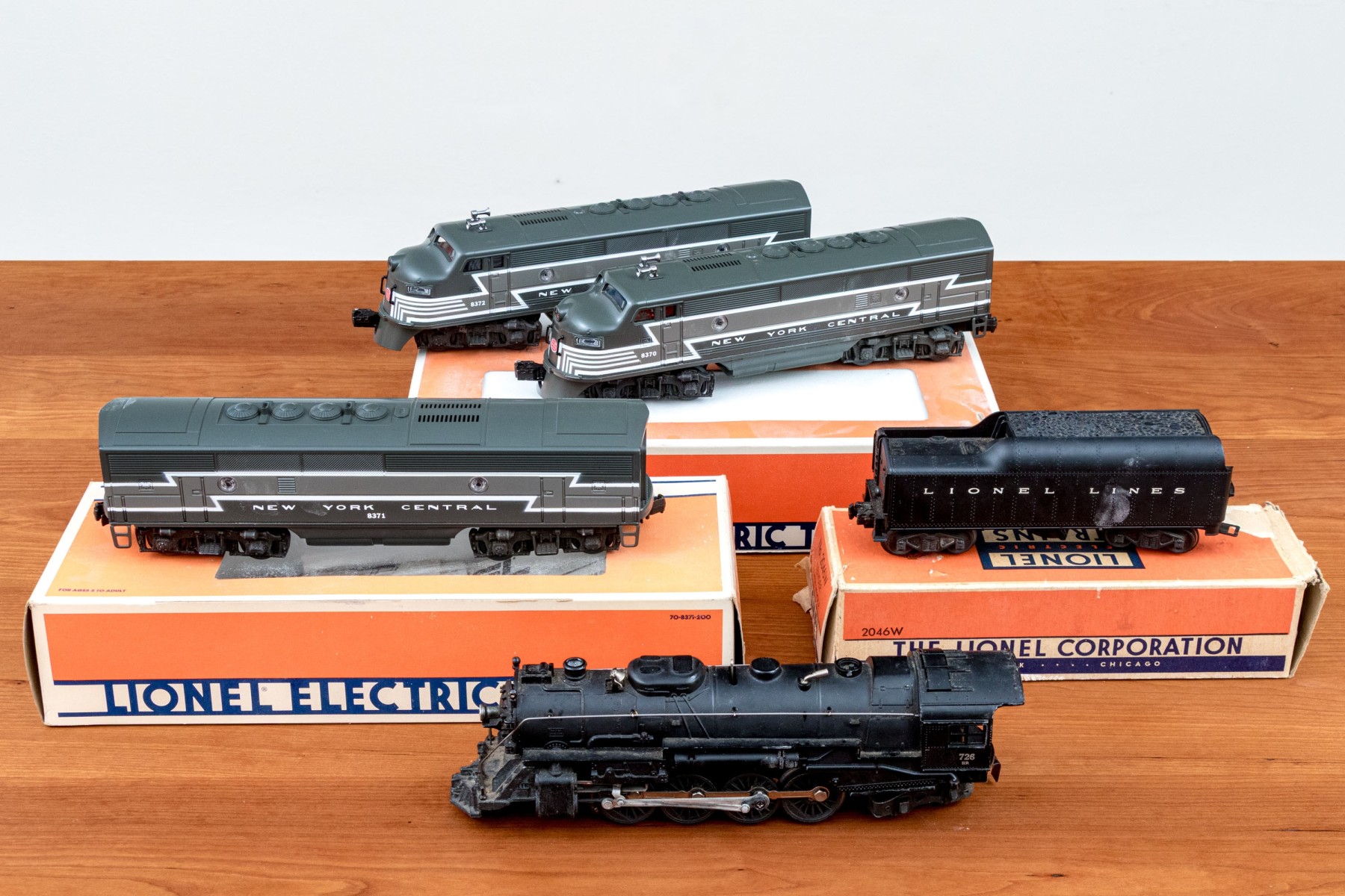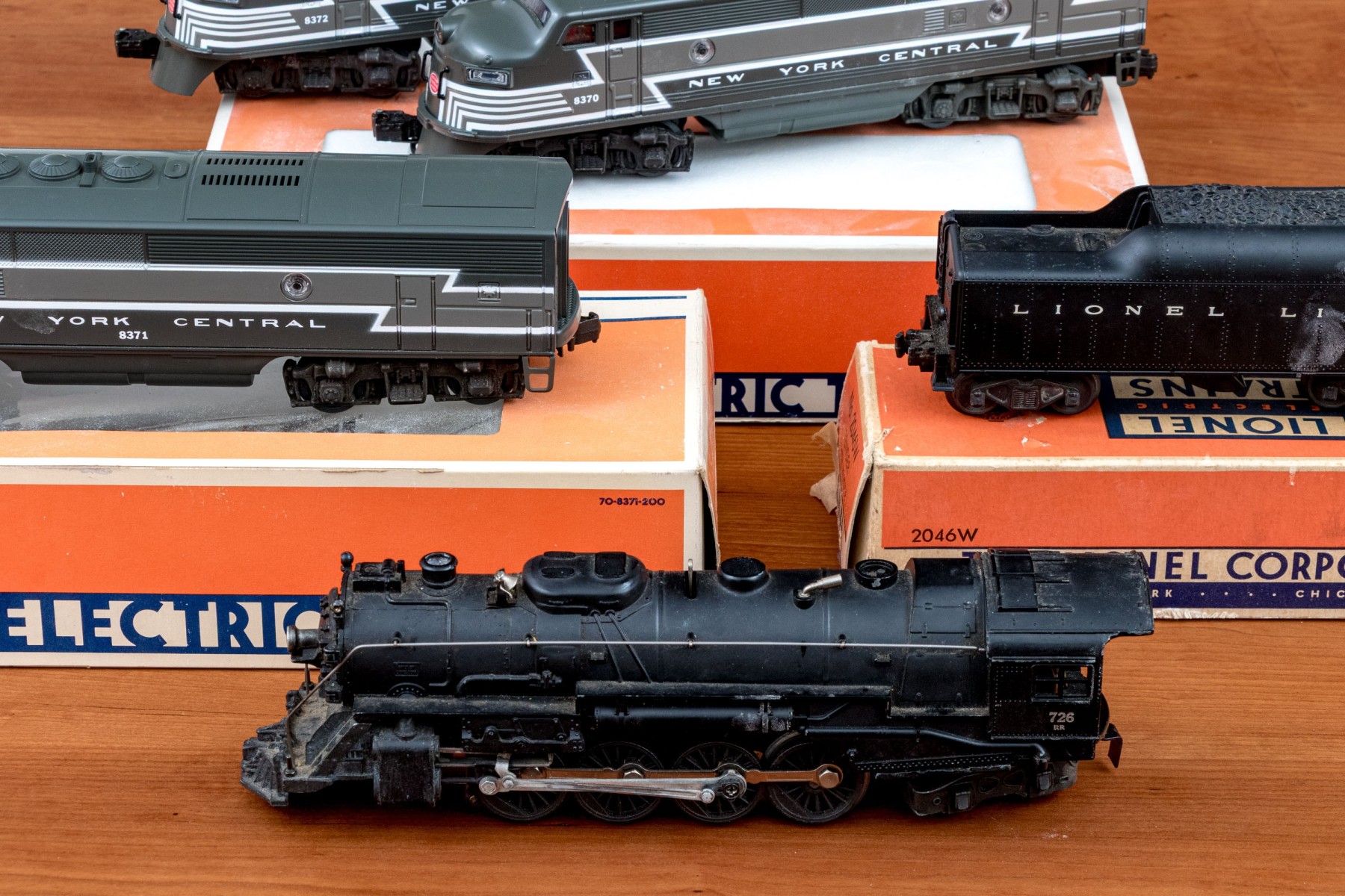 Comprised of Three New York Central Trans and a two piece set with one front car and one coal carrier. With original boxes.