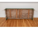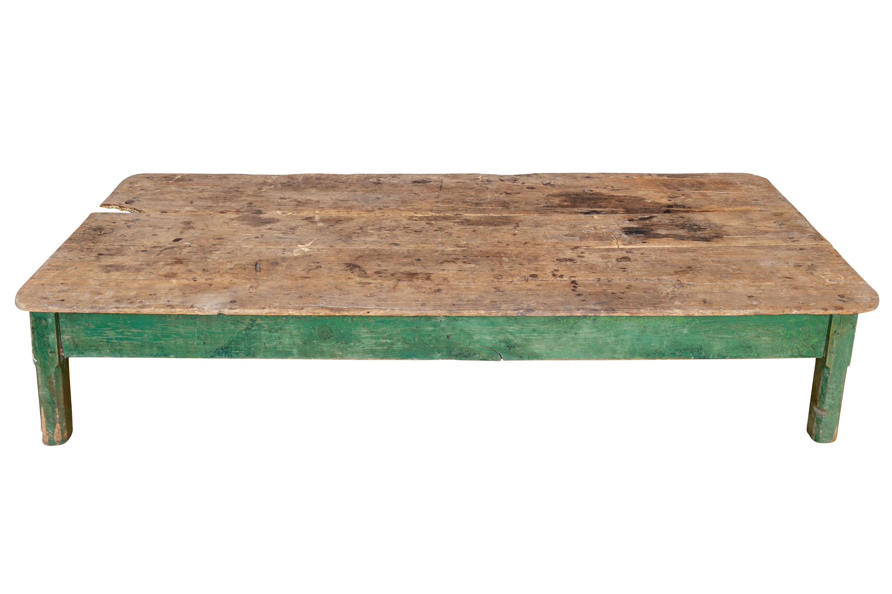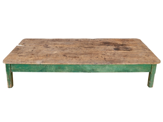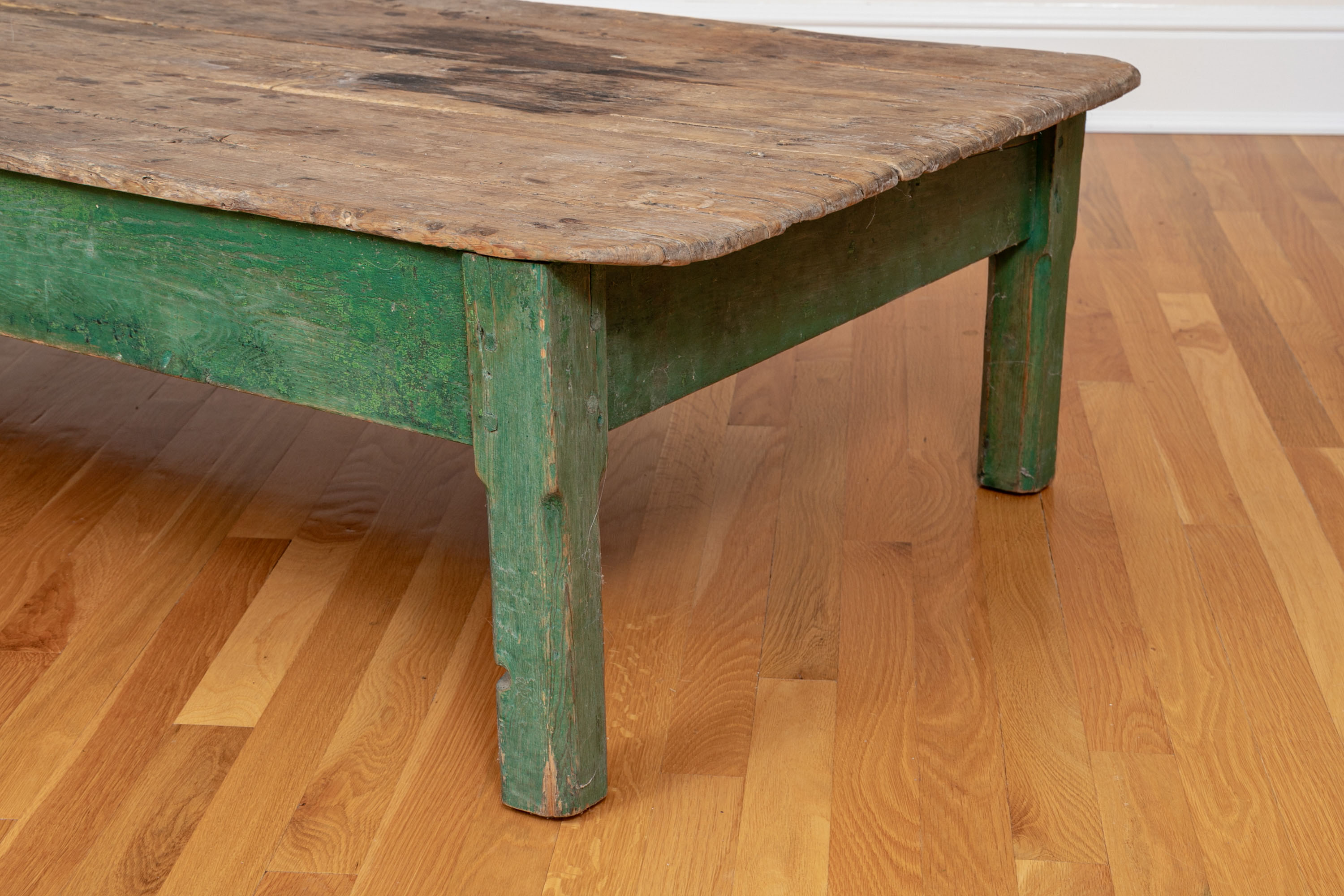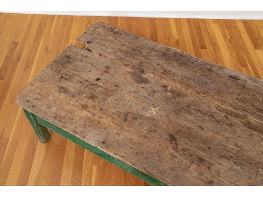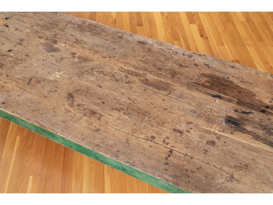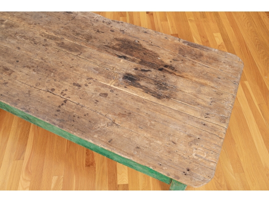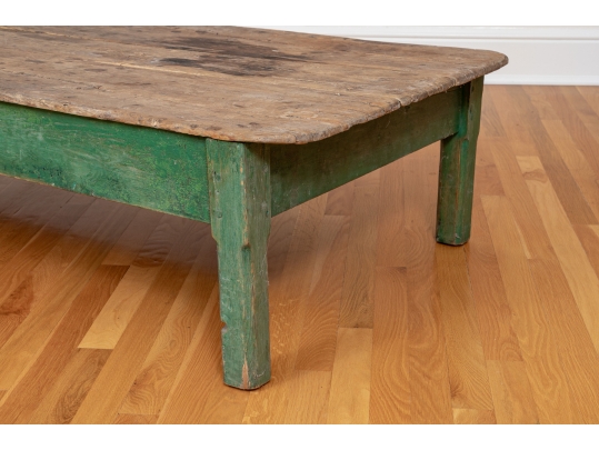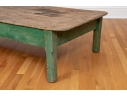 Originally acquired at the iconic New Preston, Connecticut design shop J. Seitz. A Fantastic and very solid feeling 19th Century Table from New Mexico with its original Deep Green painted Legs and Apron. Once used as a Dining Table and now re-purposed as a vey long Low Cocktail Table.