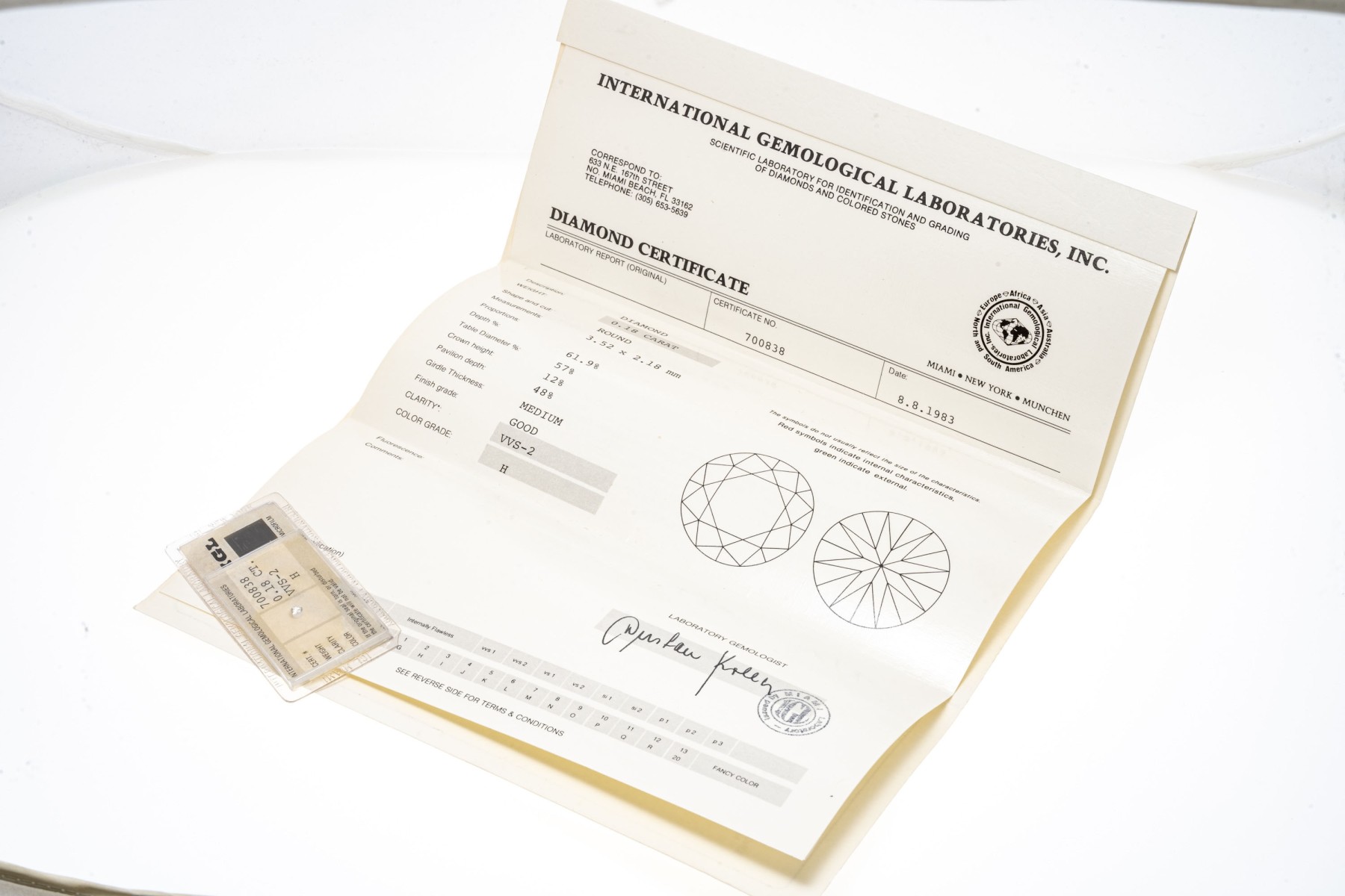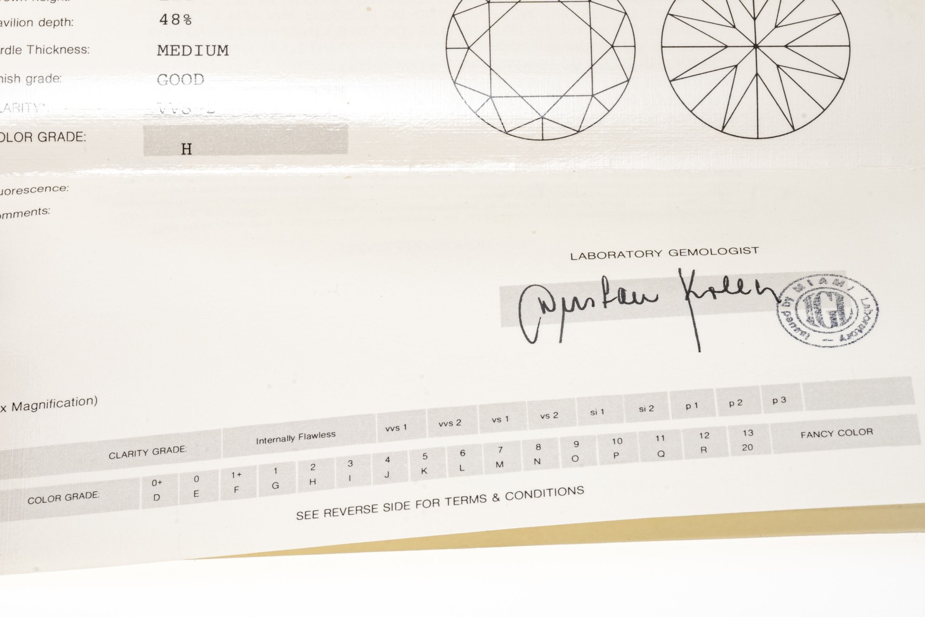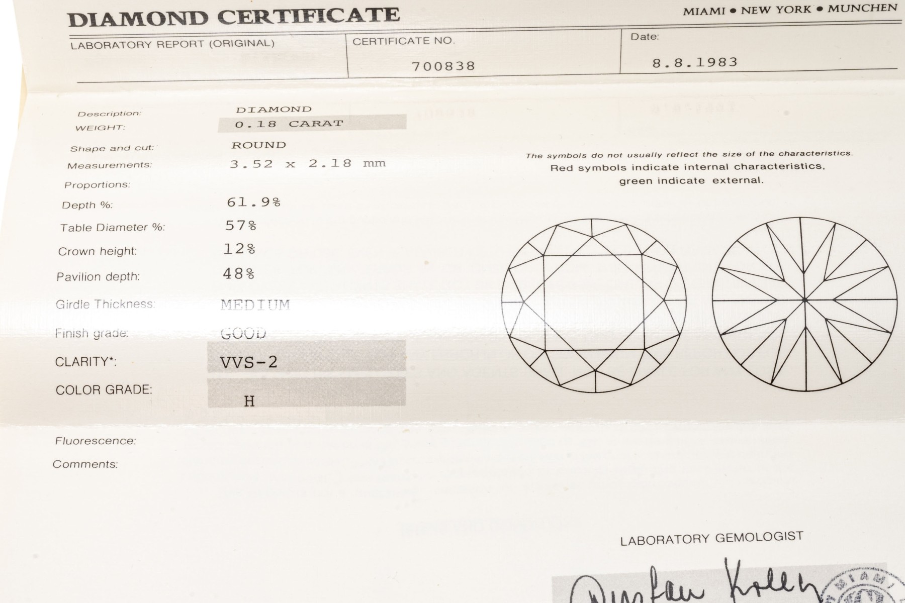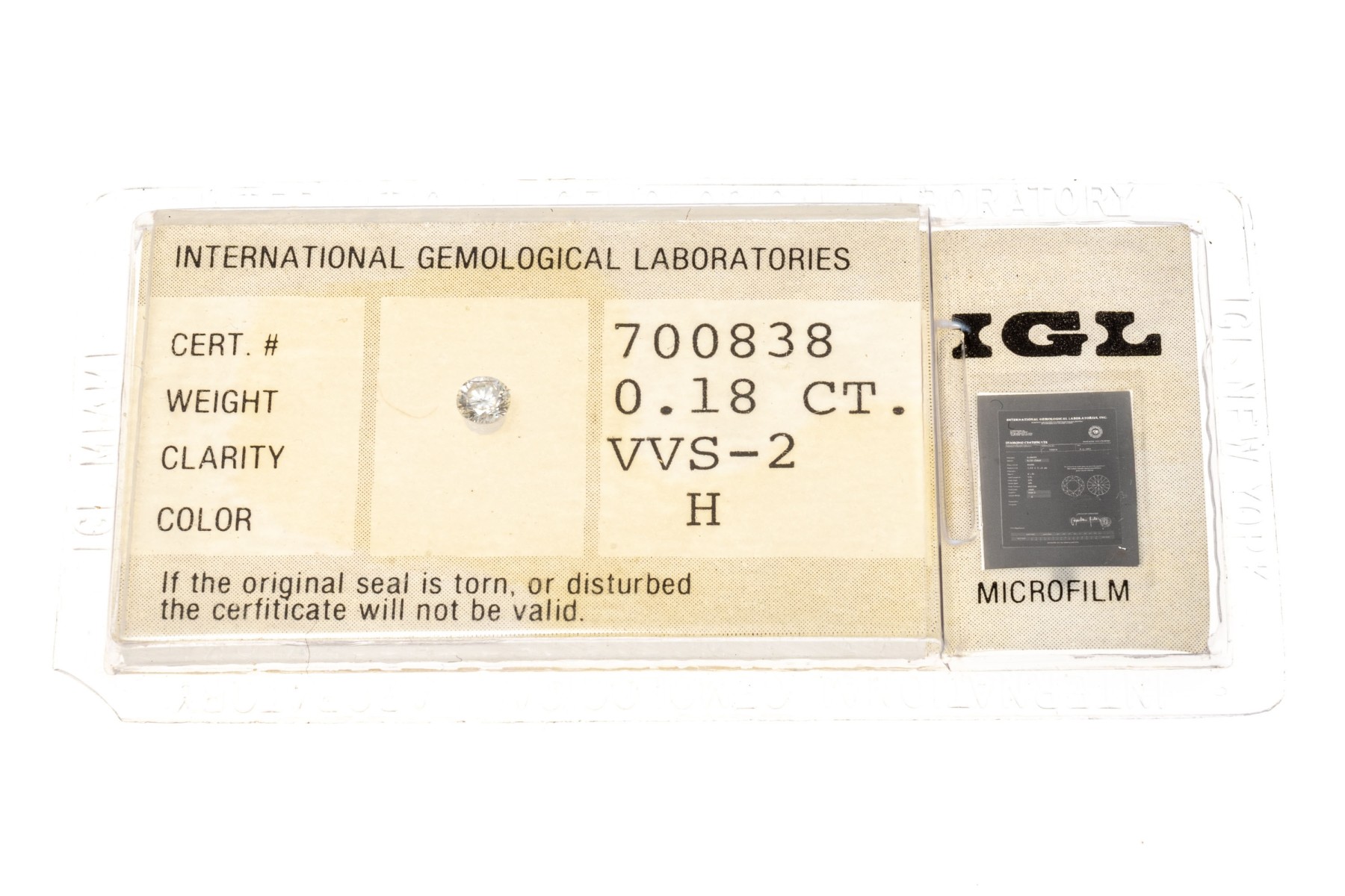 Loose stone: diamond, VVS2 H, CTS: 0.18, sealed with old cert