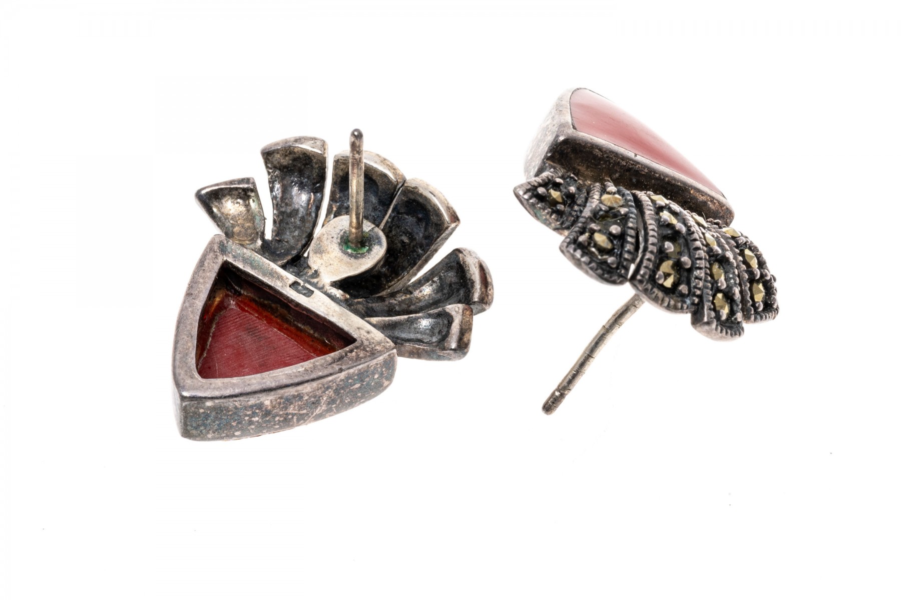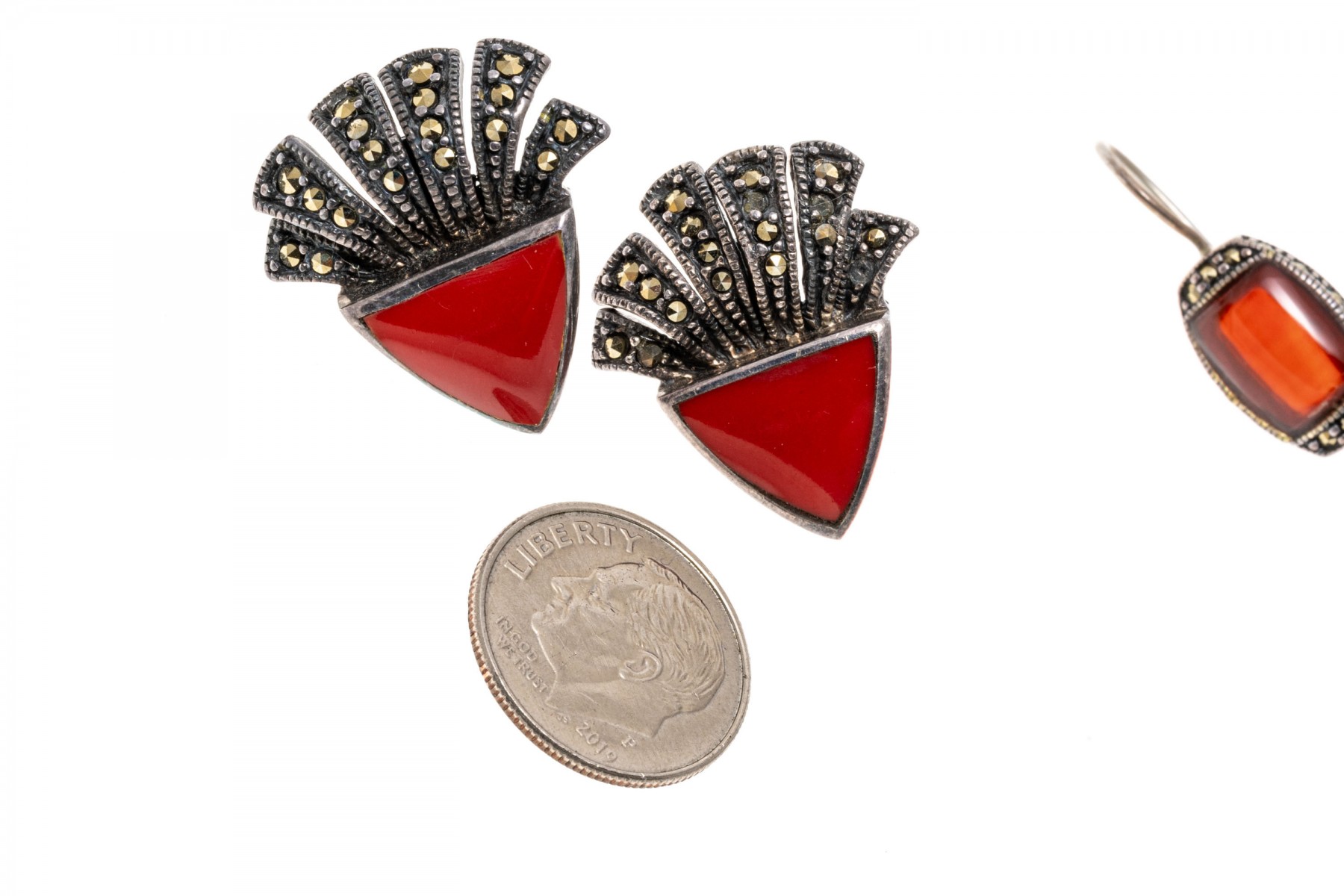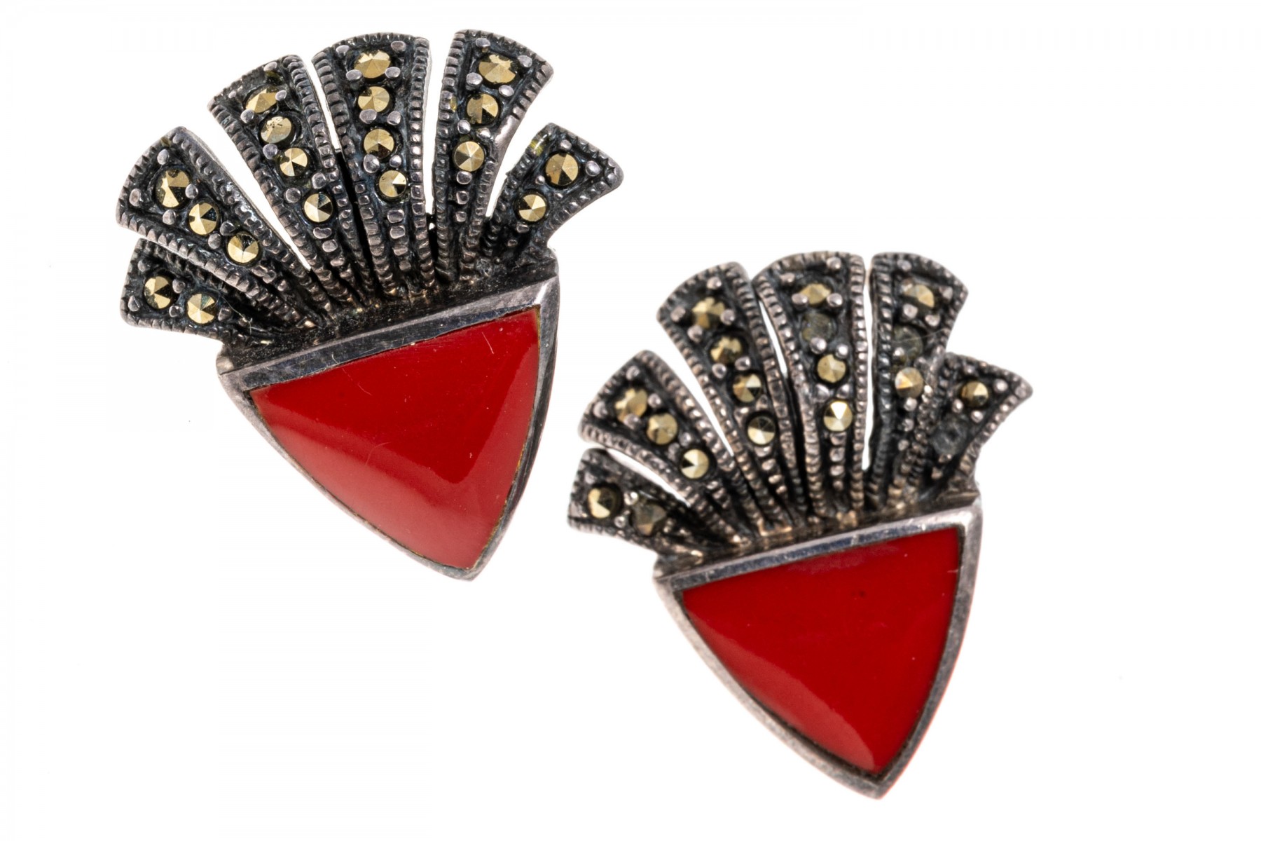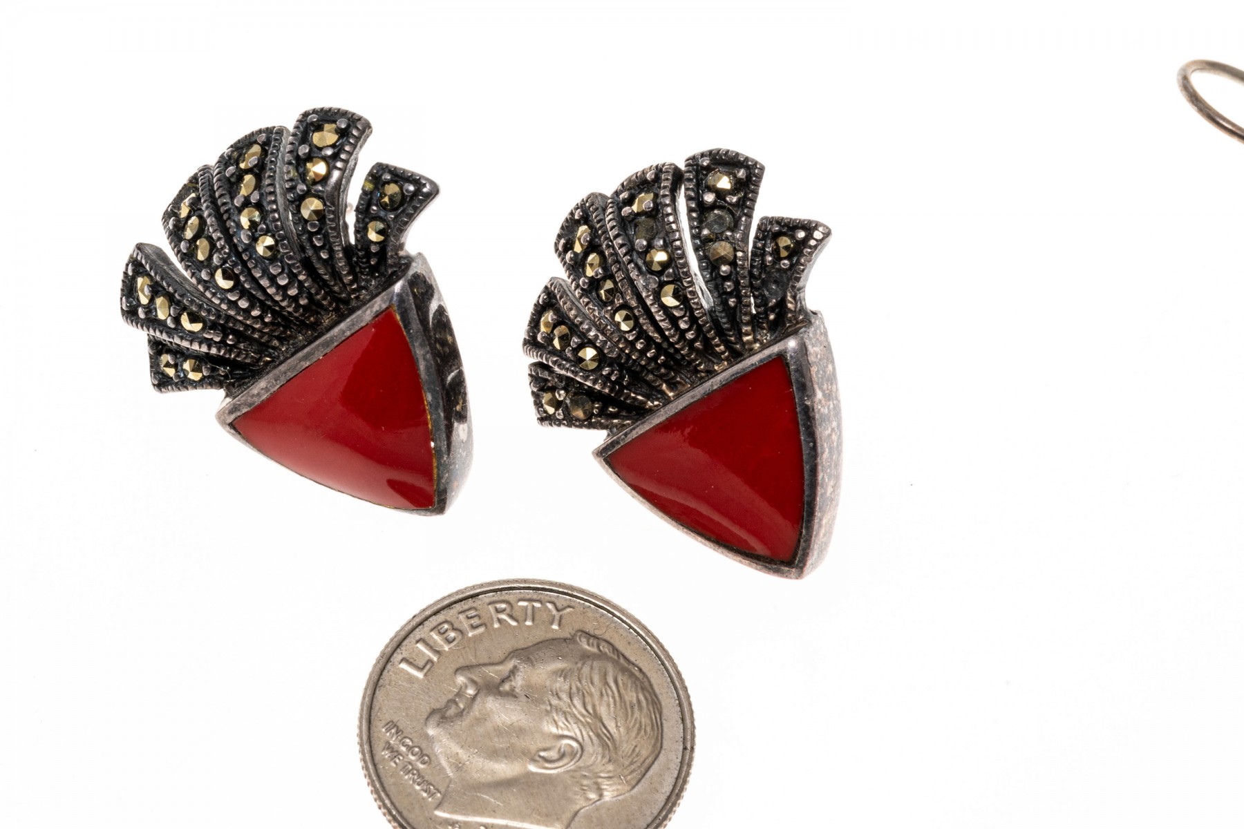 Lot of assorted marcasite motif jewelry pieces, mostly sterling silver, one silver plated pendant