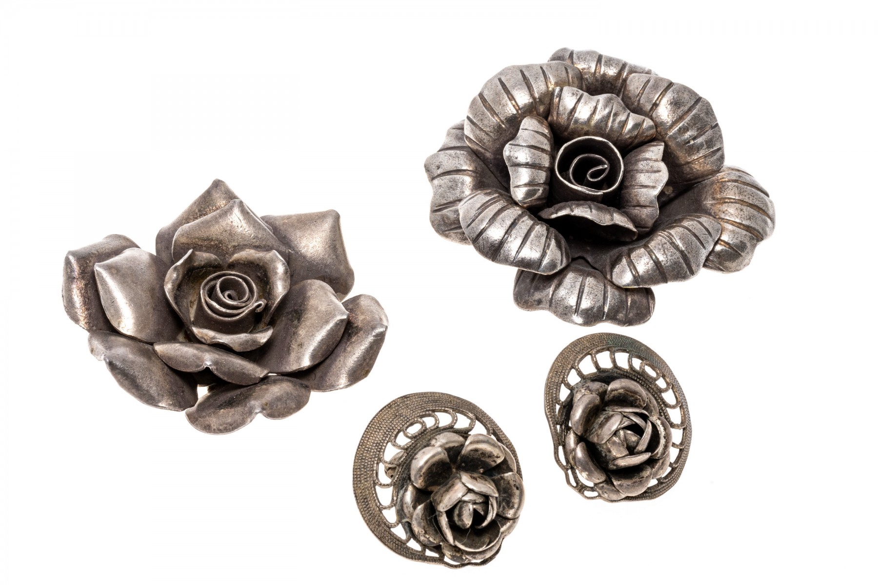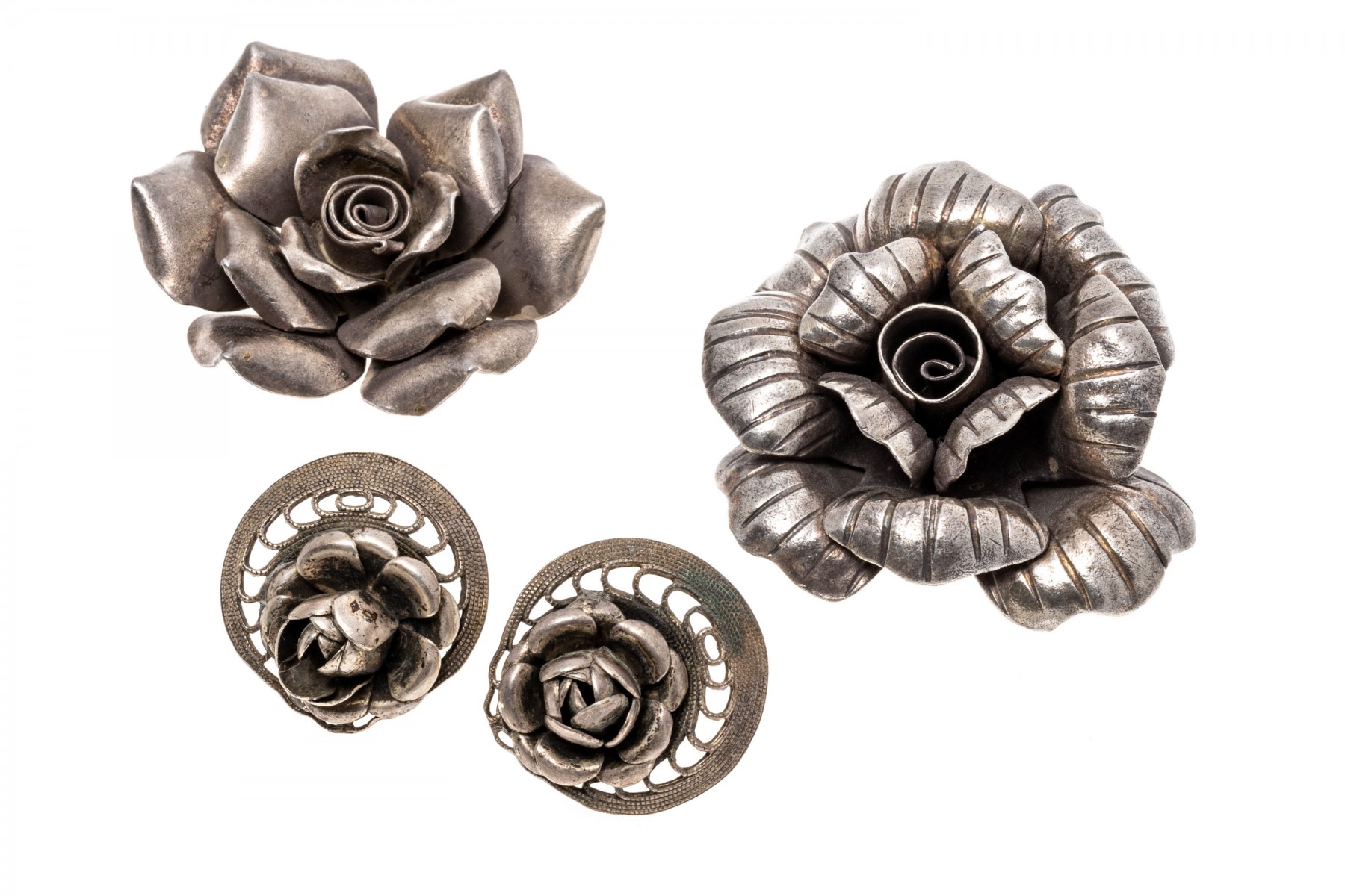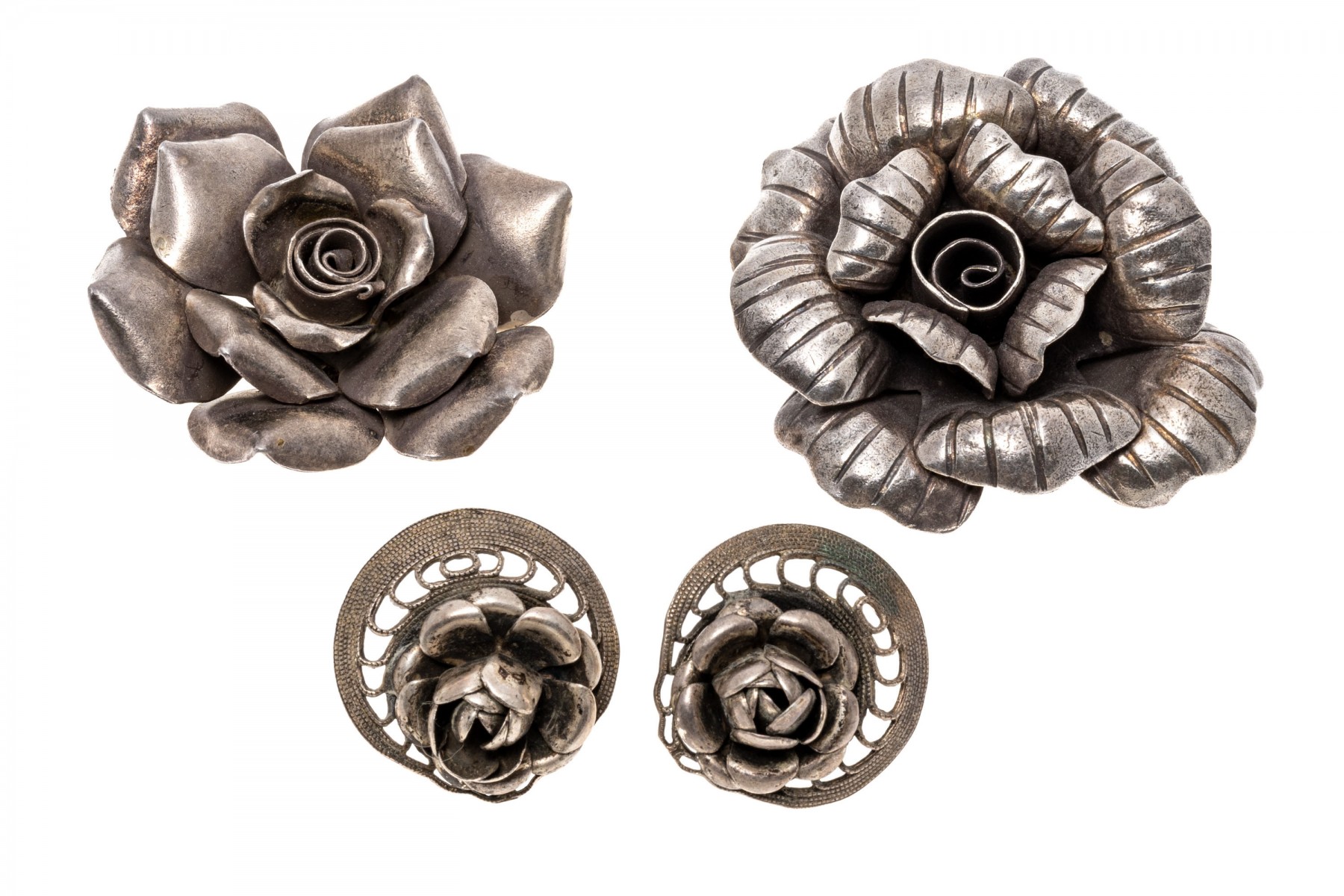Lot of assorted sterling silver and silver plated rose motif jewelry pieces