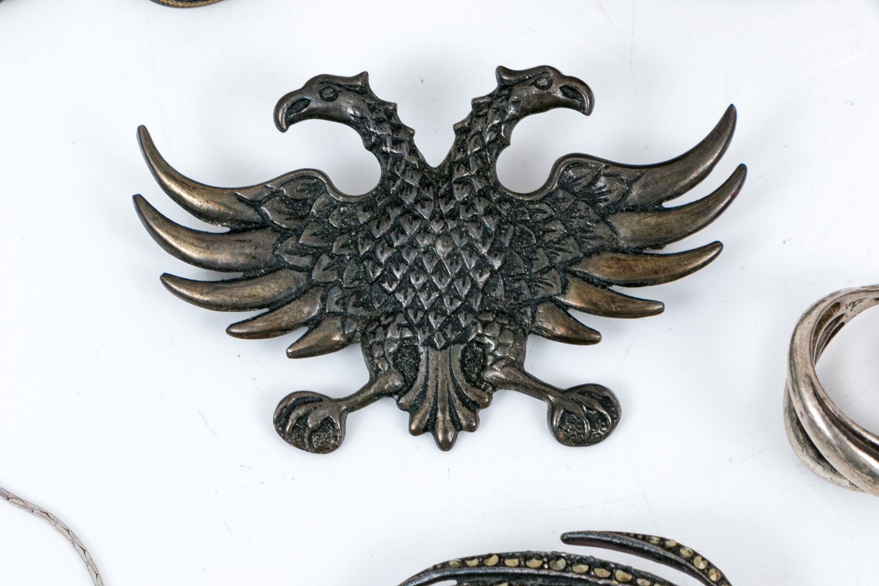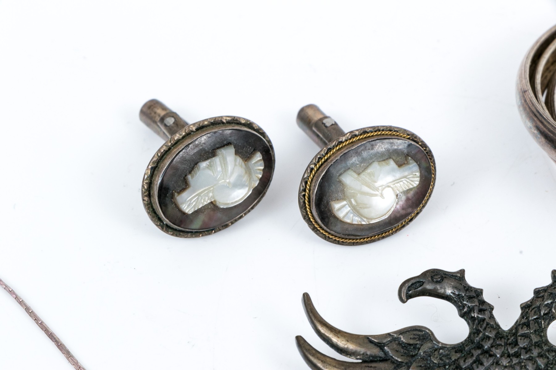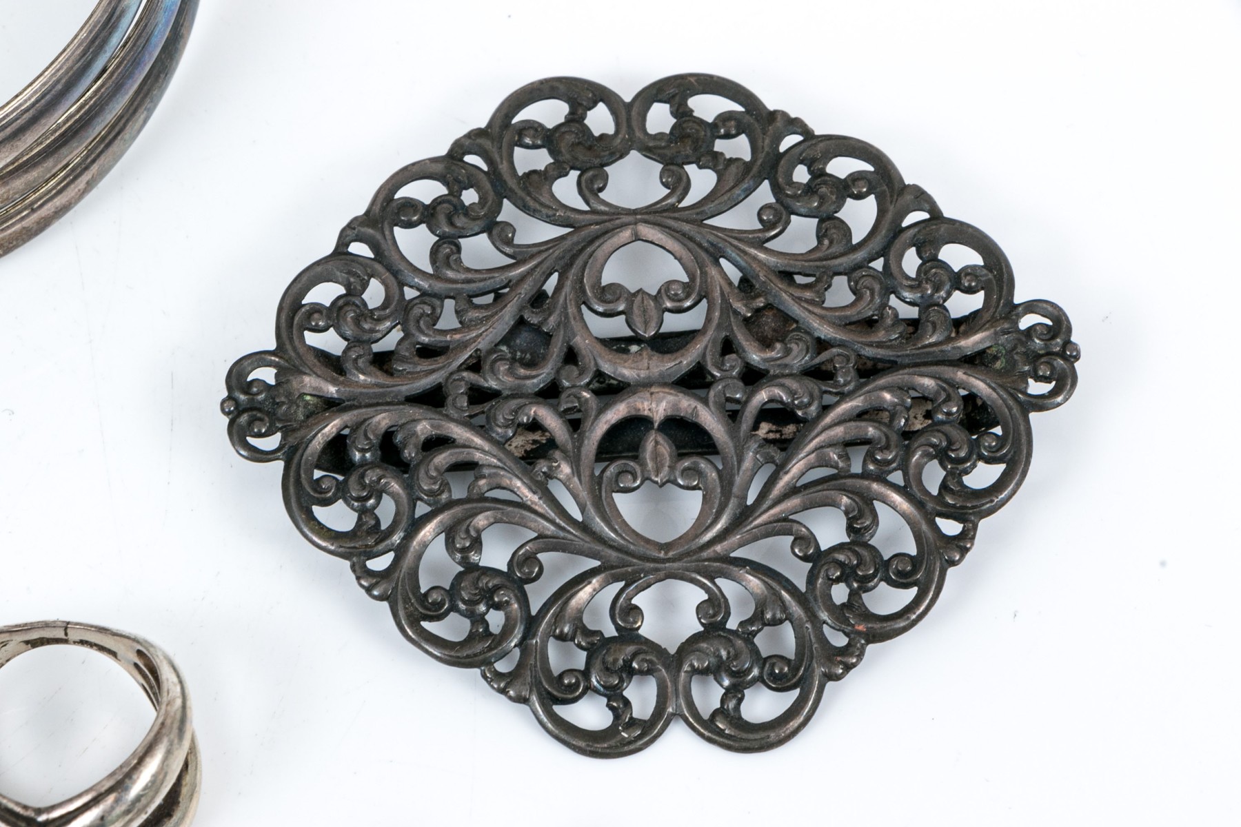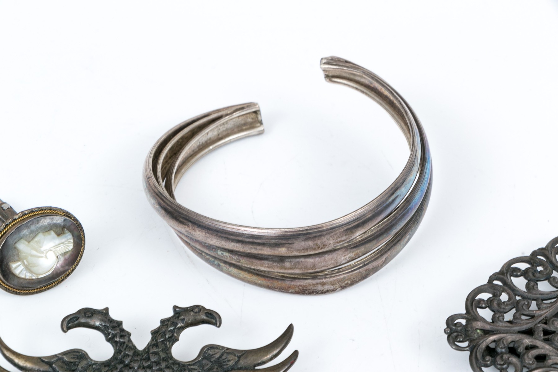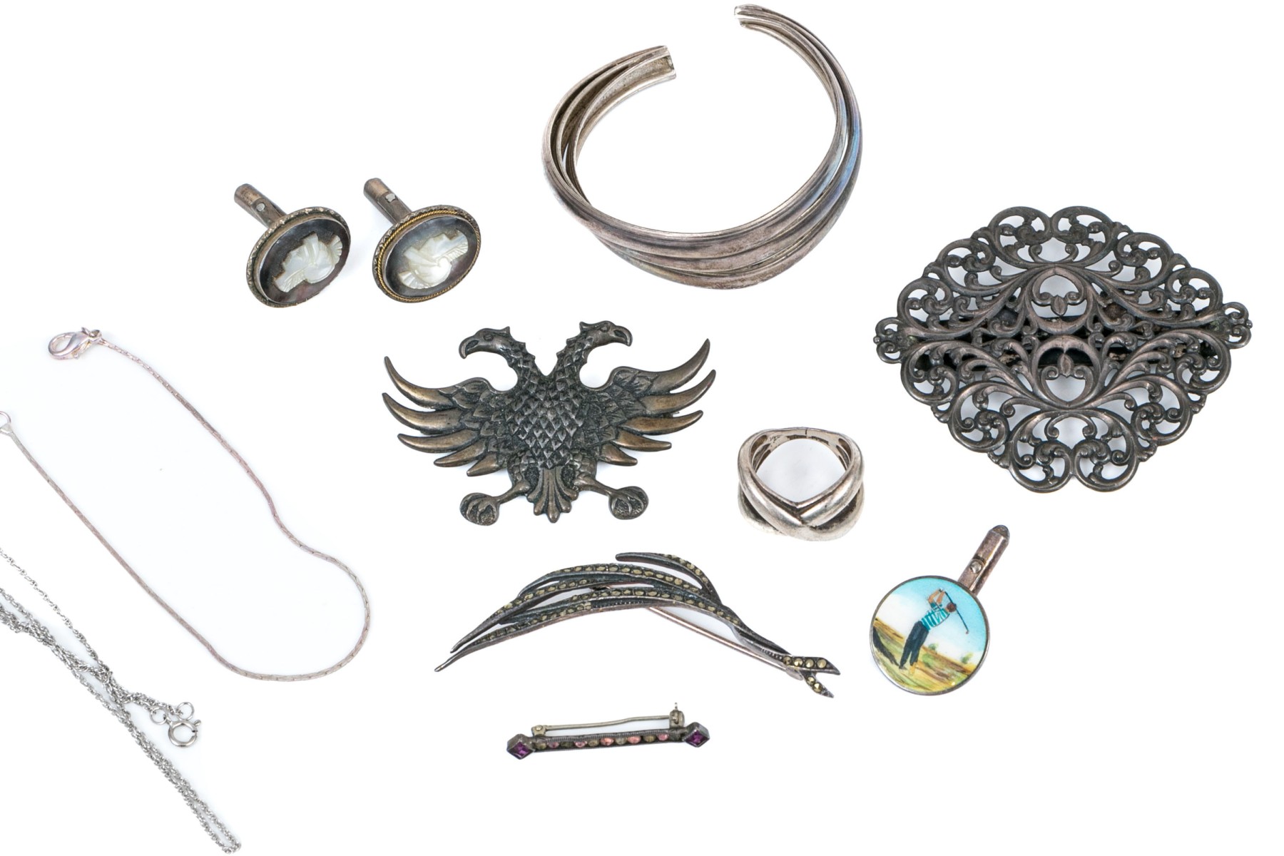 Lot of assorted sterling silver jewelry pieces, including a cuff bracelet