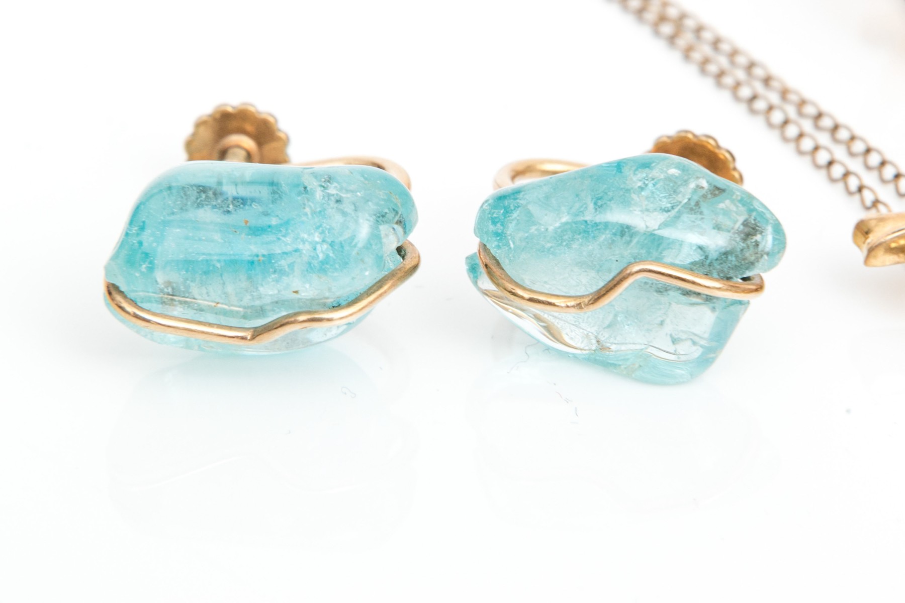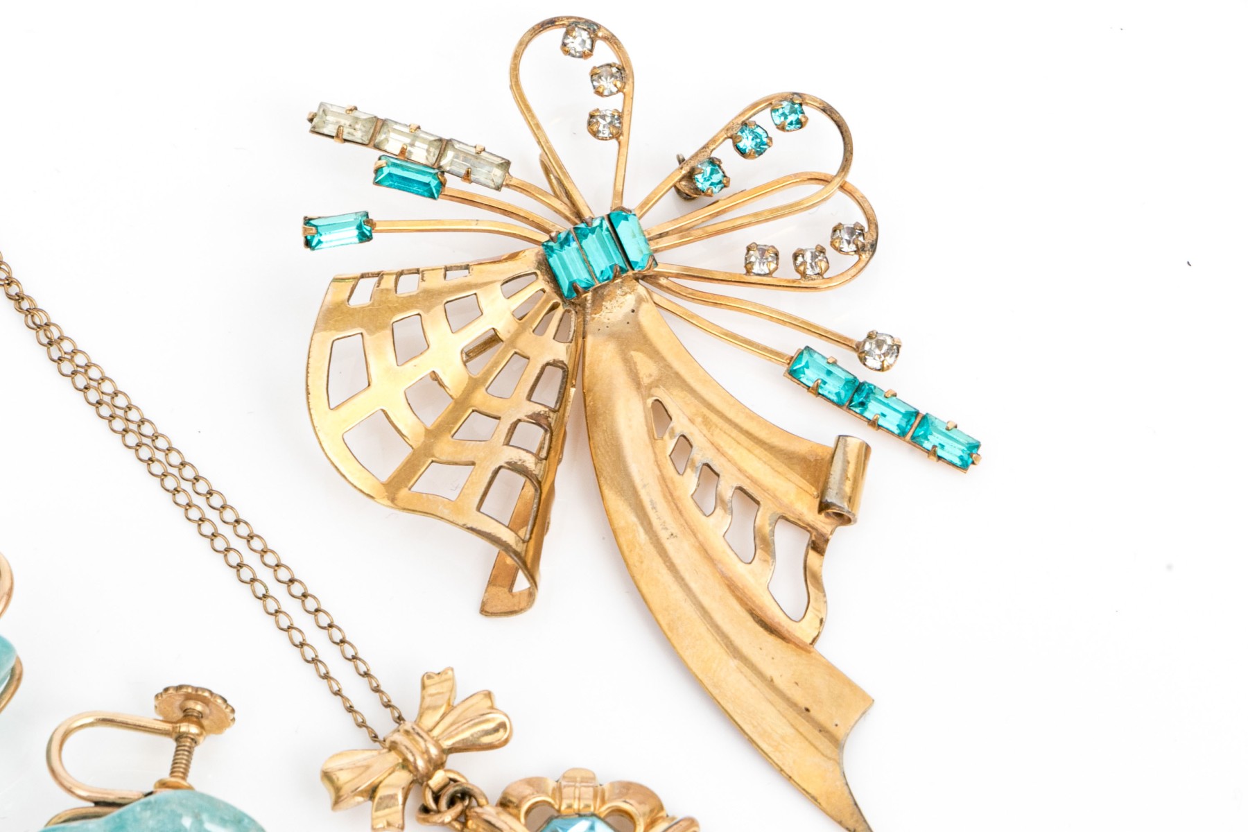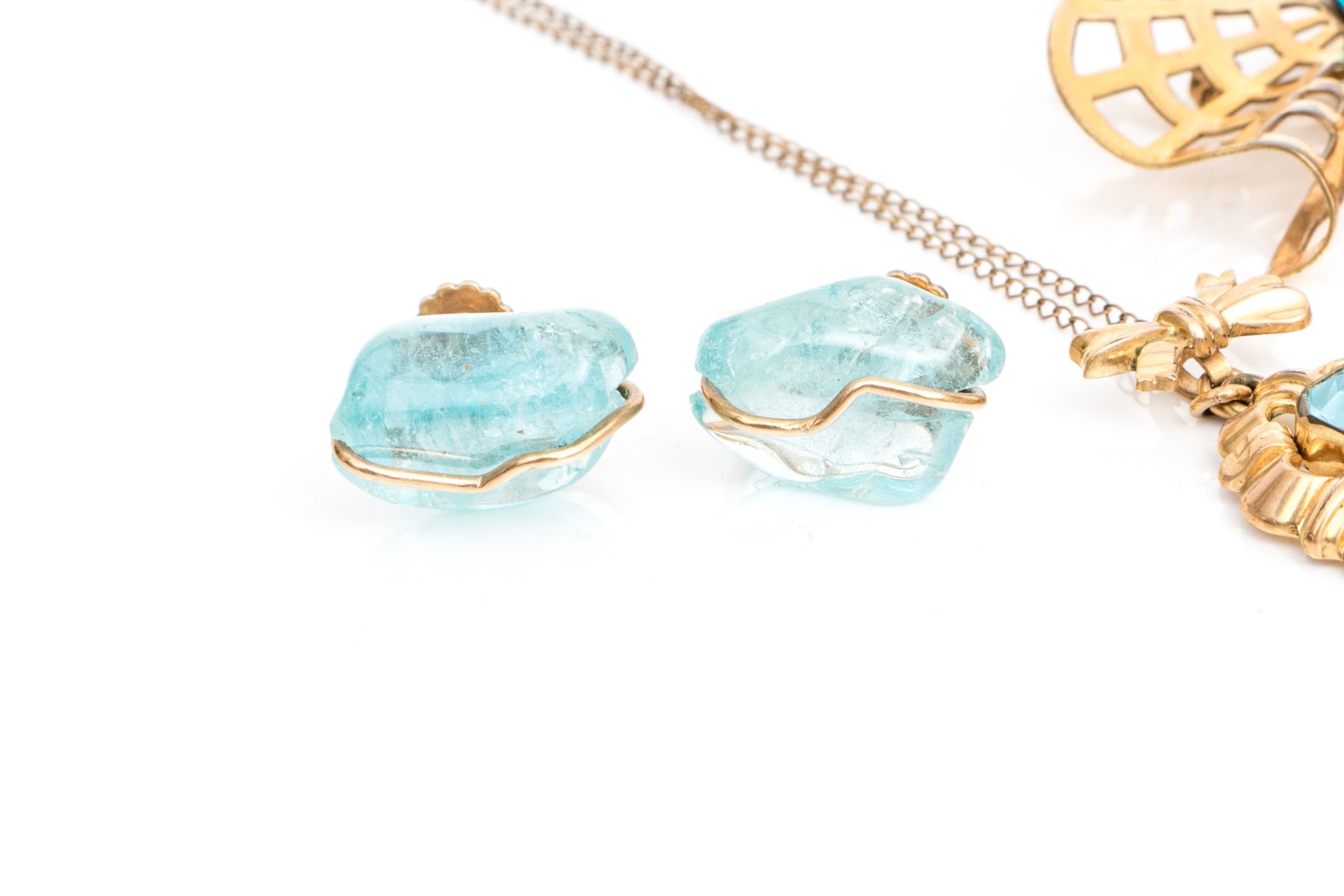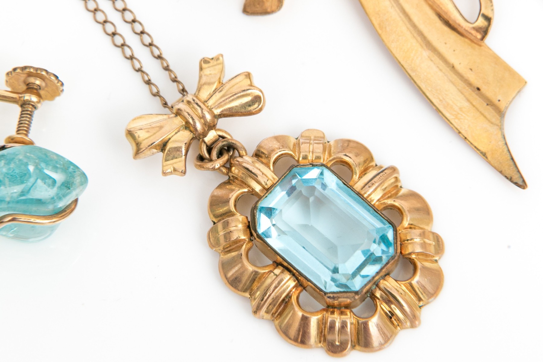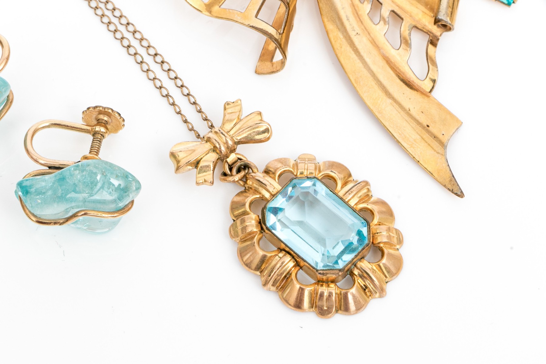 Lot of assorted vintage gold filled jewelry pieces, including blue fluorite earrings