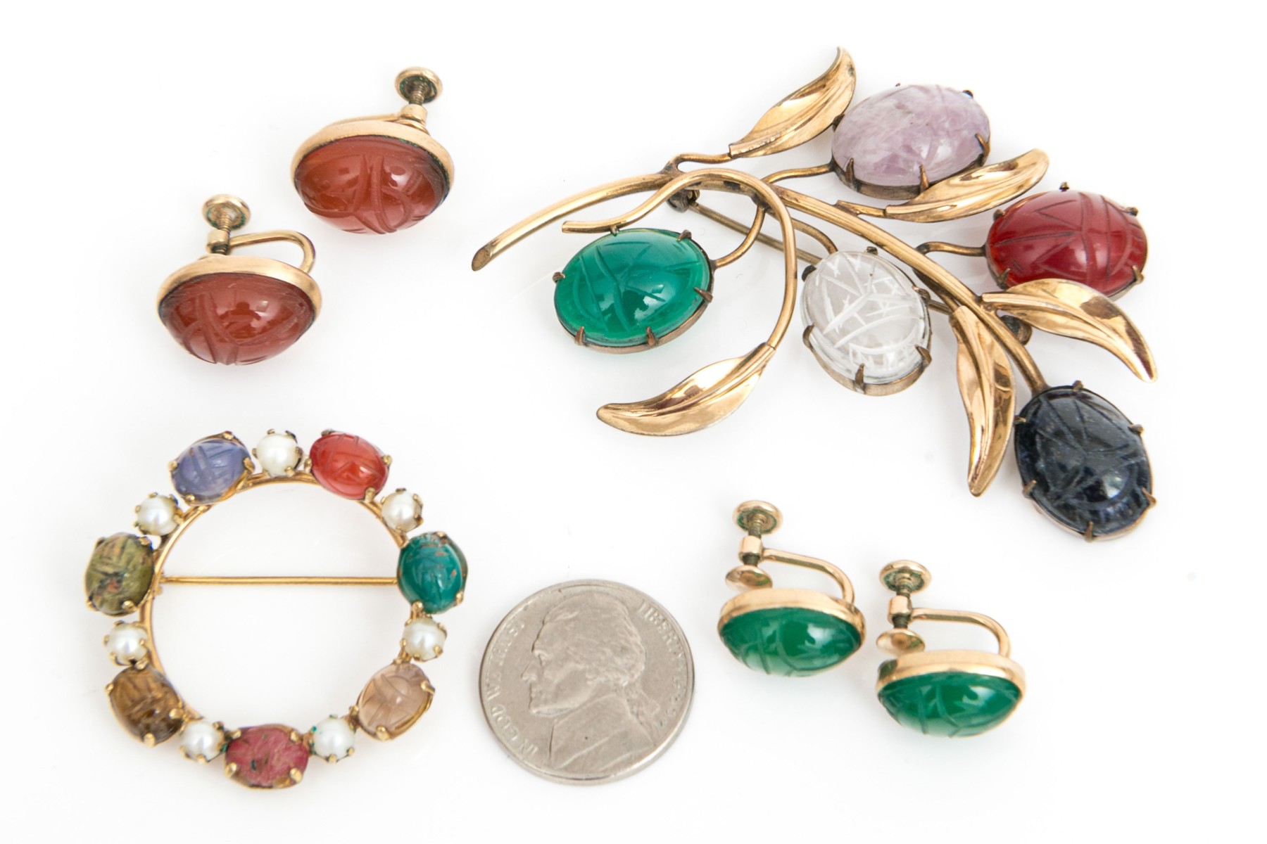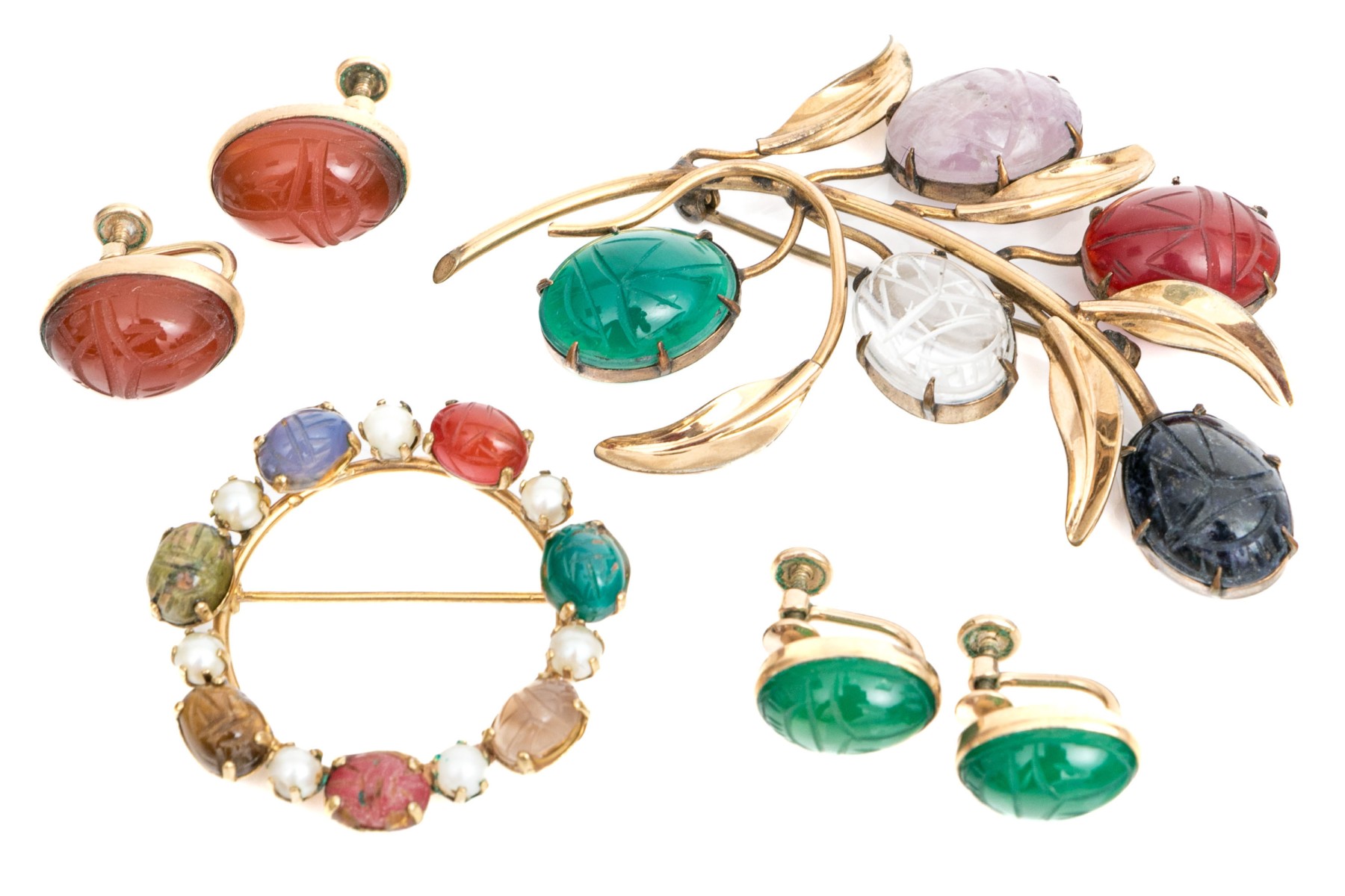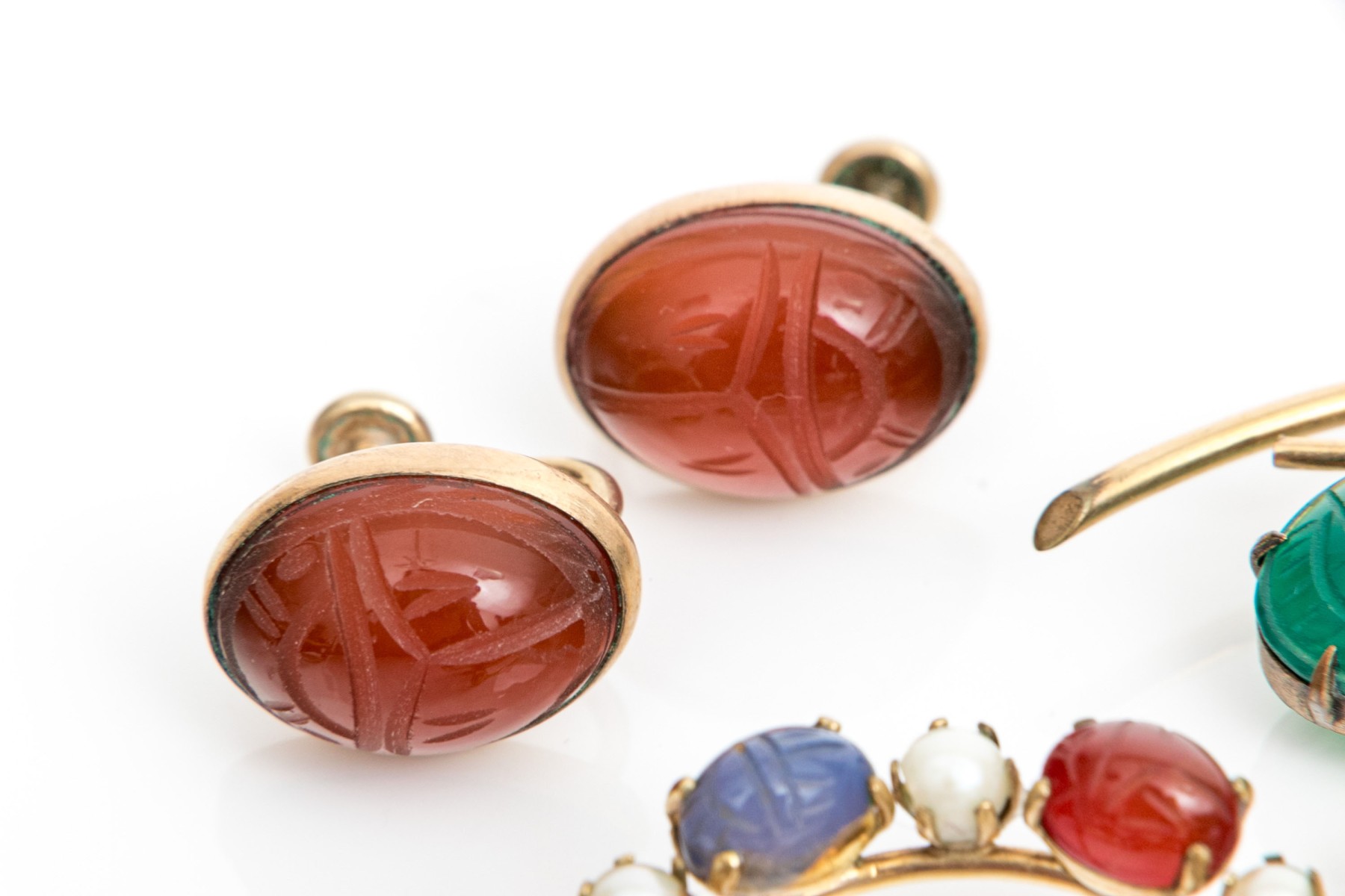 Lot of assorted vintage gold filled scarab motif jewelry pieces