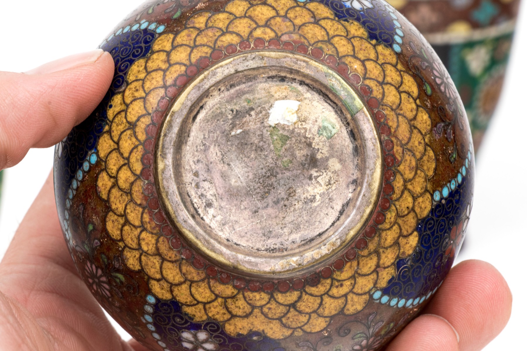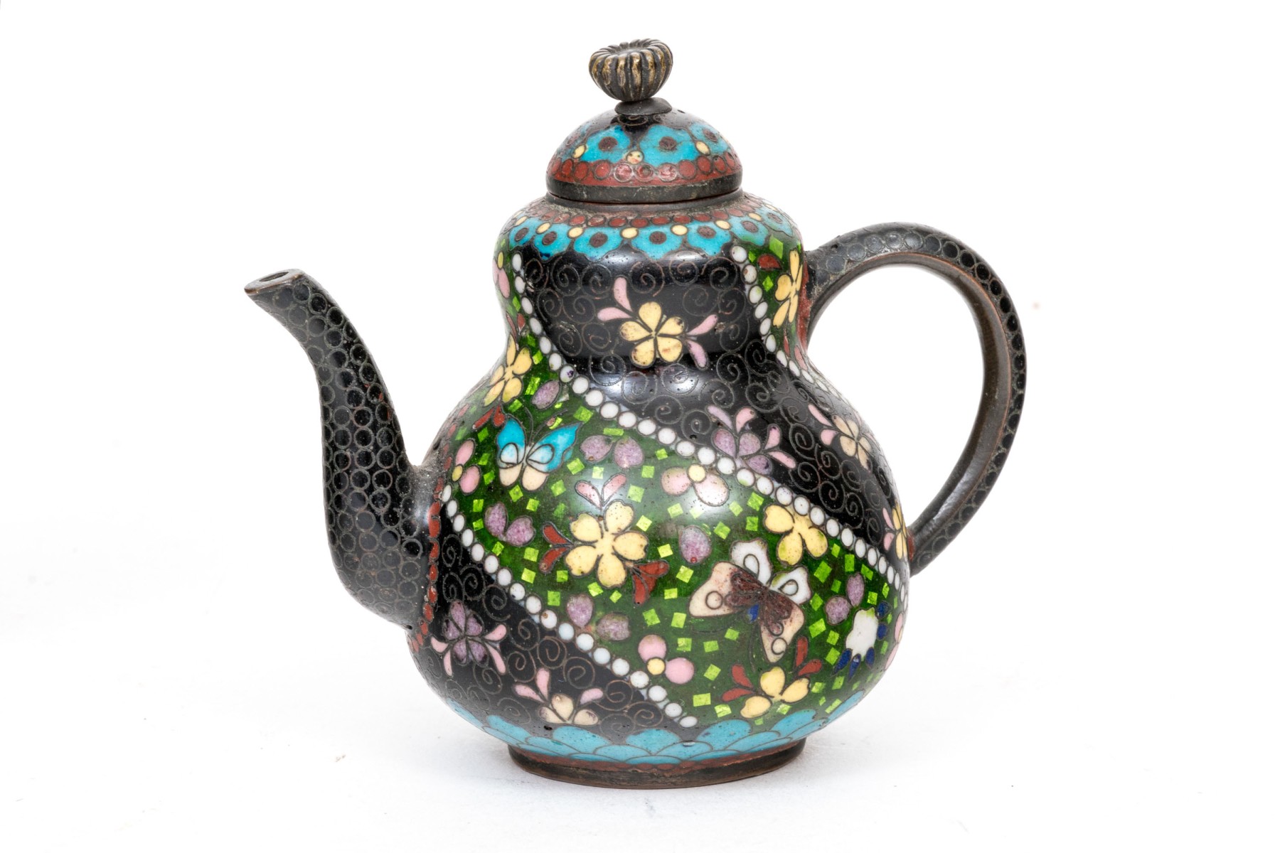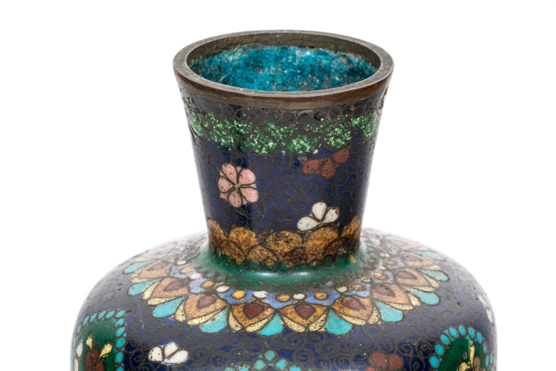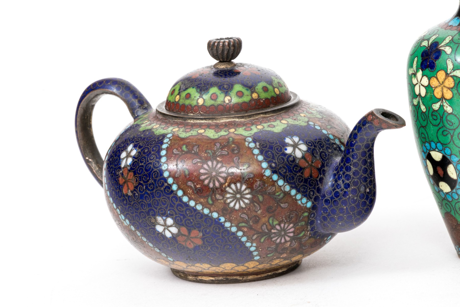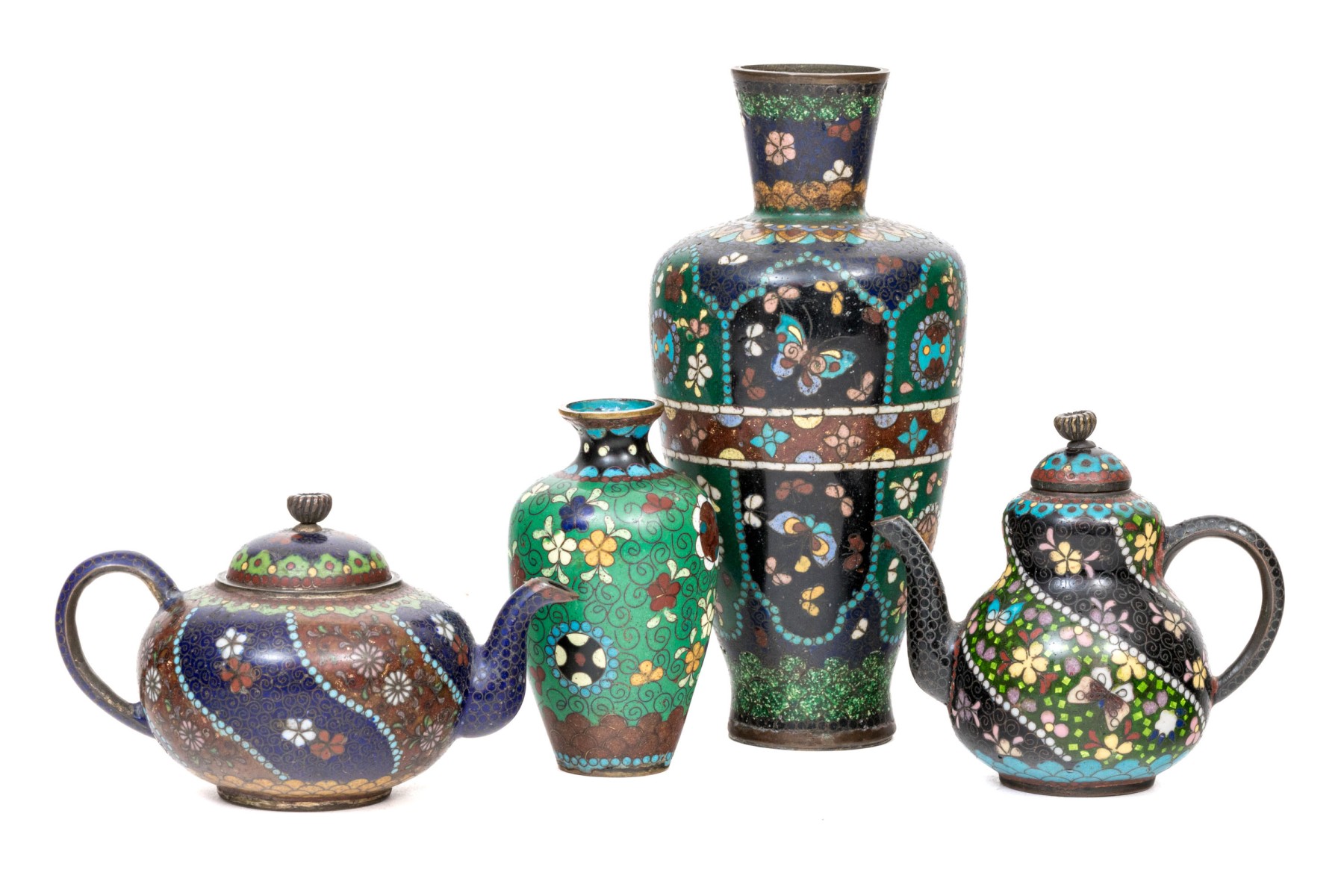 Lot of four beautiful diminutive vintage Japanese and Chinese cloisonne pieces, in multi colored tones